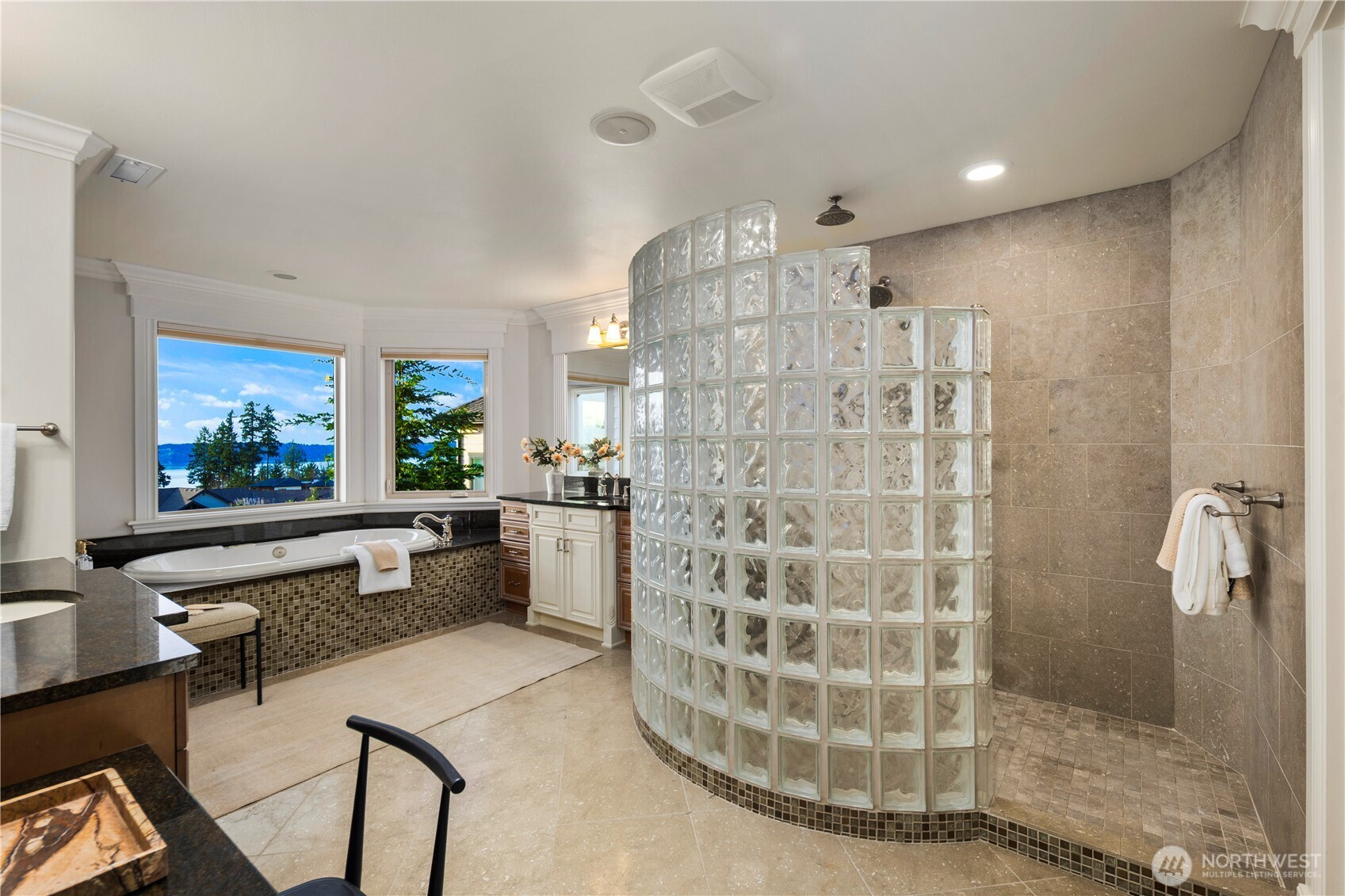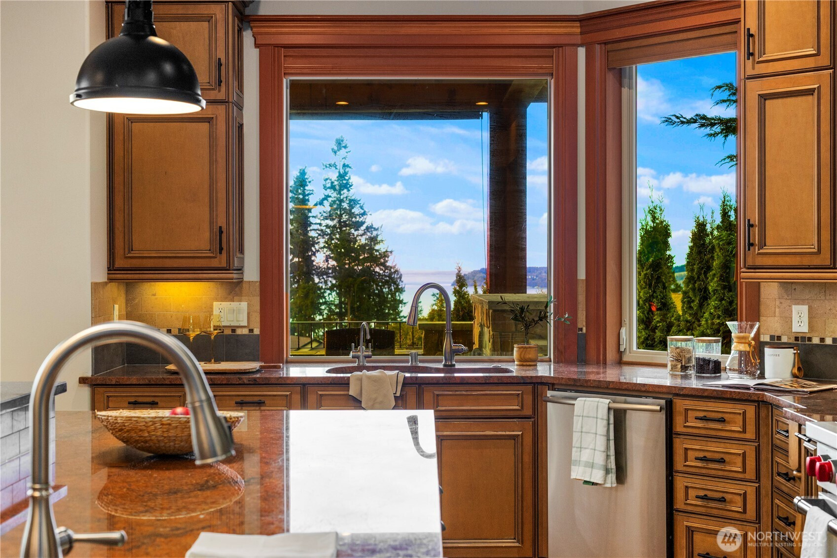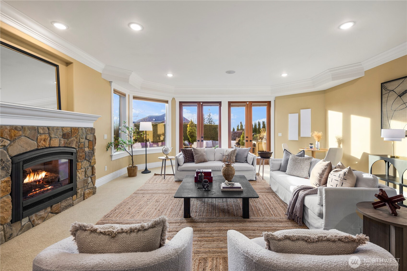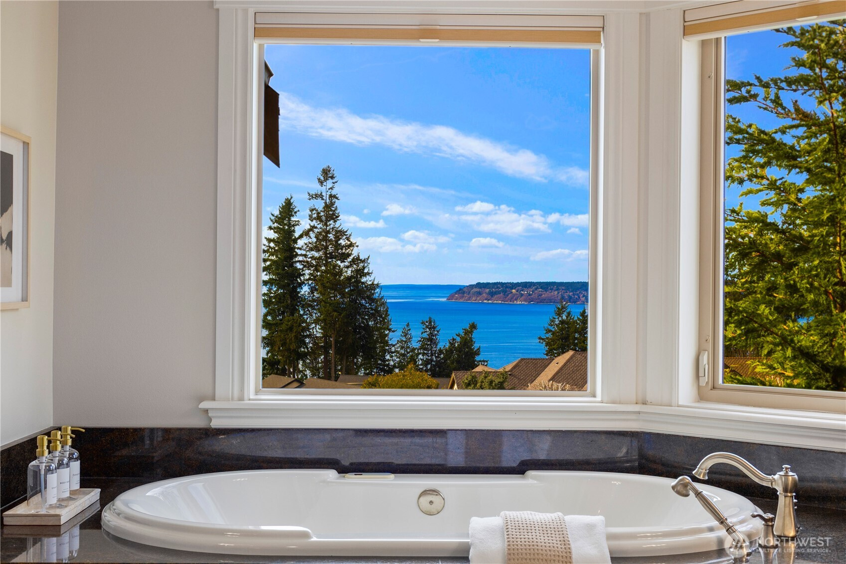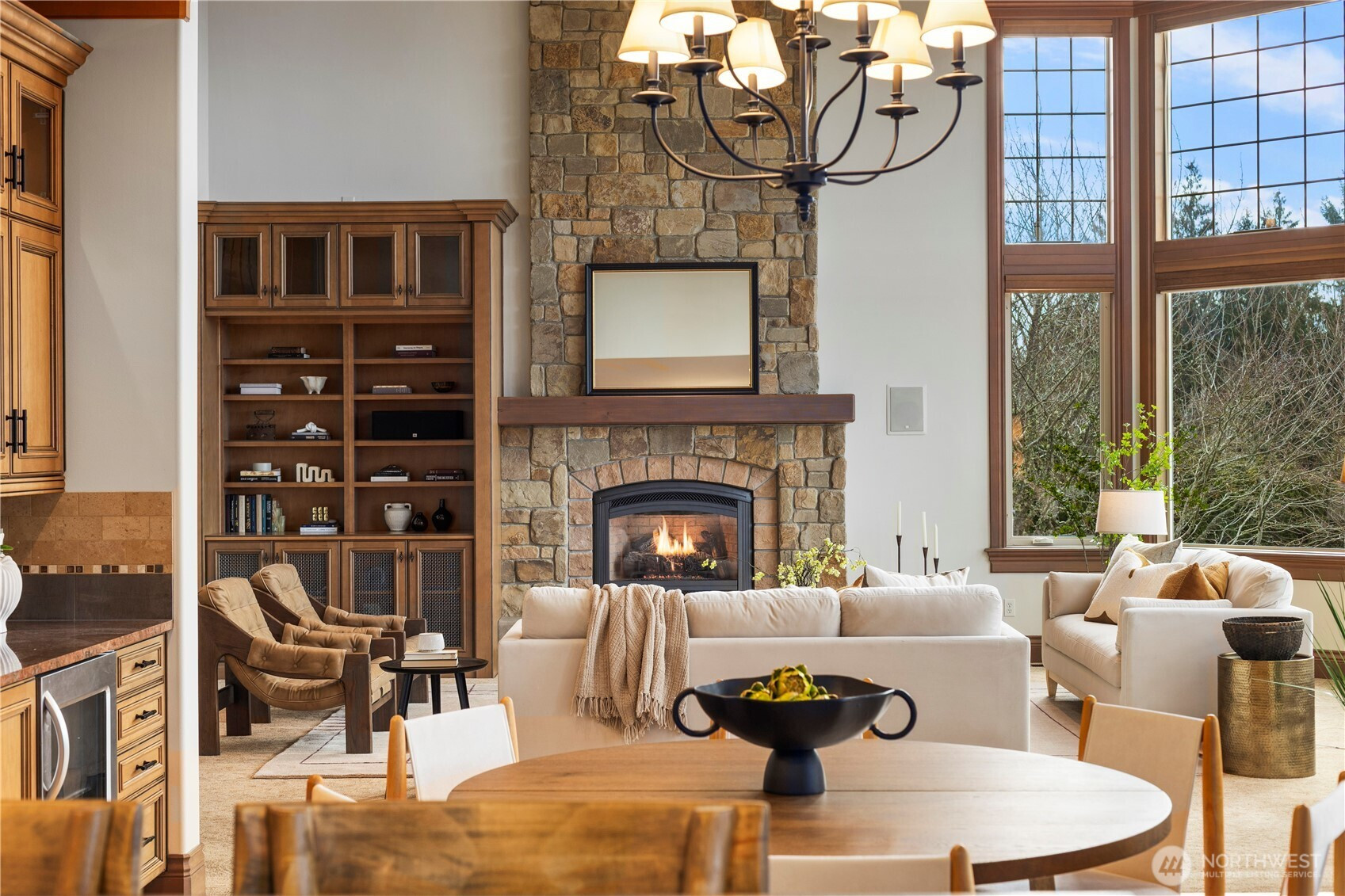 Perched on a quiet cul-de-sac, this nearly 6,000 sq ft west-facing estate captures breathtaking views of Puget Sound, Olympic Mountains, & Whidbey Island. Enjoy incredible sunsets from nearly every room in the house. A grand staircase entry makes a striking first impression, leading into an expansive great room with soaring 30-foot ceilings, exposed wood beams, & walls of windows that flood the home with natural light. Designed for effortless living & entertaining, the open-concept main floor features a chef’s kitchen seamlessly connected to inviting gathering spaces, including a covered deck with fireplace and panoramic views. A gorgeous office, walk-in pantry, large laundry room, and two powder baths complete this floor. Upstairs, three bedrooms are thoughtfully positioned on one level, each with their own ensuite bathroom. The primary suite offers a private retreat with stunning views, a fireplace, spa-like 5 piece bath, & an expansive walk-in closet. The lower level is an entertainer’s dream, complete with a 104” HD theater with 7.1 Dolby sound, wine cellar, game room, and guest suite. Multiple outdoor living areas, include a patio for dining and lounging, garden beds, and flat grassy lawns in both the front and back—an ideal blend of beauty and functionality Additional features include an elevator, whole-home sound system, and a 4-car garage with ample additional parking—offering a rare combination of scale, function, and Northwest luxury living.