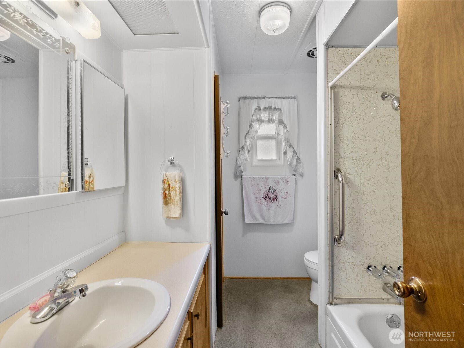 Welcome to the amazing 55+ Community of Mobile Estates! This 1,392 sqft, 2 bed / 1.75 bath home lives LARGE! Light & bright open floor plan. Large living room has pellet stove to keep electric bill low. Kitchen w/ pantry & dining room. Primary w/attached 3/4 bath. All appliances stay with home. Fully covered porch & carport. Fully fenced yard w/ 2 sheds for all your storage needs. Exceptionally maintained & active community offers clubhouse with pool, gym, and spacious recreation area. Hobby shop for tinkering. Car wash area for cleaning, RV Parking lot. Pet friendly w/ dog park area. Close to all amenities & walking distance to Interurban Trail. Commuting is a breeze ~ close to I-5 & Paine Field. Come & see today.