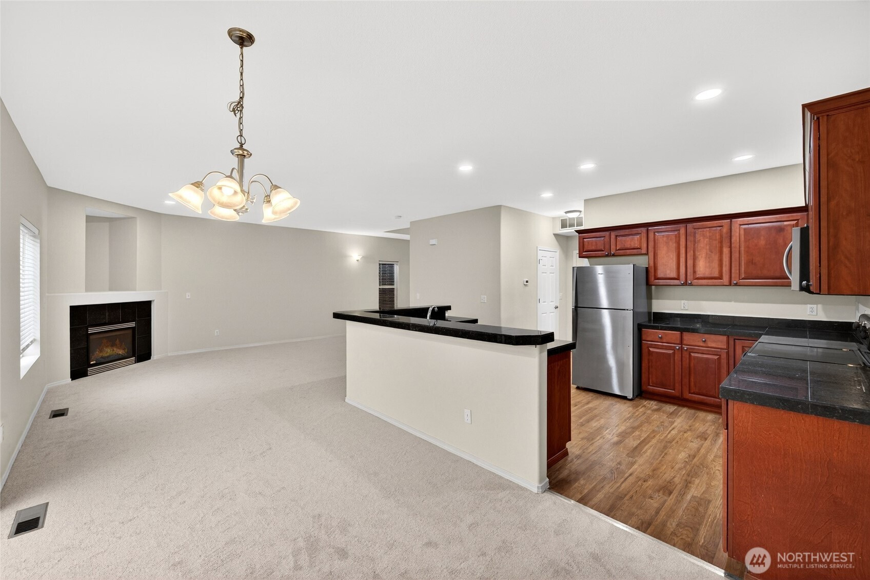 Urban convenience meets suburban comfort in the heart of Monroe located in the Woods Creek master plan community. Just minutes from dining, groceries, cinema and parks. This 3BR town-home boasts soaring ceilings, abundant natural light, and an open floor plan. Enjoy a spacious kitchen with ample cabinetry and center island, plus a large primary suite with walk-in closet and luxurious 5-piece bath. Two-car attached garage and low-maintenance living in a top-rated school district. Features include. New carpet, vinyl plank flooring and fresh paint through out. End-style design with only one shared wall offers rare privacy in a prime location.