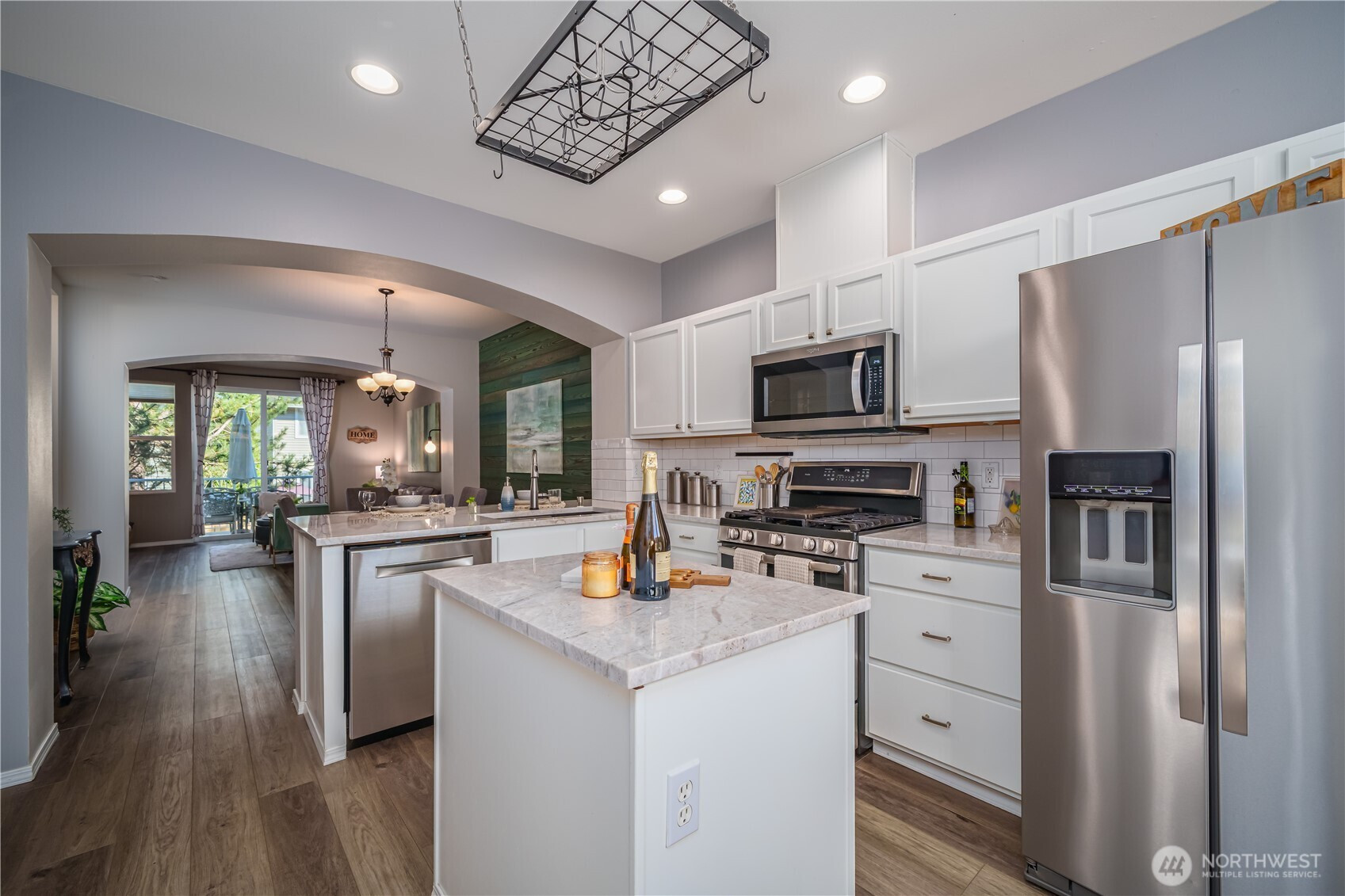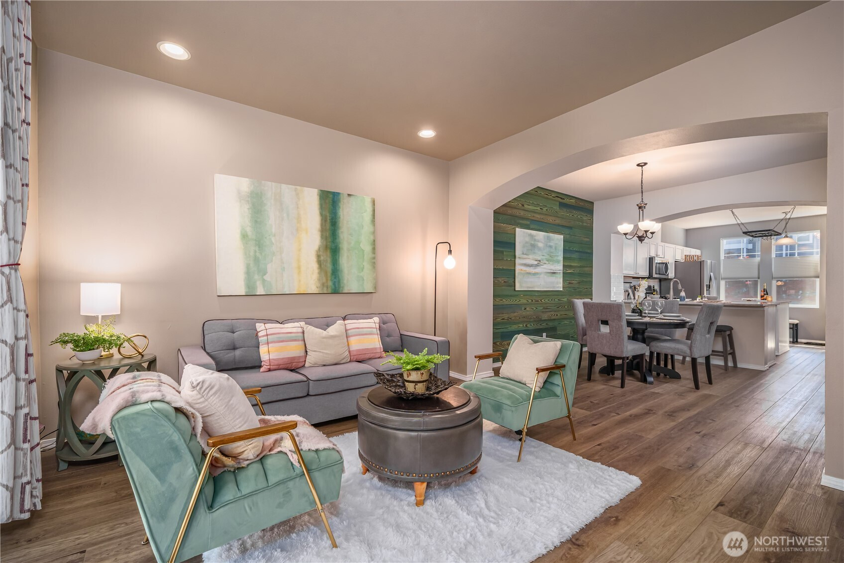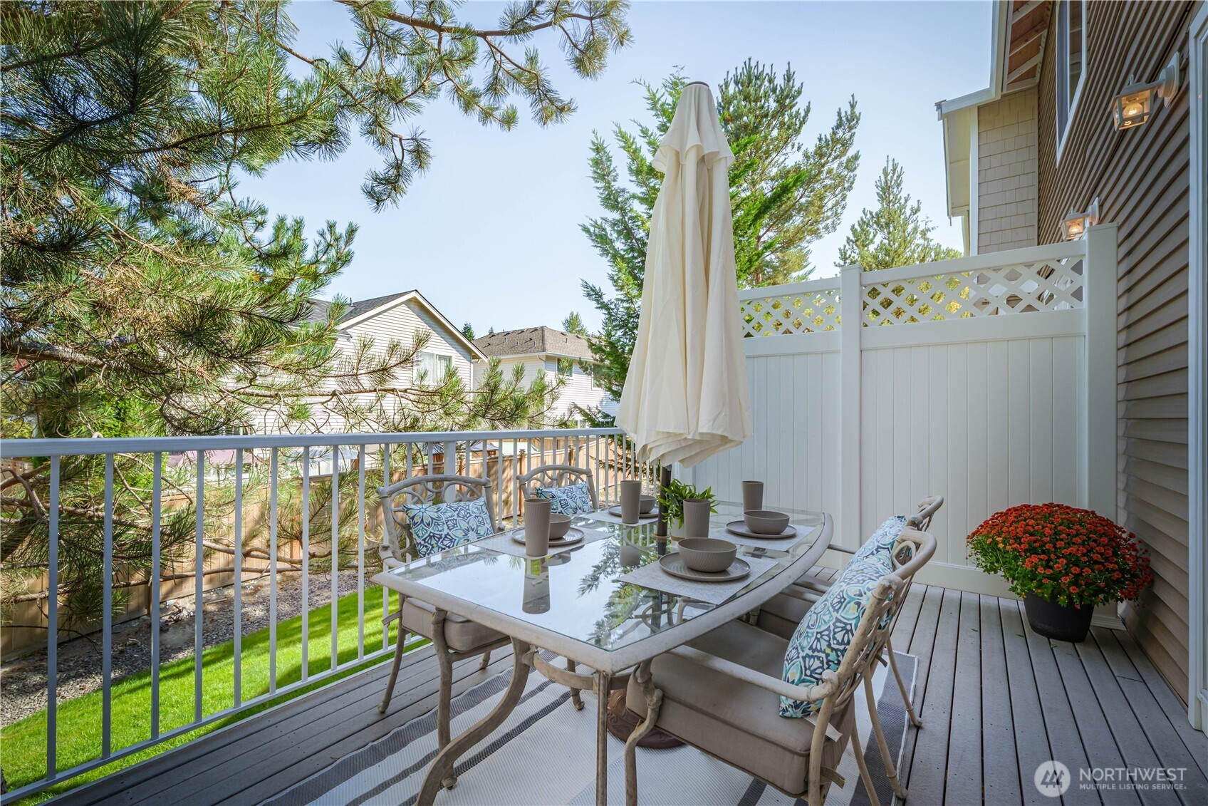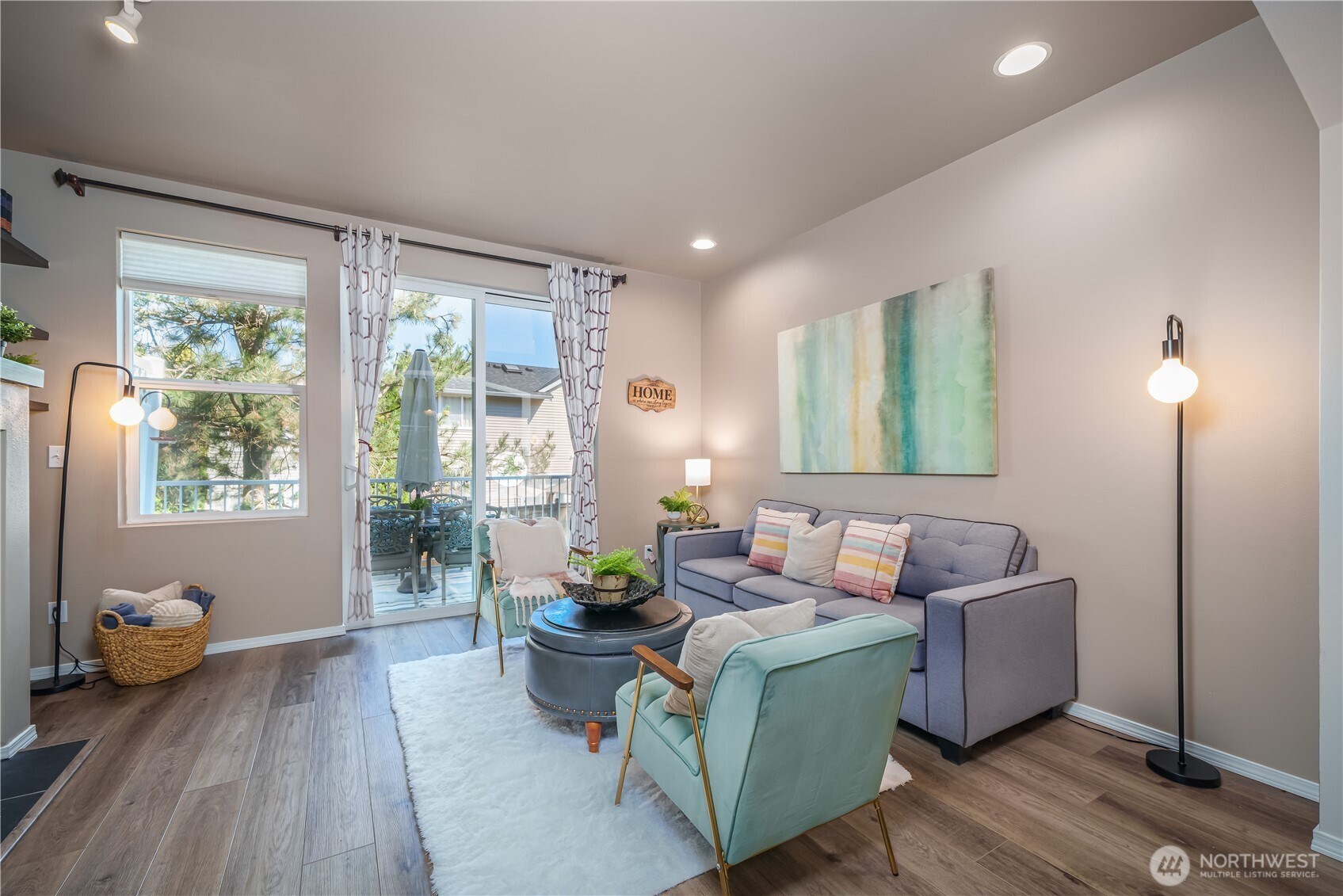 Welcome to this gorgeously updated townhome lovingly set in the serenity of the Magnolia section of Highlands East. Ascend to the inviting open floor plan complete w/ high ceilings, large picture windows w/ natural light, new/newer flooring, stellar kitchen w/SS appliances & quartzite counters, large living room, stylish powder room, & optimal deck! The top floor offers a large private primary suite w/ a double vanity full bath & ample closets. There's a 2nd bedroom that can also function as a home office or den, a 2nd bathroom, & newer washer/dryer. Conveniently located close to transportation, retail, dining, parks, & great schools. A large tandem 2-car garage, new roof, & 2-Year Fidelity Home Warranty complete this winning package!