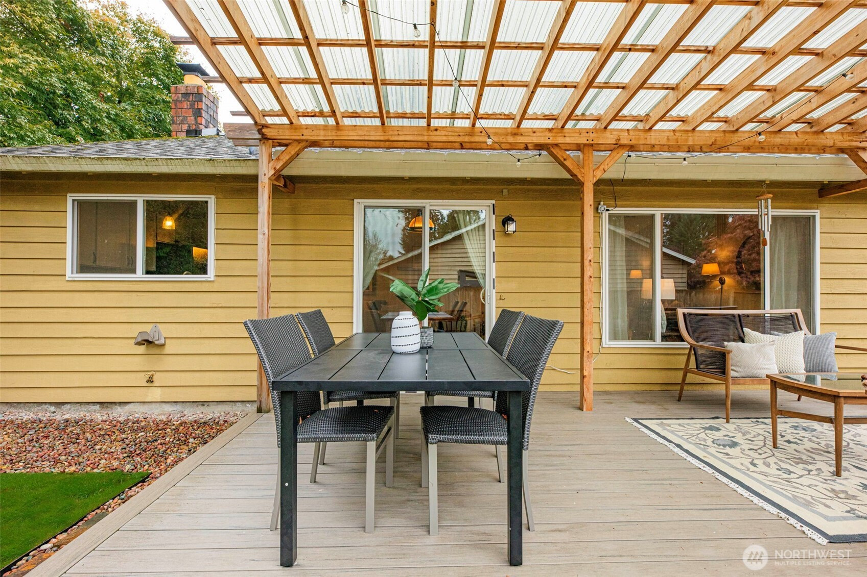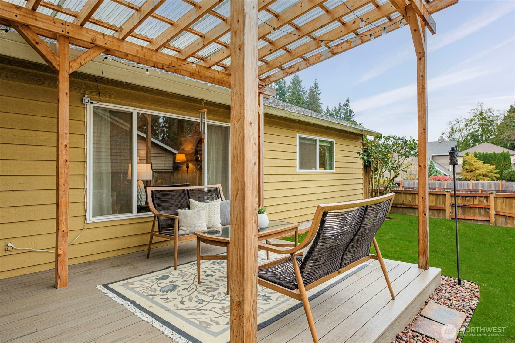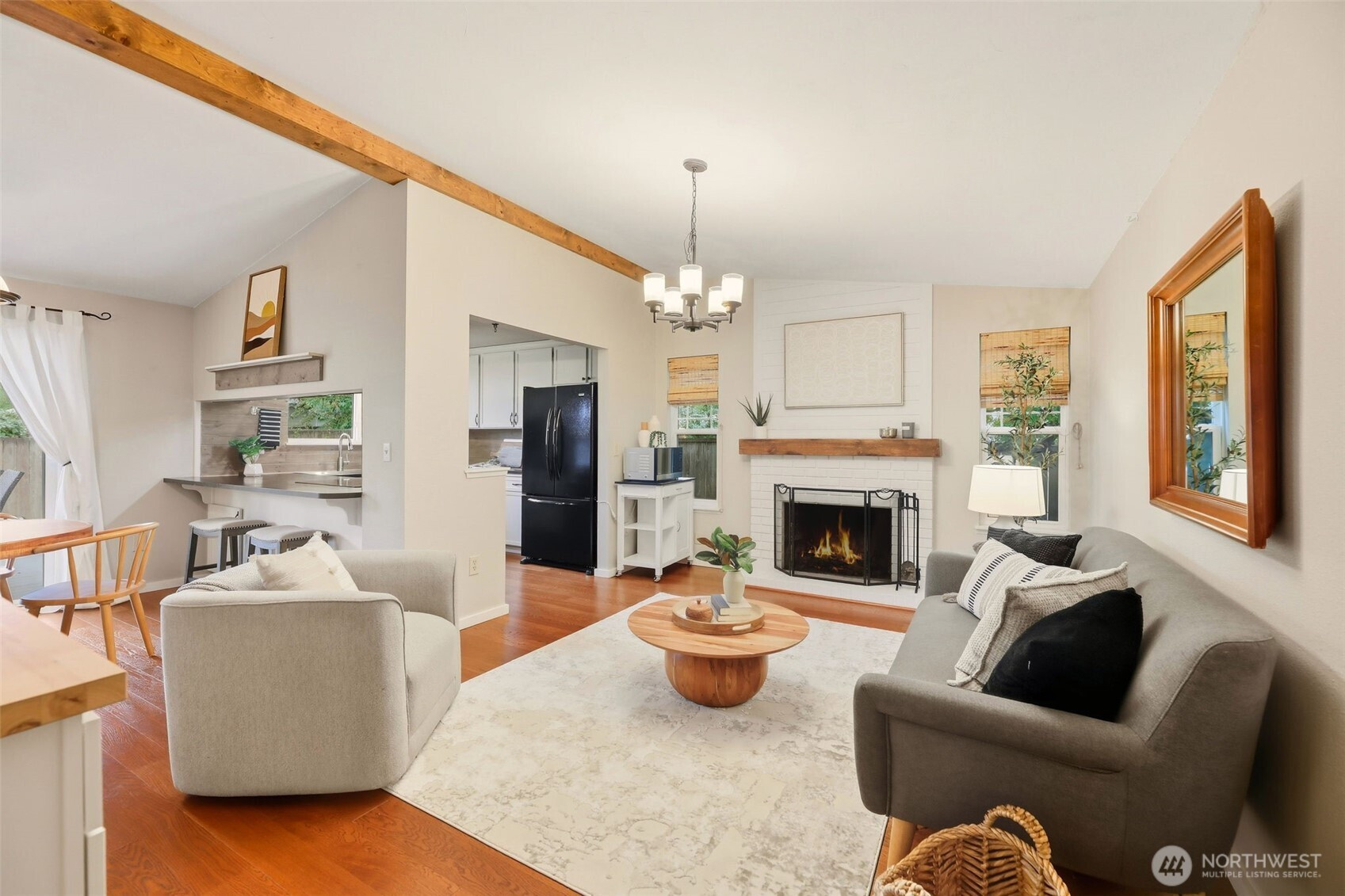 Welcome Home to this beautifully updated 3-bed, 2-bath rambler in desirable Silver Firs Community. Warm natural light pours through large windows, highlighting the vaulted ceilings, open floor plan, & rich engineered hardwood floors that flow seamlessly throughout. Kitchen features under mount lighting & full tile backsplash. Primary suite offers a serene spa-like 5-piece bath w/ heated slate floors, marble details, & custom built-ins. Newer roof, windows, garage door, & front door. Step outside to a spacious backyard where a new deck & covered awning invite you to savor peaceful mornings or cozy evenings year-round while staying dry. Room to add RV parking. Great community parks, playfields, dog park, shopping, & sidewalk streets. Turn Key