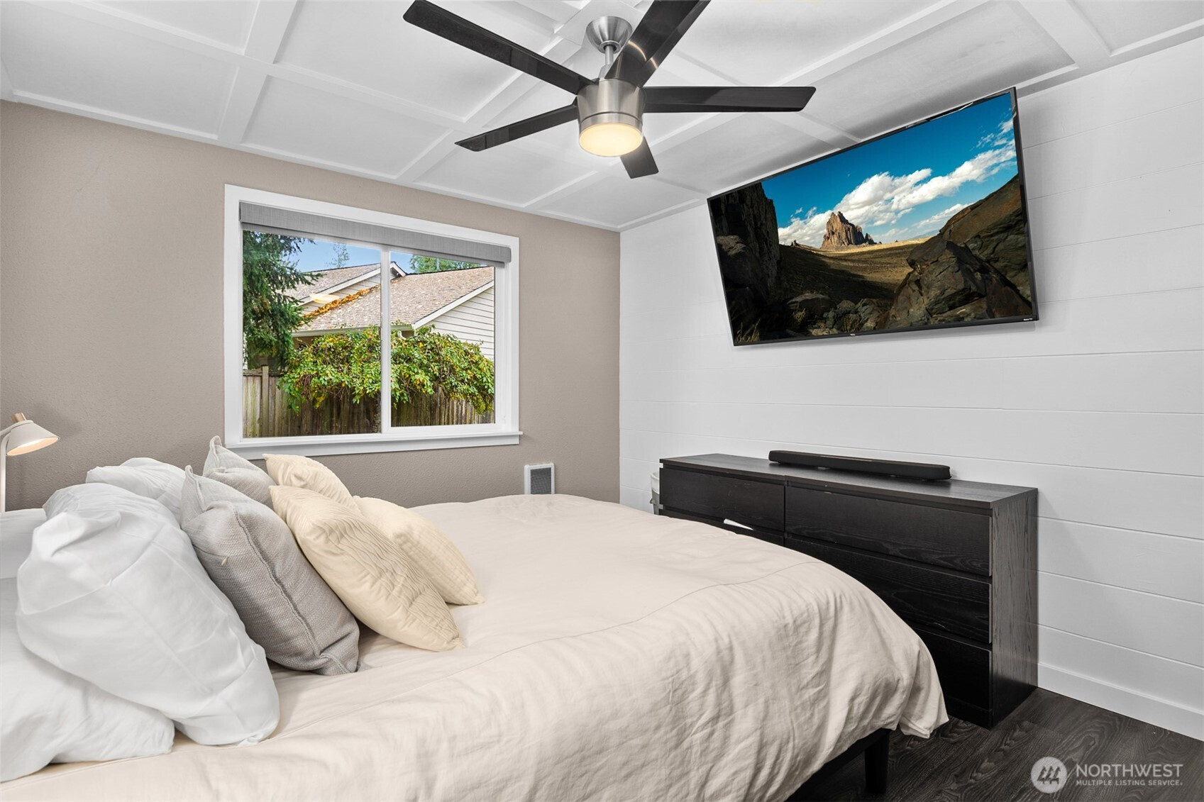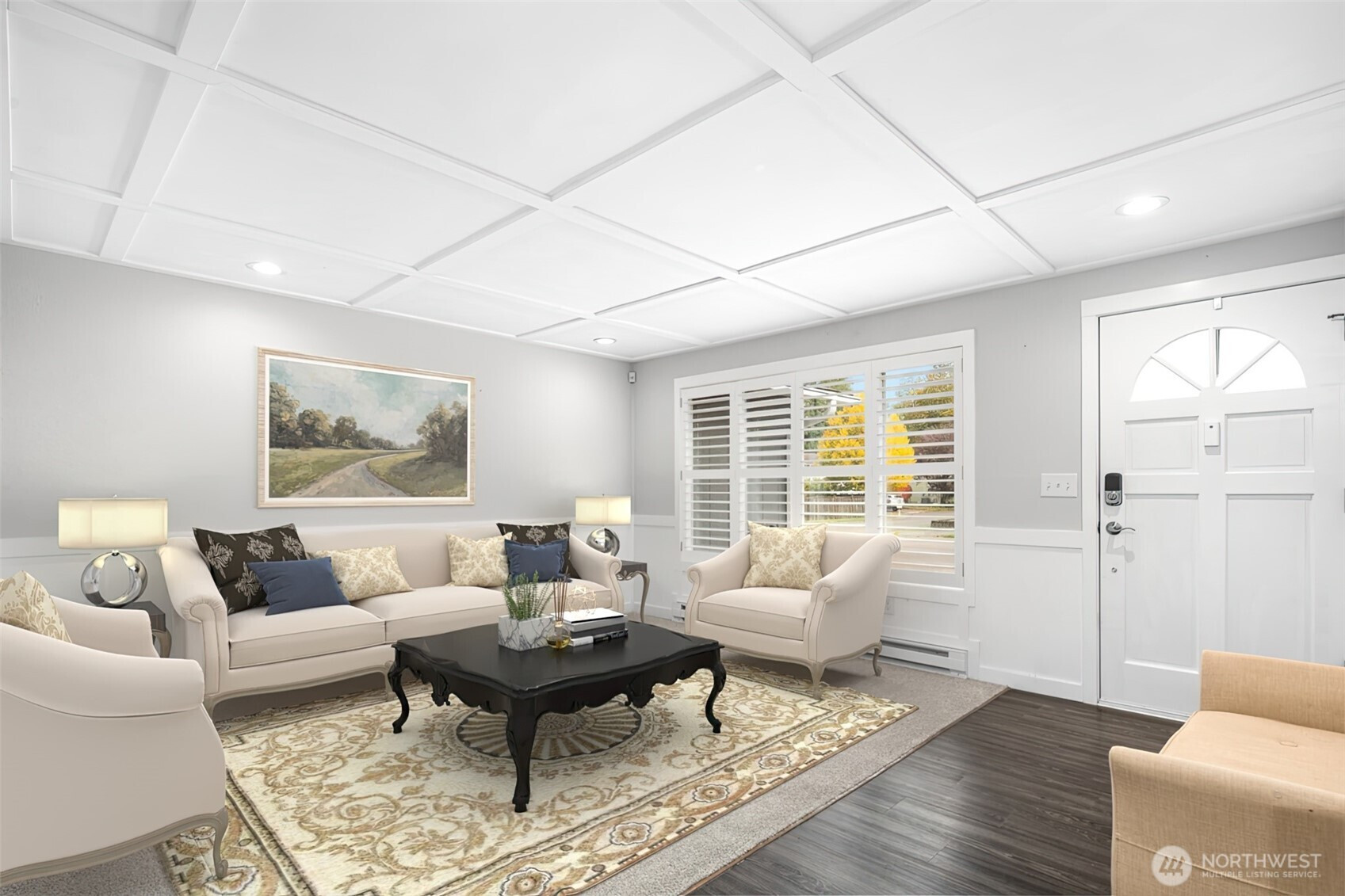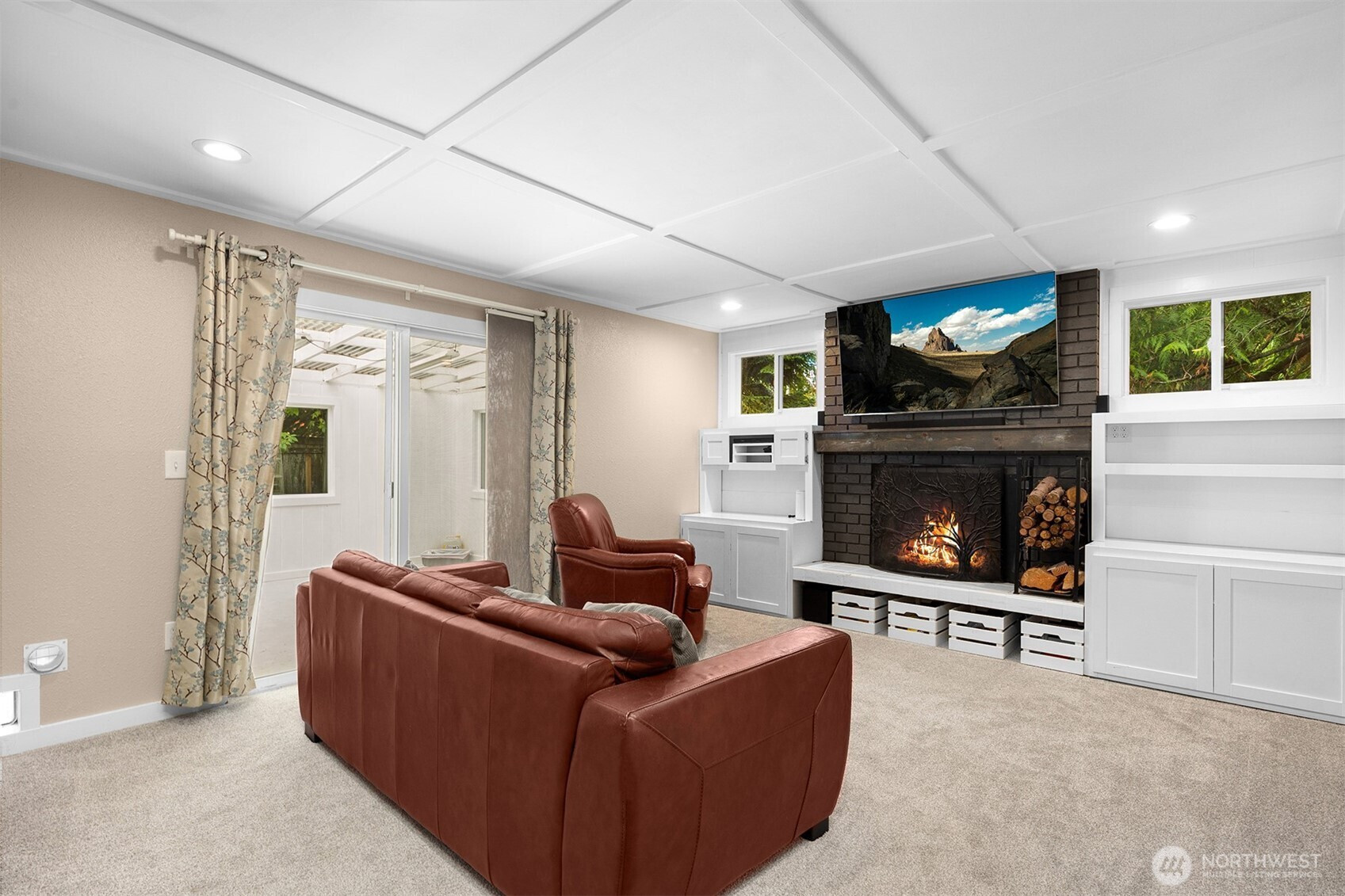Welcome to Silver Firs – Where Something Special Awaits! Beautiful 3 Bed Rambler on a Large Corner Lot with Stunning & Unique Details: custom box beam ceilings, built-ins around your wood-burning fireplace, wainscotting, upgraded kitchen & bath w/white cabinets, beautiful white doors & trim, louvered wood shutters, 2025 stove/range, new easy-care solid surface flooring + new carpet, leaf guard gutters, fabulous outdoor living room/sunroom for year-round use! Great floorplan w/ 2 separate living spaces, oversized windows. 2-car garage, storage shed & mature plantings. Enjoy one of the area’s most sought-after neighborhoods offering trails, parks, community activities, quick access to schools, shopping/restaurants! Pre-Inspected.