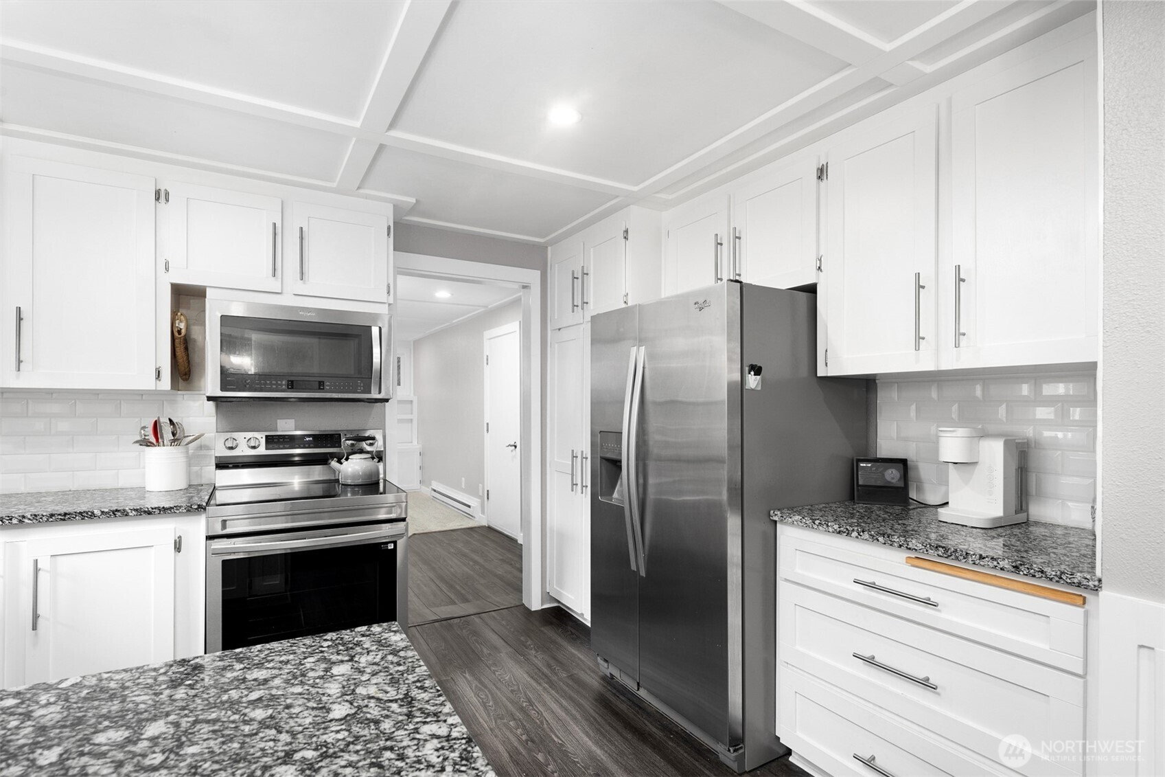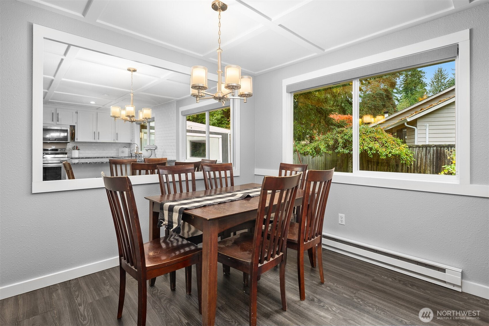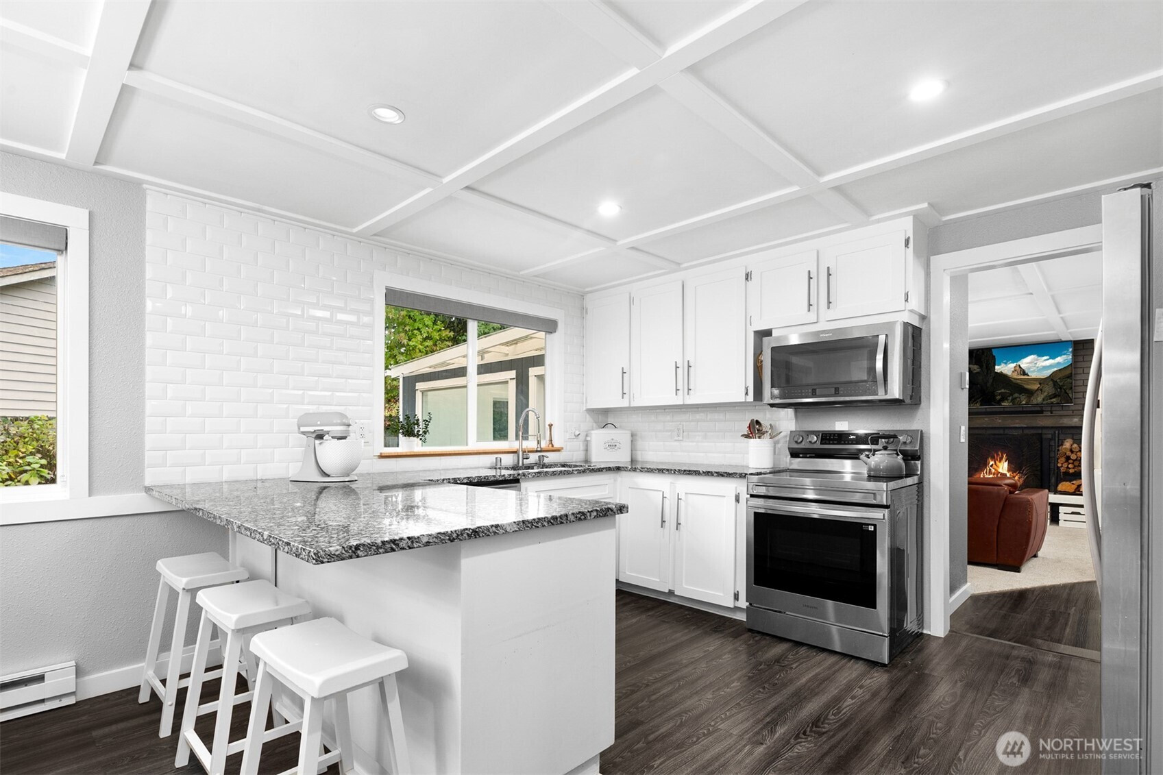 Welcome to Silver Firs – Where Something Special Awaits! Beautiful 3 Bed Rambler on a Large Corner Lot with Stunning & Unique Details: custom box beam ceilings, built-ins around your wood-burning fireplace, wainscotting, upgraded kitchen & bath w/white cabinets, beautiful white doors & trim, louvered wood shutters, 2025 stove/range, new easy-care solid surface flooring + new carpet, leaf guard gutters, fabulous outdoor living room/sunroom for year-round use! Great floorplan w/ 2 separate living spaces, oversized windows. 2-car garage, storage shed & mature plantings. Enjoy one of the area’s most sought-after neighborhoods offering trails, parks, community activities, quick access to schools, shopping/restaurants! Pre-Inspected.