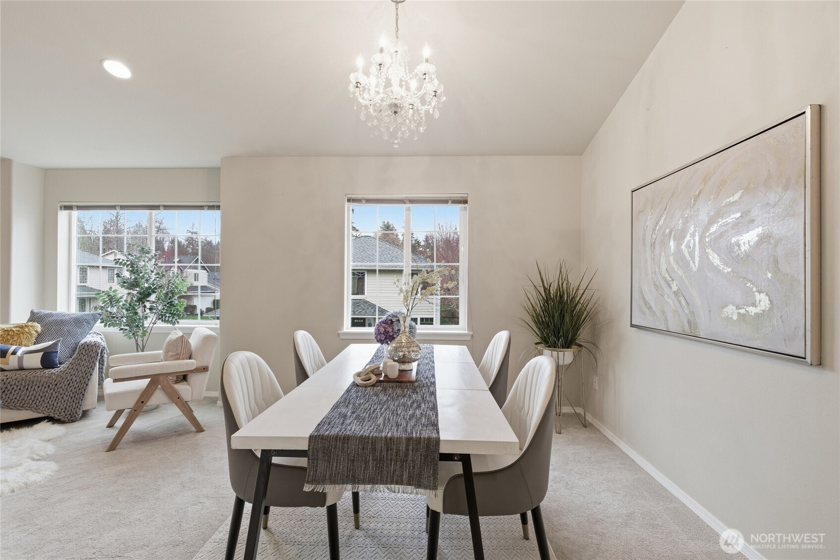 Welcome to the peaceful comfort of this home in a privately gated community of just 18 homes. Situated on a corner lot, the flexible layout offers 2 bedrooms, 1 bath, kitchenette, and bonus space on the main level—ideal for MIL living, guests, or house-hack potential. Upstairs features bright, vaulted living spaces with a spacious kitchen and eating area, open living and dining areas, and a cozy family room with gas fireplace—perfect for everyday living and entertaining. Step onto the private balcony with composite decking to relax and unwind. This level also includes an additional bedroom and a primary suite with a walk-in closet featuring a built-in closet system and a bathroom with new LVP flooring. Recent updates include NEW carpet, NEW furnace with 10-year warranty, 2022 roof with 20-year warranty, and 2020 water heater. Extra finished room off the 2-car garage adds flexibility. HOA covers gate and landscaping. Conveniently located near parks, trails, beaches, Boeing, Paine Field Airport, and easy access to Hwy 99, I-5, and 405. Located in the award-winning Mukilteo School District.