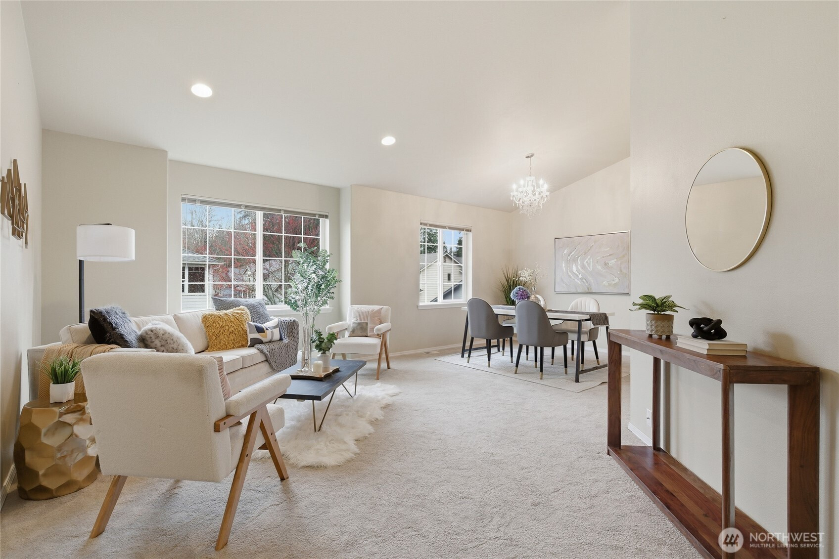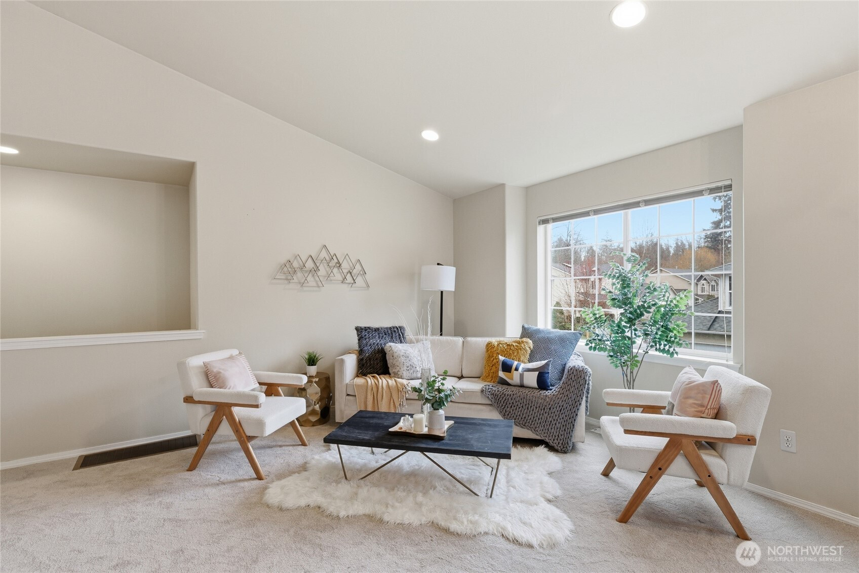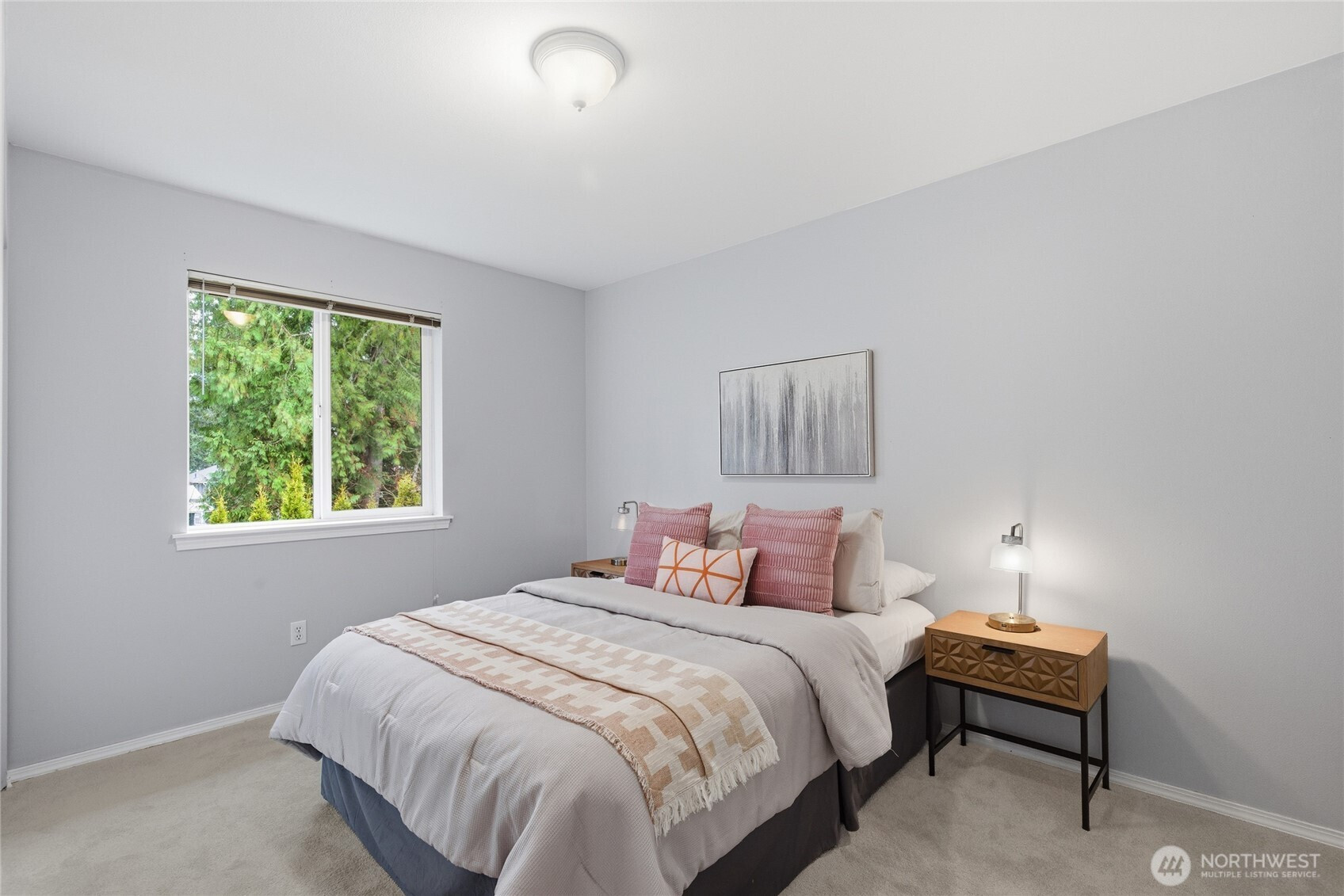 Welcome to the peaceful comfort of this home in a privately gated community of just 18 homes. Situated on a corner lot, the flexible layout offers 2 bedrooms, 1 bath, kitchenette, and bonus space on the main level—ideal for MIL living, guests, or house-hack potential. Upstairs features bright, vaulted living spaces with a spacious kitchen and eating area, open living and dining areas, and a cozy family room with gas fireplace—perfect for everyday living and entertaining. Step onto the private balcony with composite decking to relax and unwind. This level also includes an additional bedroom and a primary suite with a walk-in closet featuring a built-in closet system and a bathroom with new LVP flooring. Recent updates include NEW carpet, NEW furnace with 10-year warranty, 2022 roof with 20-year warranty, and 2020 water heater. Extra finished room off the 2-car garage adds flexibility. HOA covers gate and landscaping. Conveniently located near parks, trails, beaches, Boeing, Paine Field Airport, and easy access to Hwy 99, I-5, and 405. Located in the award-winning Mukilteo School District.
