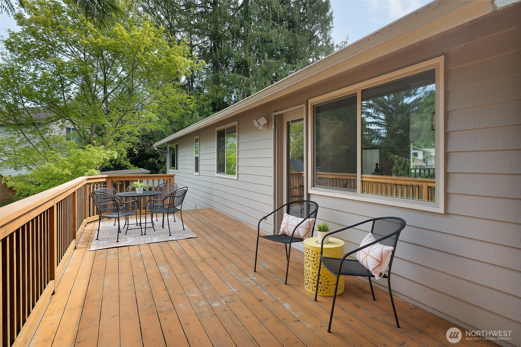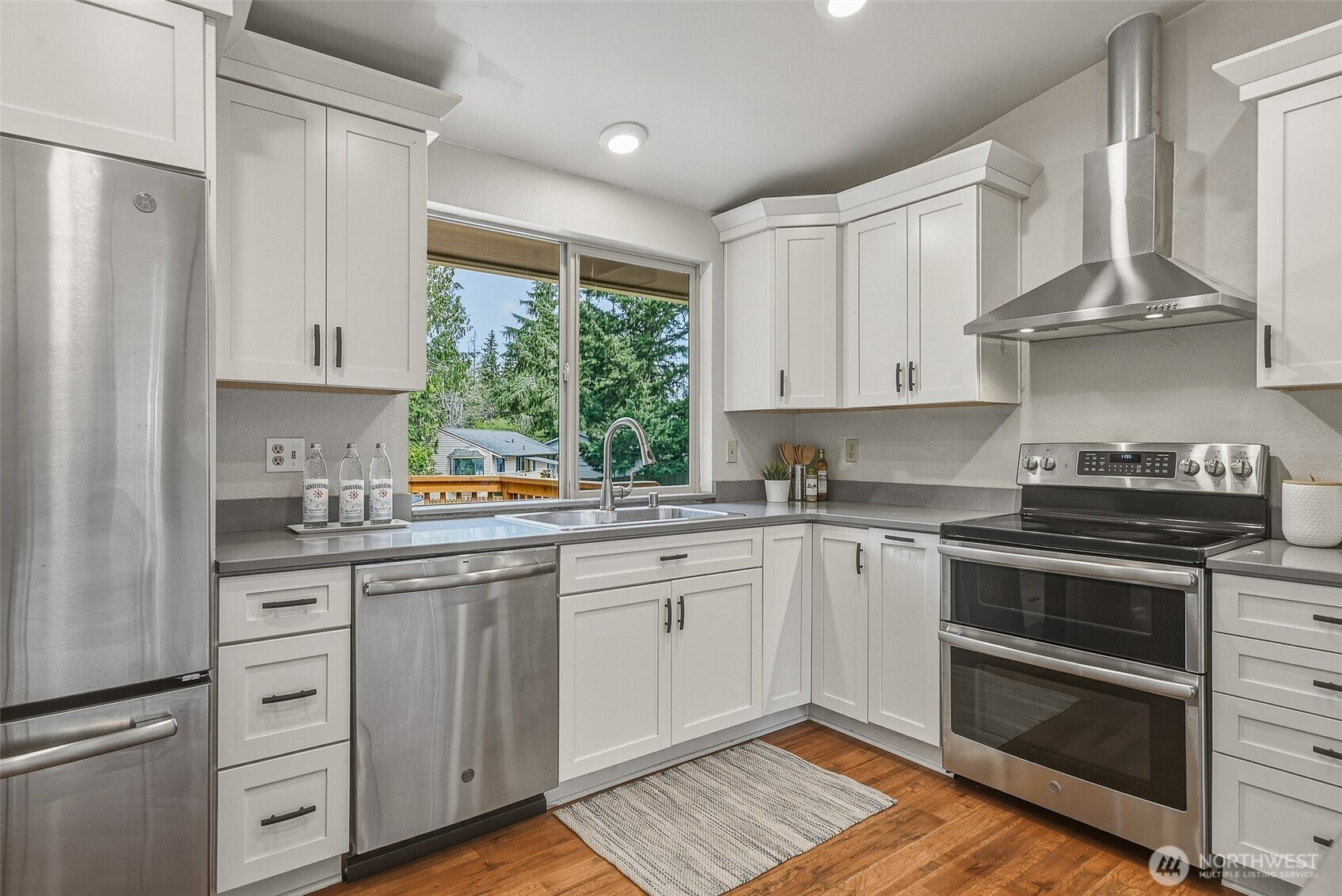 Lake Serene living at its finest! Tucked at the end of a quiet cul-de-sac on a shy third acre, this beautifully updated 4-bed, 2.5-bath home offers a rare blend of comfort, flexibility, and privacy. Inside, vaulted ceilings and south-facing windows fill the main living spaces with warm natural light, highlighting the formal dining area and remodeled kitchen with quartz countertops, stainless steel appliances, and custom cabinetry with thoughtful built-ins. The kitchen flows seamlessly into the living room, where a cozy fireplace anchors the space and invites connection. The primary suite features a walk-in closet and en-suite bath, while two additional bedrooms and a full guest bath complete this level. Downstairs, the daylight basement expands the living options with a generous family room, second wood-burning stove, large bedroom, 3/4 bath, and a bonus room with sink—ideal for multi-generational living or a potential kitchenette (buyer to verify). Step outside to a large wraparound deck overlooking a fully fenced backyard with mature blueberry bushes and tart cherry trees, offering a welcoming space to relax, gather, or enjoy seasonal harvests. Additional highlights include LVP flooring, new paint & carpet, remodeled baths, newer roof and furnace, and a large 2-car garage. Convenient to shopping, parks, major highways, & transit, and served by the award winning Mukilteo School District, this home offers a peaceful setting with everyday convenience close at hand.