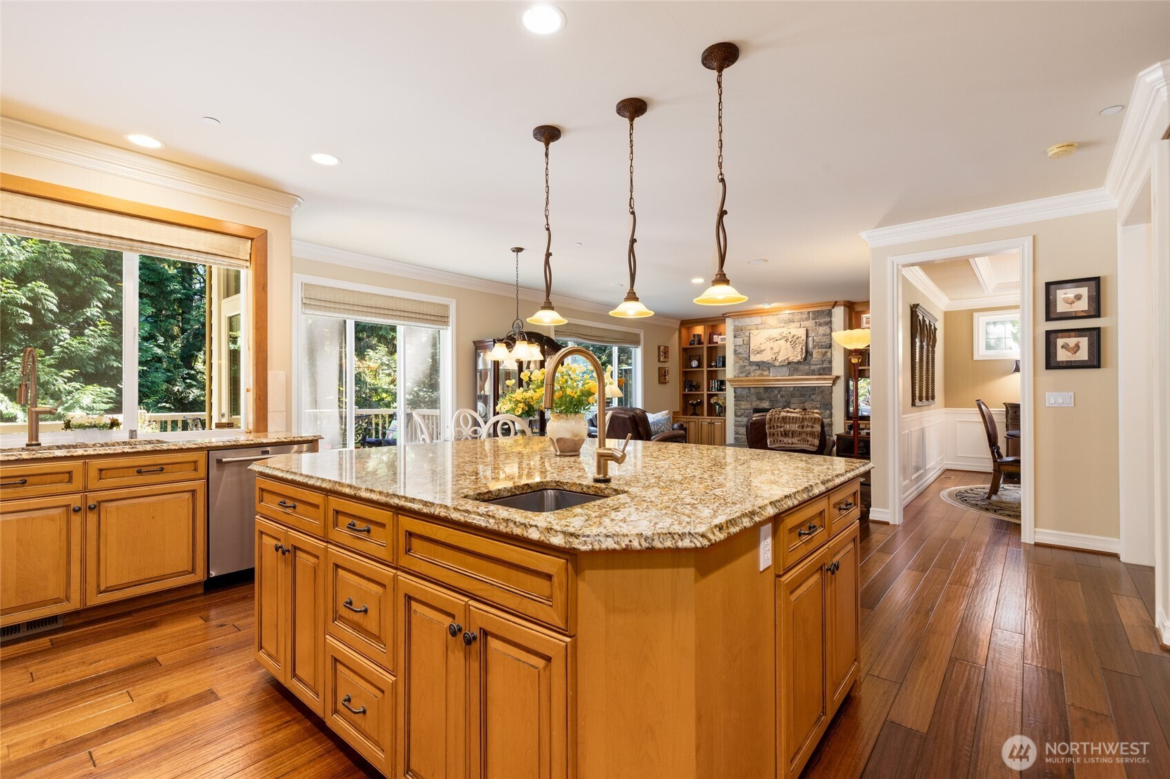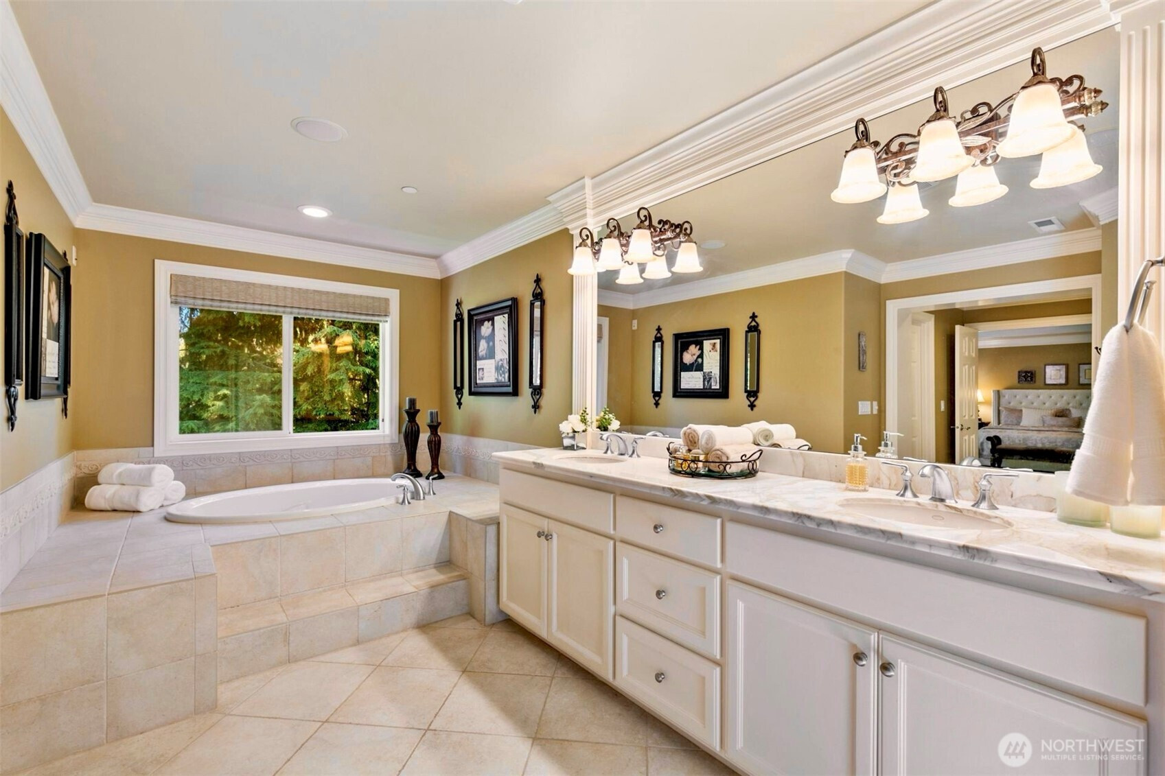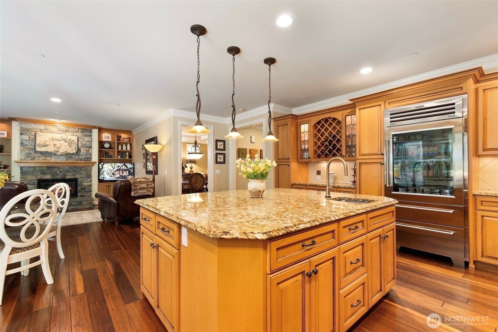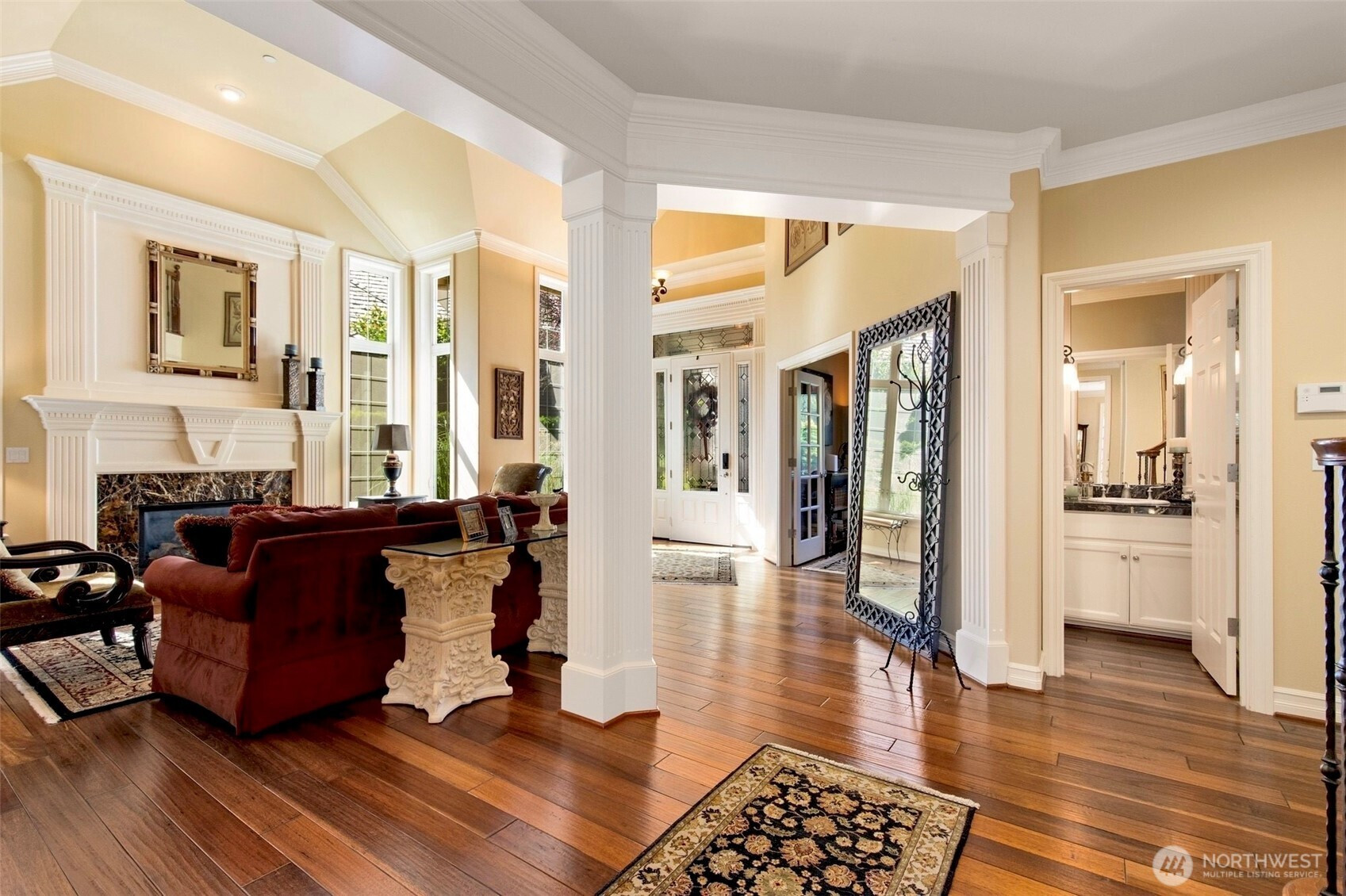 Timeless Buchan luxury in Mill Creek’s premier River Crossing. Private greenbelt cul-de-sac setting with 4,770?sq?ft features soaring ceilings, mahogany floors, exquisite millwork, & leaded glass accents. Gourmet kitchen offers a 48” Thermador, Sub-Zero Pro, Meile espresso, slab granite island with Brizo touch faucets, custom cabinetry. Versatile plan includes 5 BD, 4.5 BR, executive office, theater, & bonus room. Grand primary suite with a fireplace, spa bath, rain shower, and dual walk-in closets. Landscaped yard, tranquil triple fountain, expansive Trex deck, lighted sport court, & irrigation. Dual A/C, tankless water, integrated whole-home audio, and a finished 3-car garage. Lower-level MIL potential. Walk to Town Center, golf, & parks.