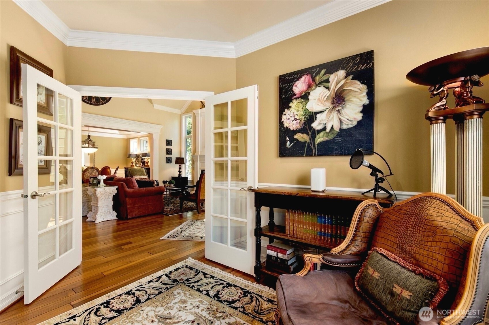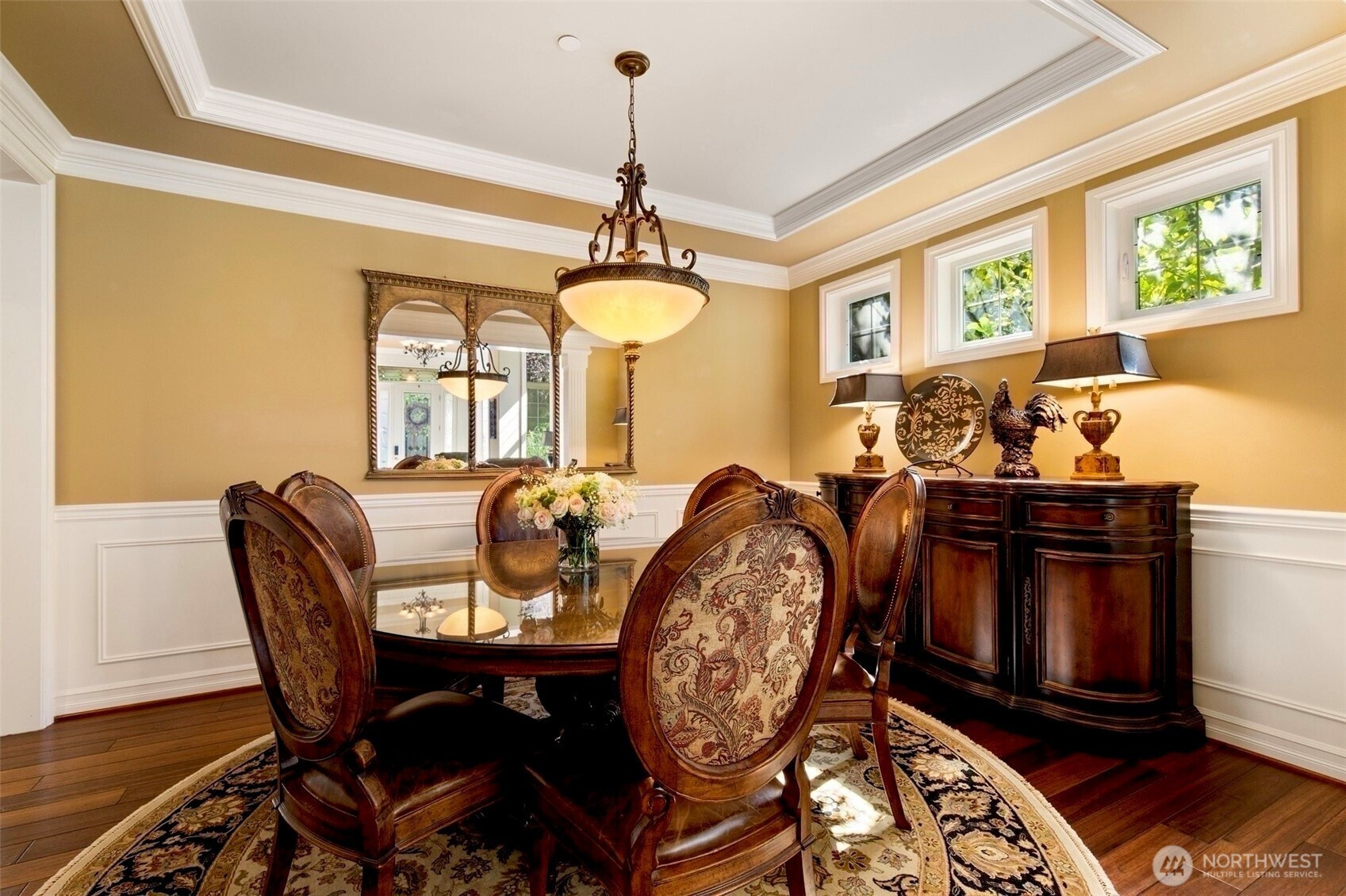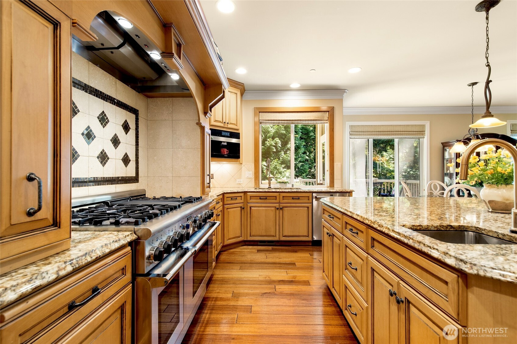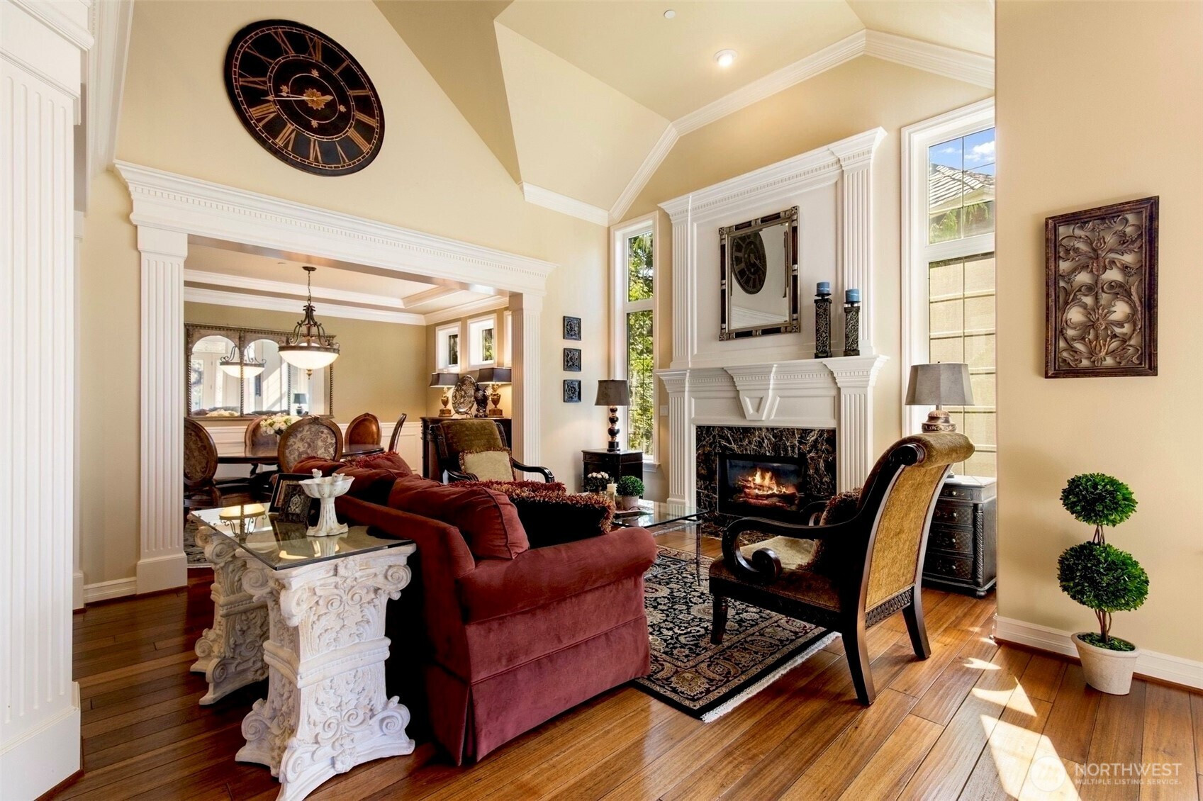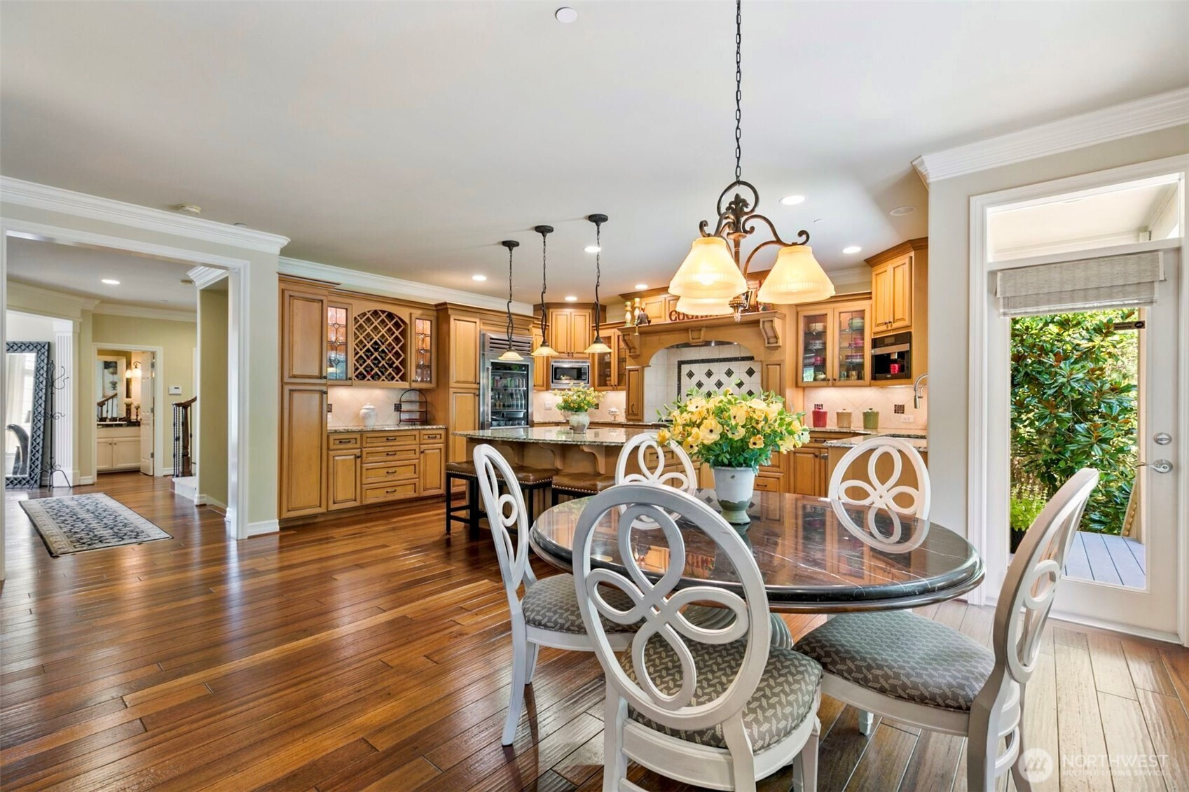 Timeless Buchan luxury in Mill Creek’s premier River Crossing. Private greenbelt cul-de-sac setting with 4,770?sq?ft features soaring ceilings, mahogany floors, exquisite millwork, & leaded glass accents. Gourmet kitchen offers a 48” Thermador, Sub-Zero Pro, Meile espresso, slab granite island with Brizo touch faucets, custom cabinetry. Versatile plan includes 5 BD, 4.5 BR, executive office, theater, & bonus room. Grand primary suite with a fireplace, spa bath, rain shower, and dual walk-in closets. Landscaped yard, tranquil triple fountain, expansive Trex deck, lighted sport court, & irrigation. Dual A/C, tankless water, integrated whole-home audio, and a finished 3-car garage. Lower-level MIL potential. Walk to Town Center, golf, & parks.