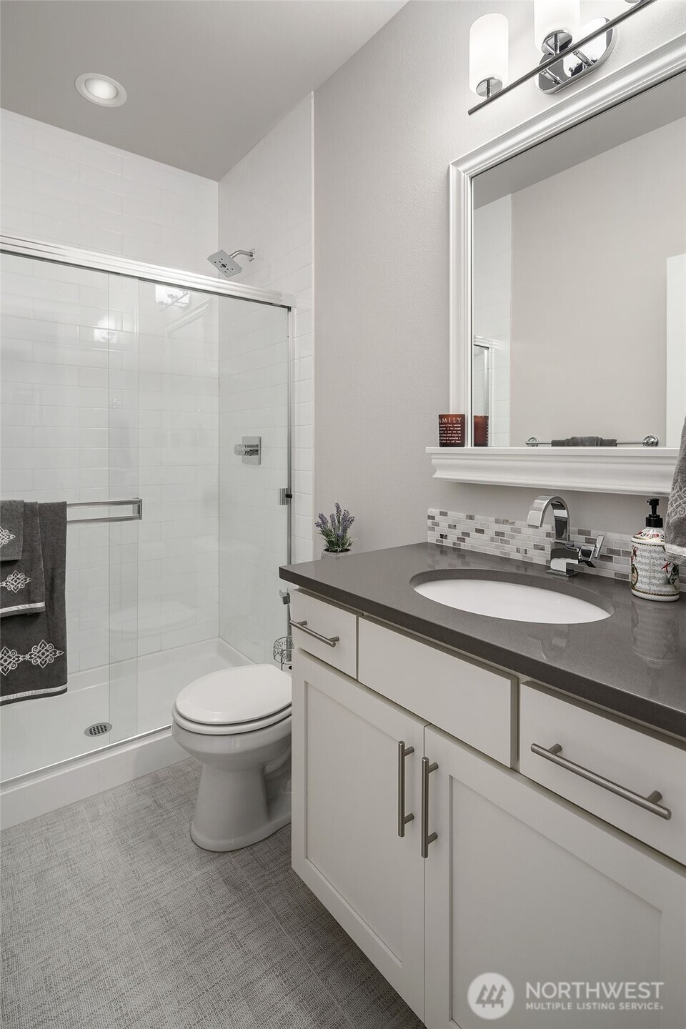 Immaculate, light, bright, 3,609 sqft 2-Story Village Life resale on level 8,276 sqft (.19 acre) lot. Improvements include: Family room built in cabinets, Laundry room cabinets and sink, Built in Buffet in daily dining area, Upgraded carpeting throughout, Primary bathroom custom walk-in closet, Garage flooring and shelving. Main floor features: Open floor plan. Hardwood floors in entry and dining room. Vaulted ceilings in family room with gas fireplace. Large Chef Kitchen with Island center, quartz counters. Nook with sliding glass door to covered patio. Bedroom. 3/4 bath. 2nd floor features: 4 beds, 2.75 baths, utility room. Owner's suite complete with vaulted ceilings, sitting area, walk in closet & luxurious en-suite bath with soaking tub, separate shower, double vanity. Fully fenced. AC. Covered Entry. 3-Car Garage. Northshore School District. Conveniently located within close proximity to 405, I-5, parks, Bothell, Canyon Park, Kirkland, Bellevue.