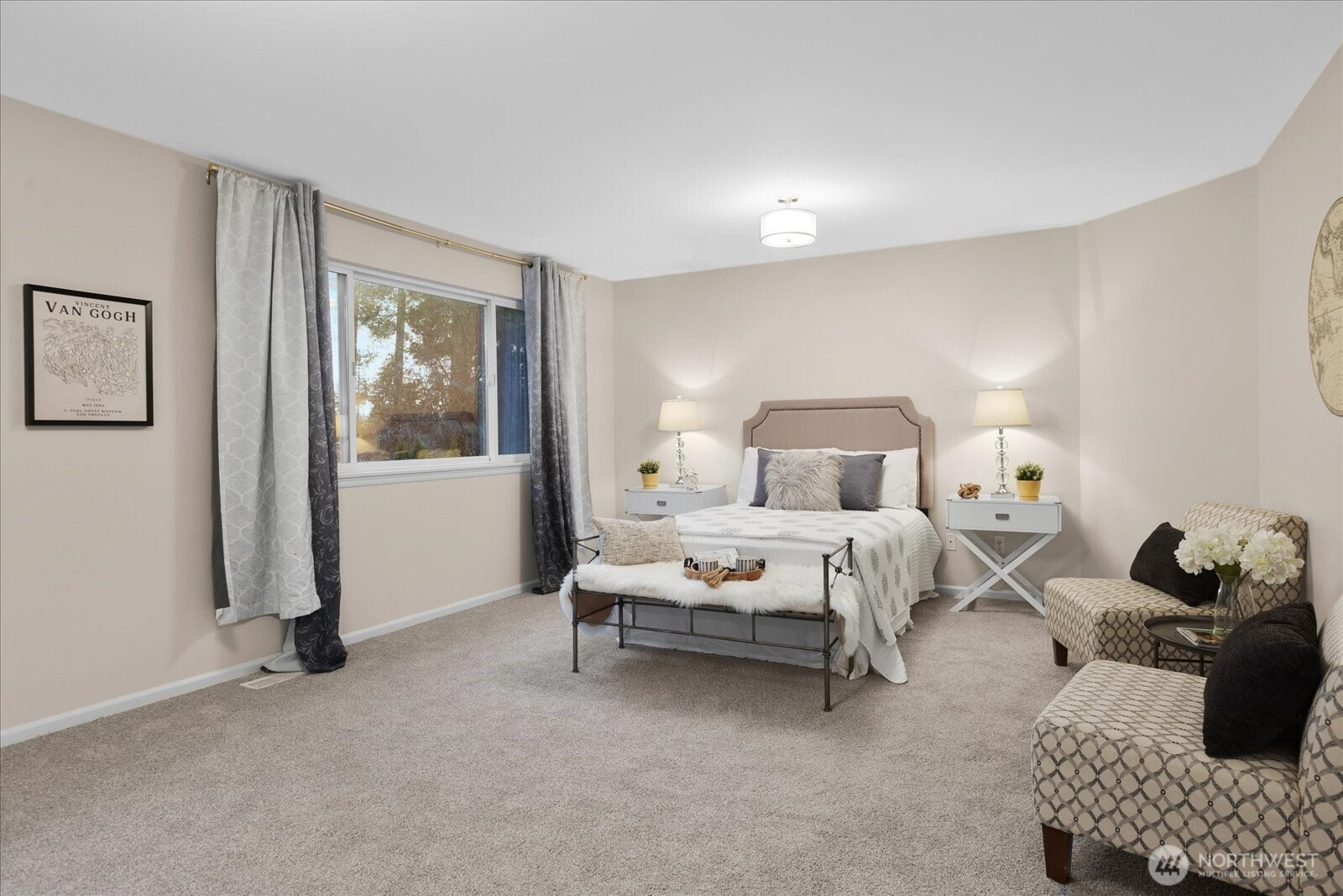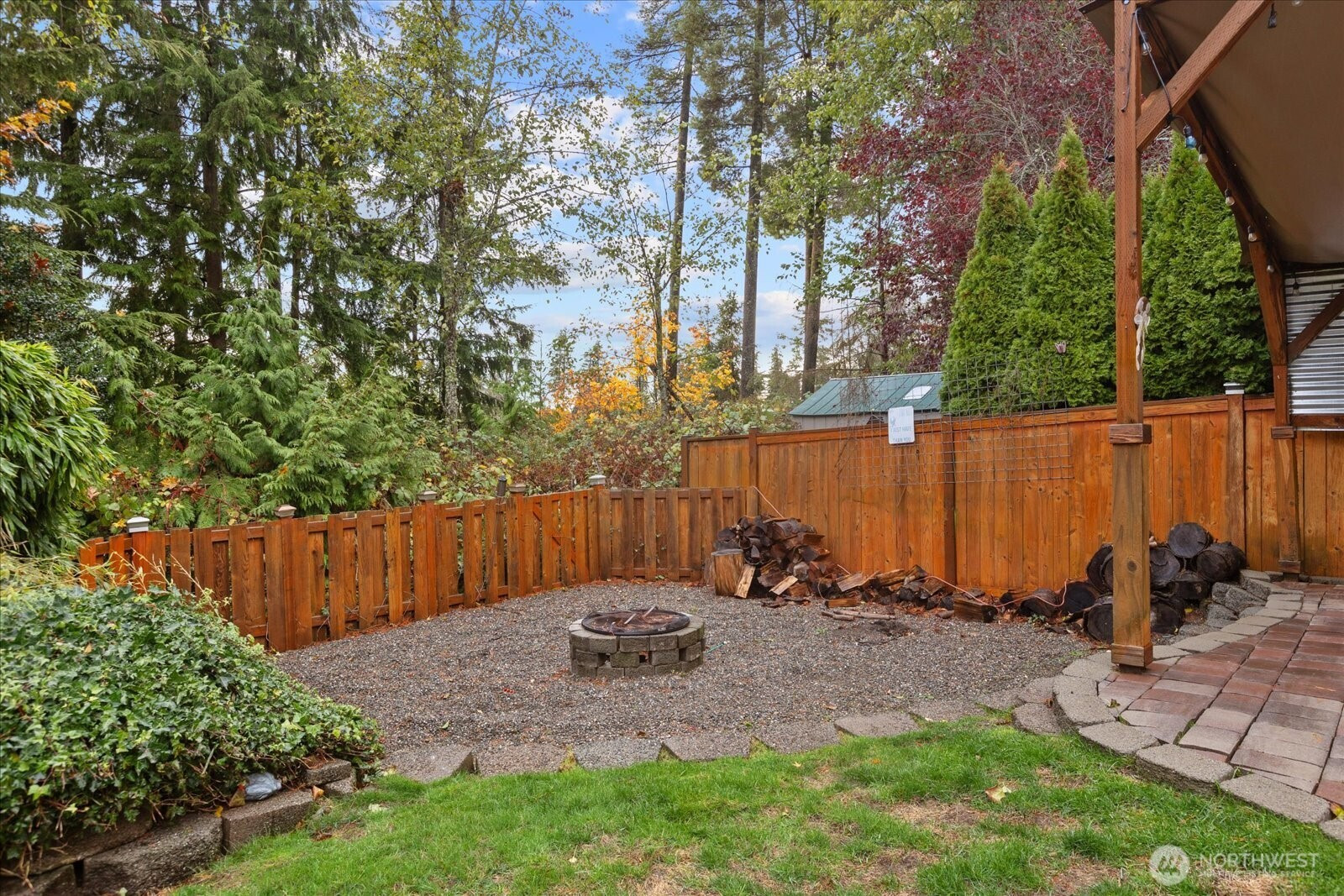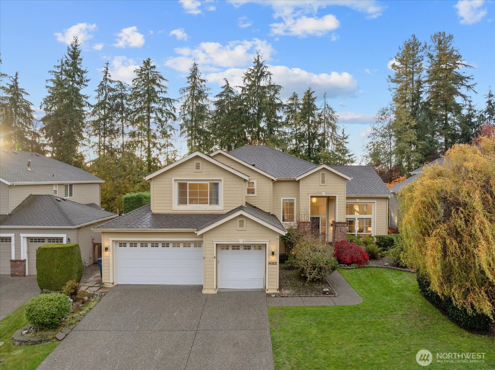 Welcome home! This spacious property features 4 bedrooms + main-floor den and an 3/4 bath offering the perfect floorplan. Tucked on a greenbelt in a quiet division of Silver Firs, this home offers the ideal blend of community and privacy. Soaring ceilings & crisp vinyl flooring greet you upon entry, creating a bright and open feel that carries into the gourmet kitchen with SS appliances, granite counters, and custom painted cabinetry. The main-floor ¾ bath and private den is ideal for guests or home office setup. Upstairs you will find all new carpeting and spacious primary suite with attached bath and walk in closet with built ins. Backyard is perfect for entertaining with 900sqft patio and firepit area, come see it today!