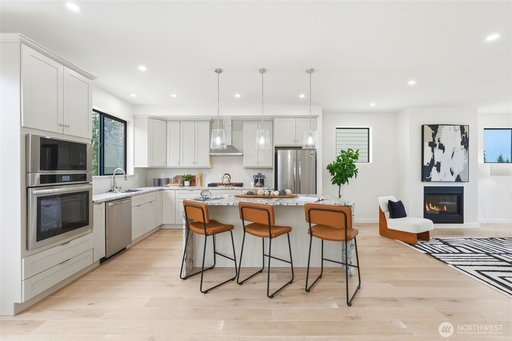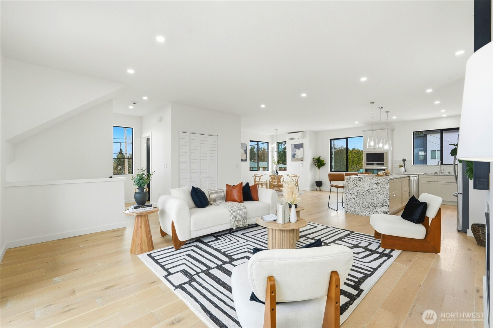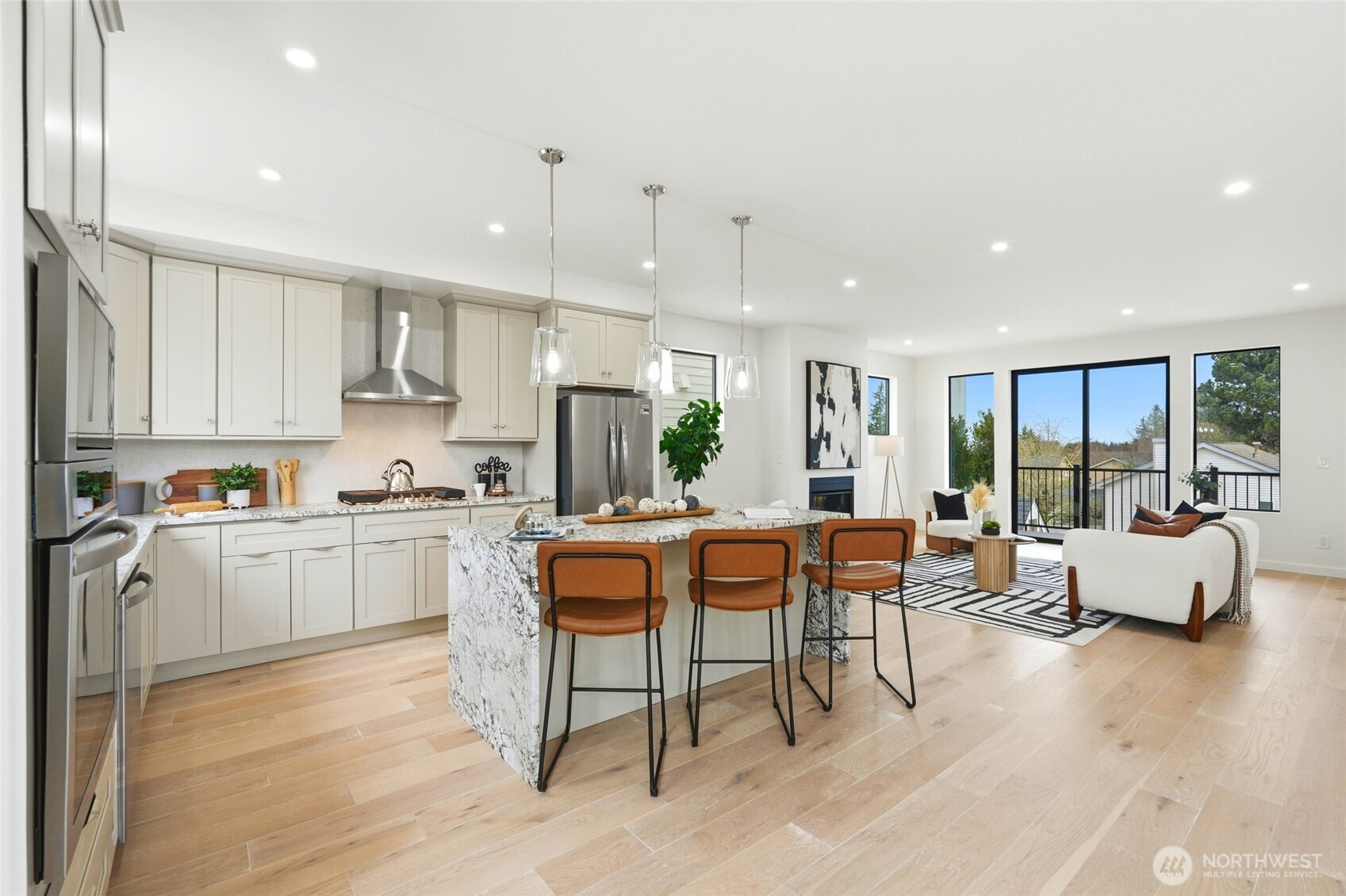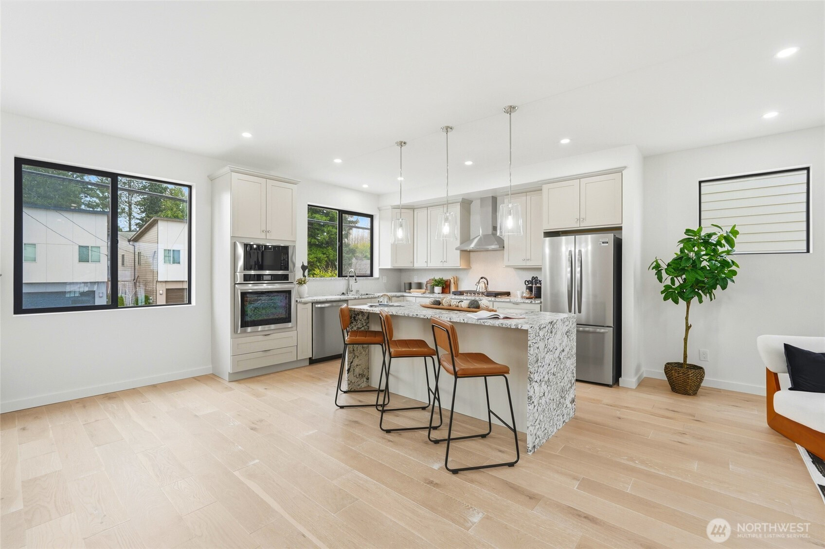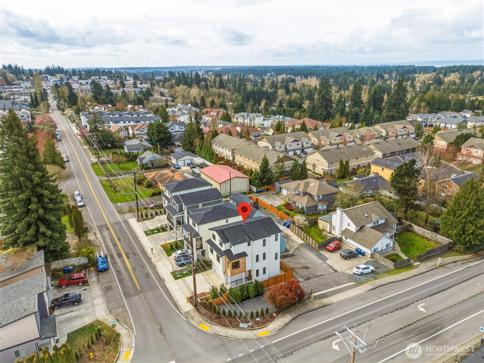 Beautifully designed new construction in the sought-after Edmonds School District, offering three levels of contemporary living with 4 bedrooms, flexible spaces, and modern finishes throughout. The open-concept main level is filled with natural light and features a stylish kitchen with contemporary cabinetry, granite countertops, and a seamless flow ideal for everyday living and entertaining. A main-floor bedroom and full bath provide a perfect setup for guests, multi-generational living, or a private home office. Upstairs, the generous primary suite offers a comfortable retreat, while additional bedrooms provide flexibility for work, hobbies, or living. Modern mini-split heating and cooling systems deliver efficient year-round comfort. Enjoy outdoor living on the private deck, backyard area, and the convenient two-car garage. The builder also added enhanced windows and soundproofing on the north exterior wall for improved comfort and quiet living. Ideally located with quick access to Mukilteo Speedway, Interstate 5, shopping at Alderwood Mall, restaurants, and everyday amenities. Low HOA dues support an easy, low-maintenance lifestyle in a convenient location.