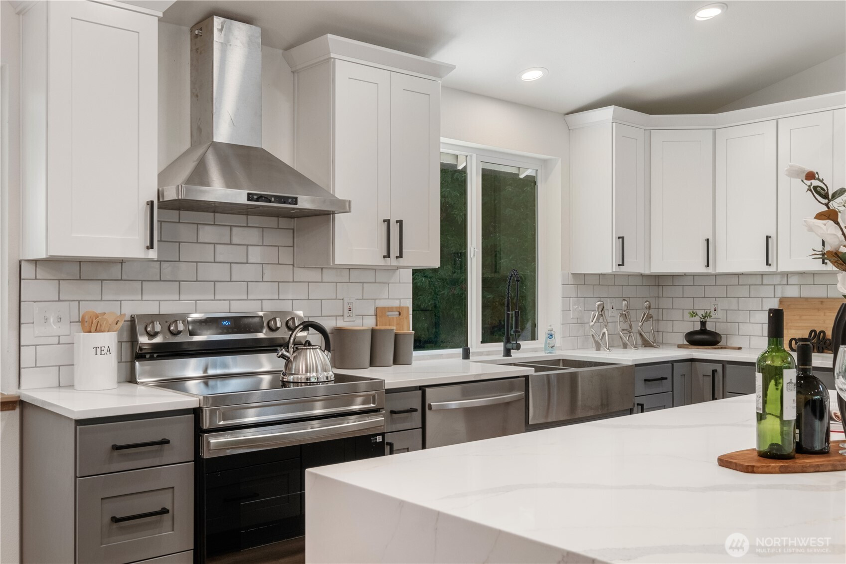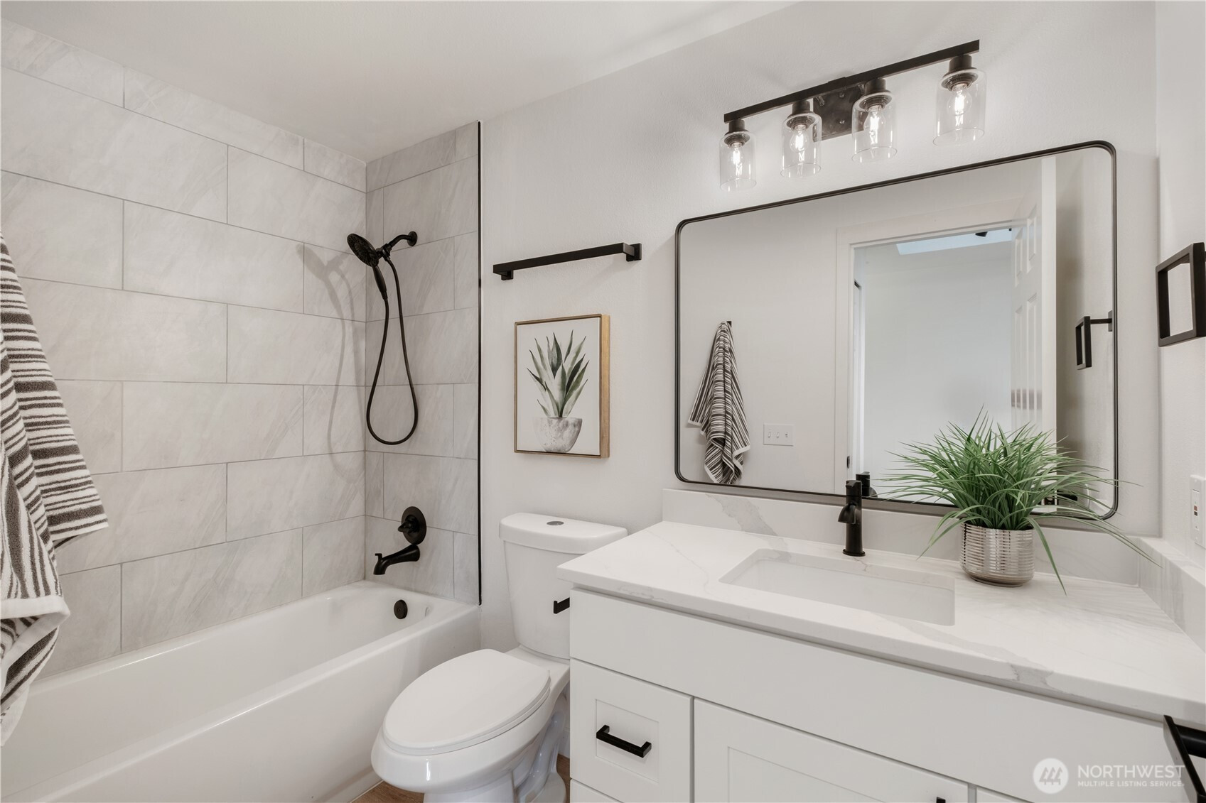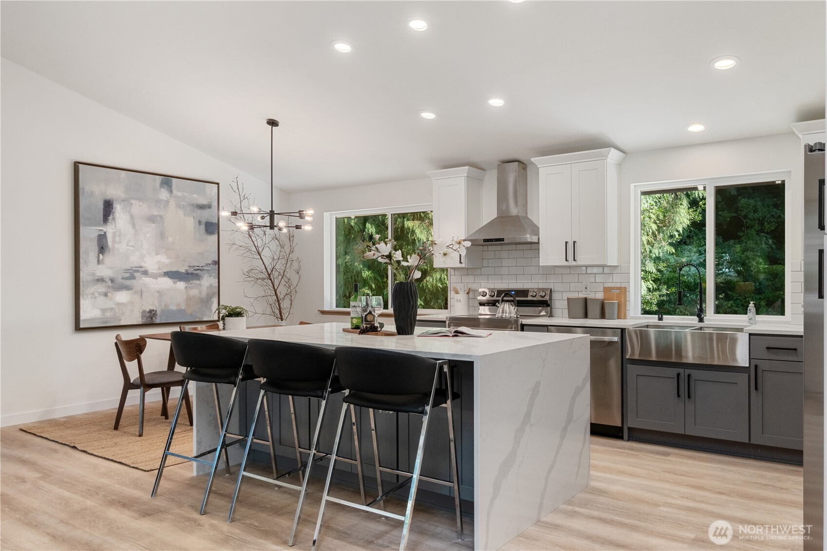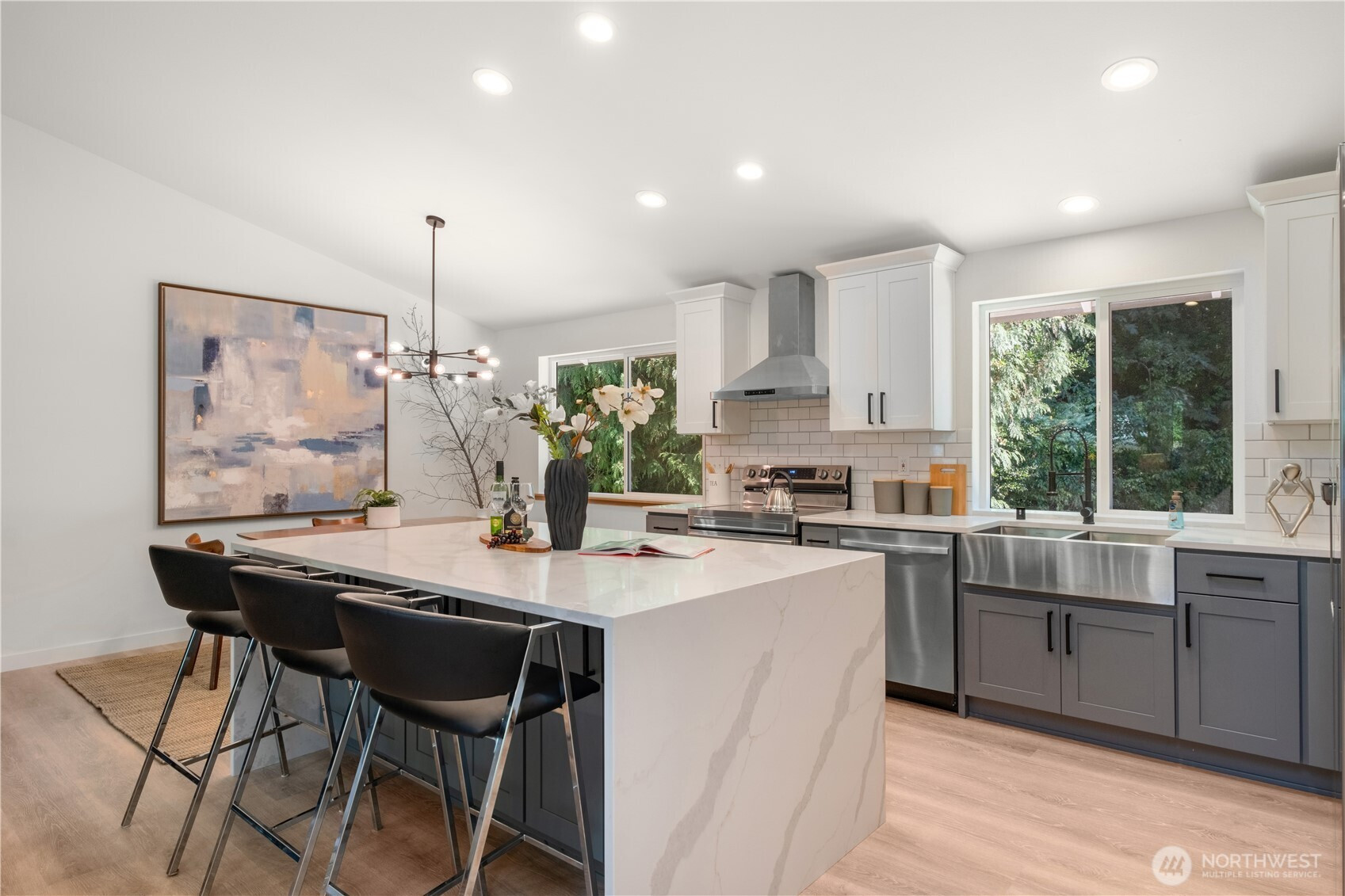 Stunning fully updated tri-level in Martha Lake! This 3BR home features a showpiece kitchen with an oversized quartz waterfall island and premium stainless steel appliances—perfect for entertaining. Stylishly remodeled baths with matching quartz finishes add a touch of luxury throughout. Enjoy bright, open living spaces, new windows, flooring, paint, and garage doors. The lower level includes a spacious rec room, bath, and flexible bonus room. Conveniently located near Mill Creek Town Center, top schools, and commuter routes. A modern home designed for today’s lifestyle.