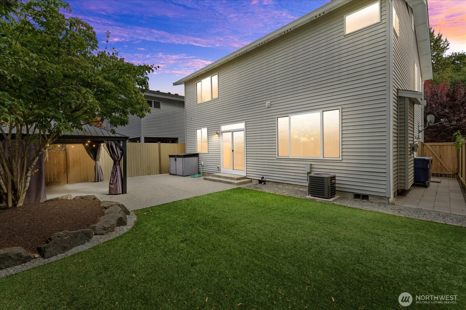 Stunner! Great home with new carpet, paint, added loft area, heat pump, furnace, A/C, hot water and custom turf yard front and back (no mowing!) There is nothing to do, but move in. Don't pay a premium for a new construction when you can have this upgraded home for much less. The home is a 3 bed, 2.5 bath with 2112 sq ft of well laid out living space. Great location on a quiet street, yet minutes to everything. The main bedroom has ample space with large bath and built in California closets in the walk in closet. The backyard is perfectly laid out with concrete patio, build in gazebo and the always green, turf yard. This home is perfect for you!