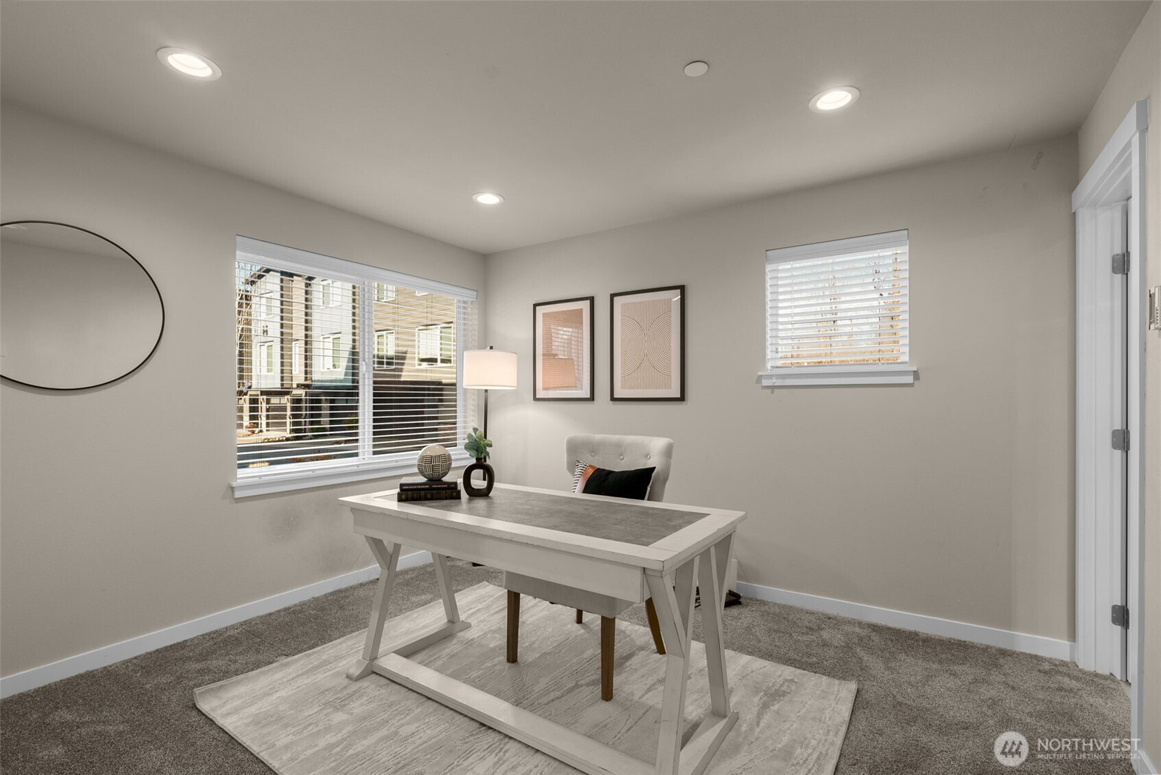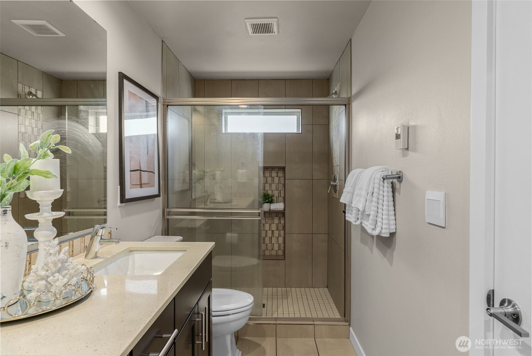 Tucked against a lush greenbelt, this exceptional end-unit townhome offers rare privacy and a serene setting! Thoughtfully designed with both style and function in mind, the open-concept layout flows effortlessly for everyday living and entertaining alike. The chef’s kitchen is a true centerpiece, featuring an oversized quartz island, an extended storage wall, and a full suite of stainless-steel appliances. Gather by the fireplace or step onto the private balcony for a peaceful escape. The versatile floor plan includes three bedrooms plus a bonus room with its own bath, ideal for guests, a home office, or media space. Retreat to the spacious primary suite with a walk-in closet and spa-inspired ensuite, complete with heated floors. Additional highlights include modern lighting throughout, a two-car garage, and ample guest parking. With easy access to freeways, Highway 99, and just minutes from Edmonds’ shops, dining, and local markets, this home delivers comfort, convenience, and a truly special setting!