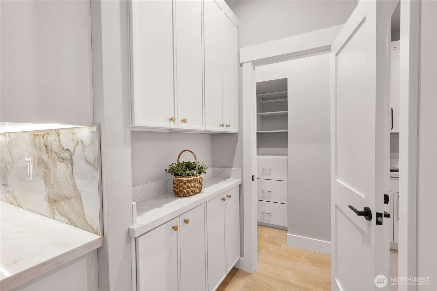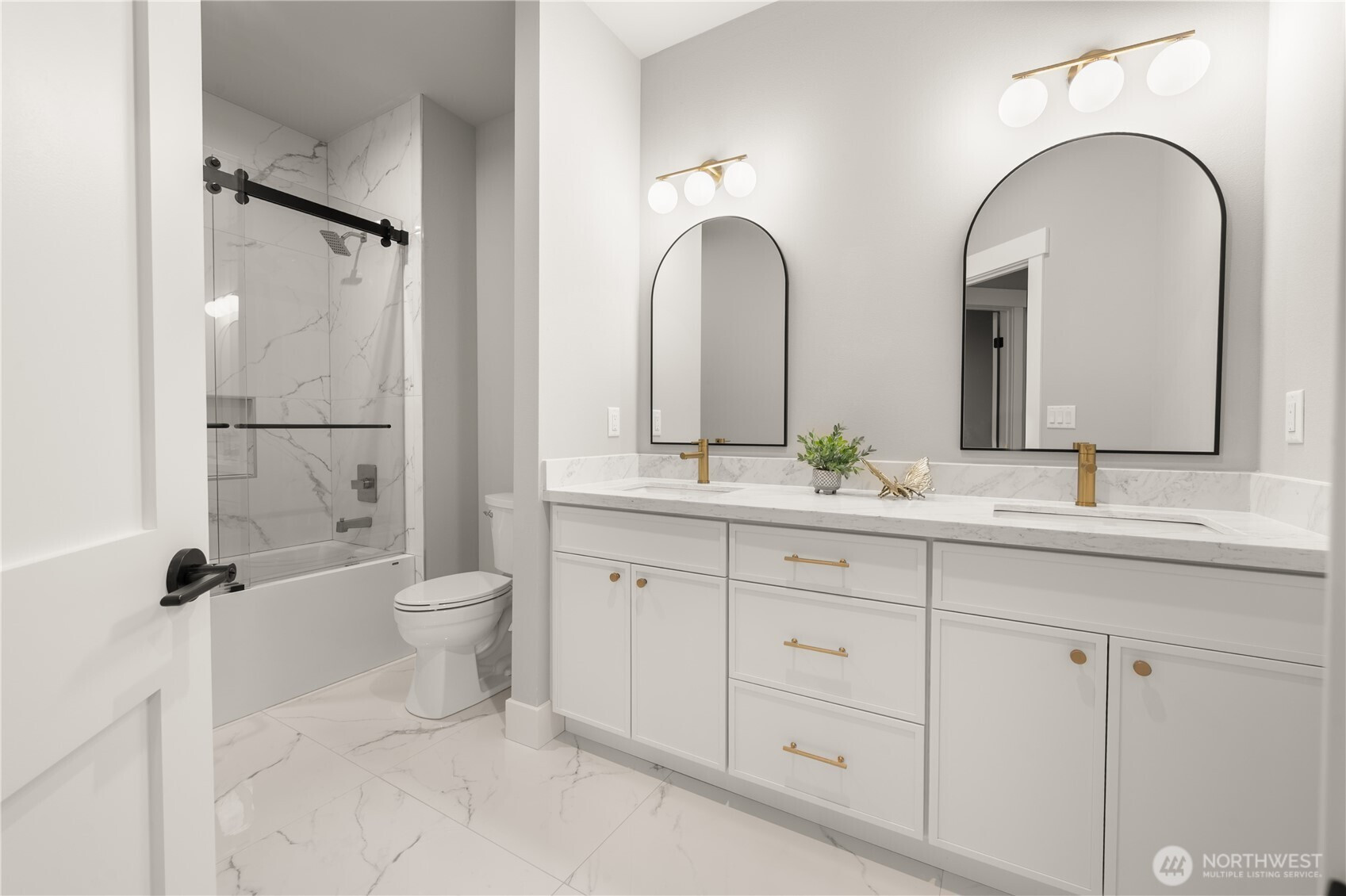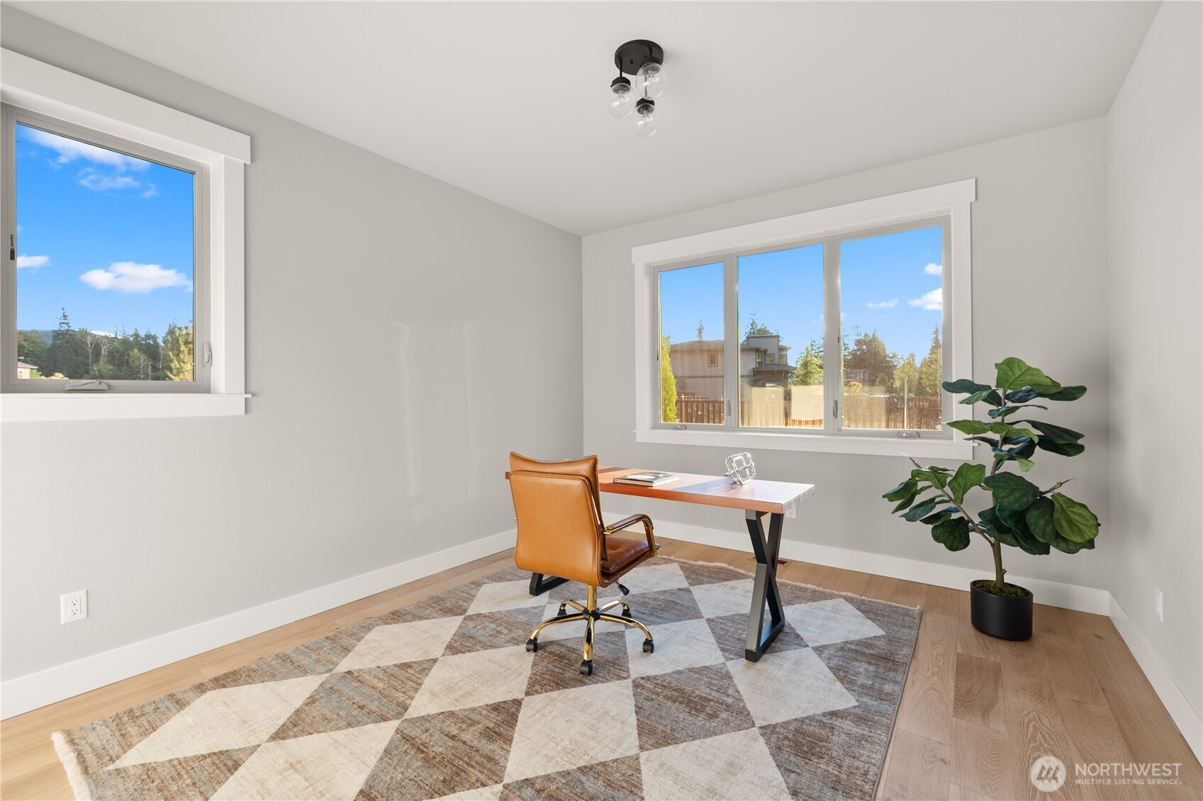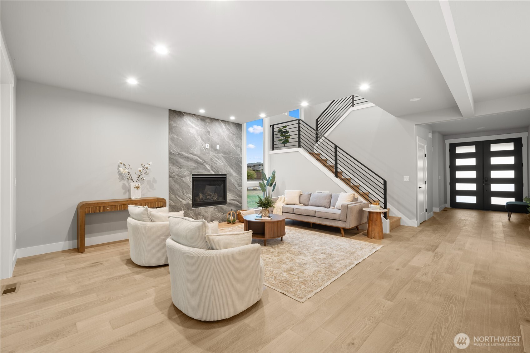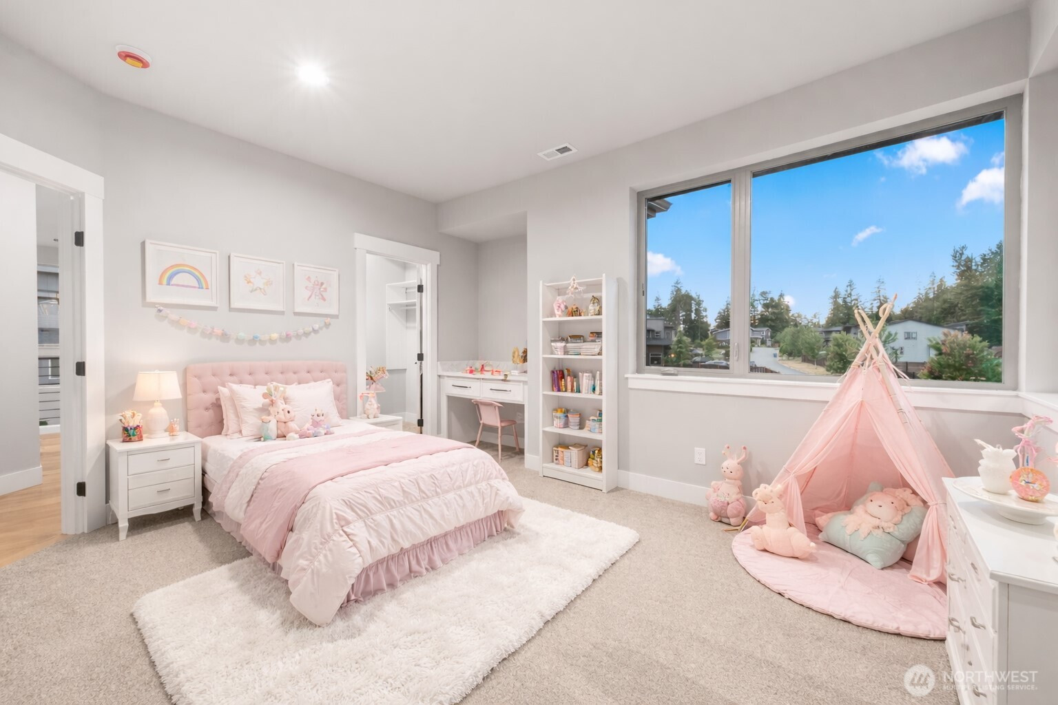 Nestled in private greenery with mountain views,this new build offers a blend of comfort and privacy.Spacious gourmet kitchen features 8-feet island, quartz countertops,elegant accent dining cabinetry with shelving and wine cooler,coffee nook built-in, premium smart appliances, modern lighting and fixtures.The bright great room boasts soaring floor-to-ceiling windows and modern gas fireplace.9 feet ceilings, closet systems and hardwood floors throughout.The luxurious primary suite with huge shower, freestanding tub and spacious walk-in closet.A second HUGE bedroom upstairs boasts office space.3rd bedroom includes walk-in closet and built-in make up table.Enjoy covered deck.Huge leveled lot with so much potential.
