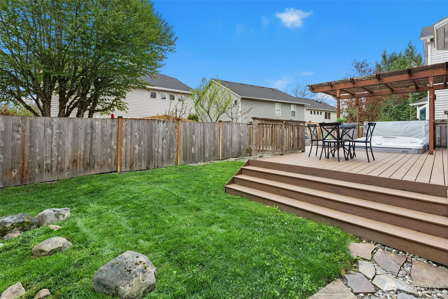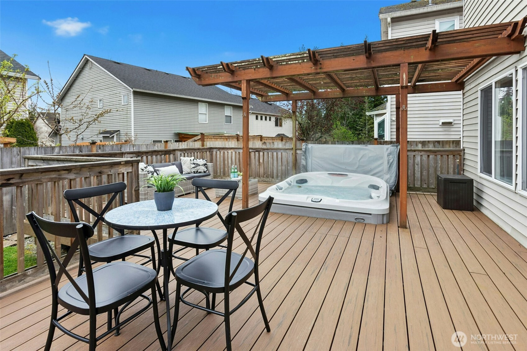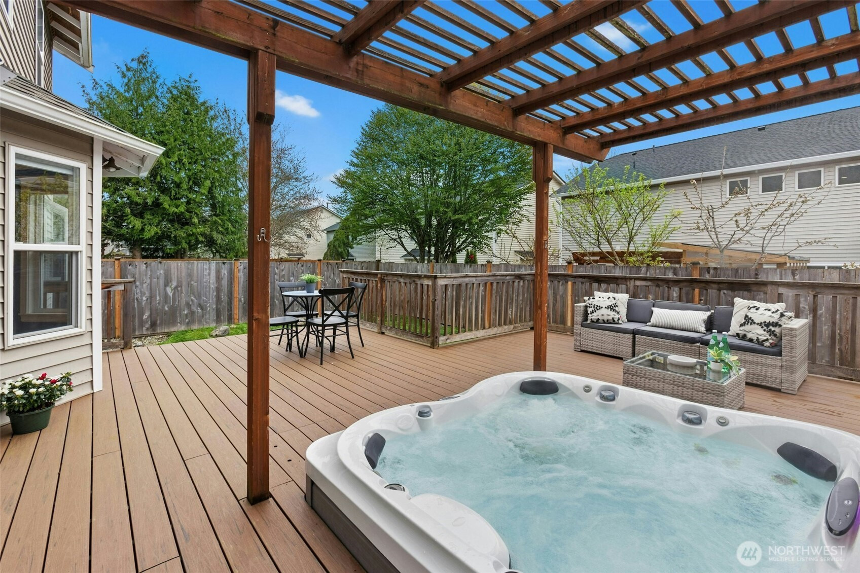 Feel the weight lift off your shoulders as you come home to a sky-high vaulted ceiling and your built-in 6 person Jacuzzi hot tub. The kitchen features stainless steel appliances, granite counters, dedicated pantry, and a charming garden window. This floorplan flows seamlessly from the intimate conversation space to the open concept kitchen and living room offering flexibility & space with custom trim and crown molding throughout. Direct access from the kitchen to the spacious Trex deck, this sun drenched, fully fenced backyard makes it easy to BBQ or to entertain guests. Space for all with 4 bedrooms upstairs, including the primary bedroom featuring a walk-in closet and 5-piece en-suite bathroom. This well-maintained move-in ready home includes a brand-new hot water heater, recently serviced furnace and fireplace, all the appliances and even fresh new smoke detectors. Enjoy the Mill Creek convenience of shopping and restaurants, nearby YMCA, neighborhood parks, and miles of scenic trails. This isn’t just a house, it’s where your best days happen.