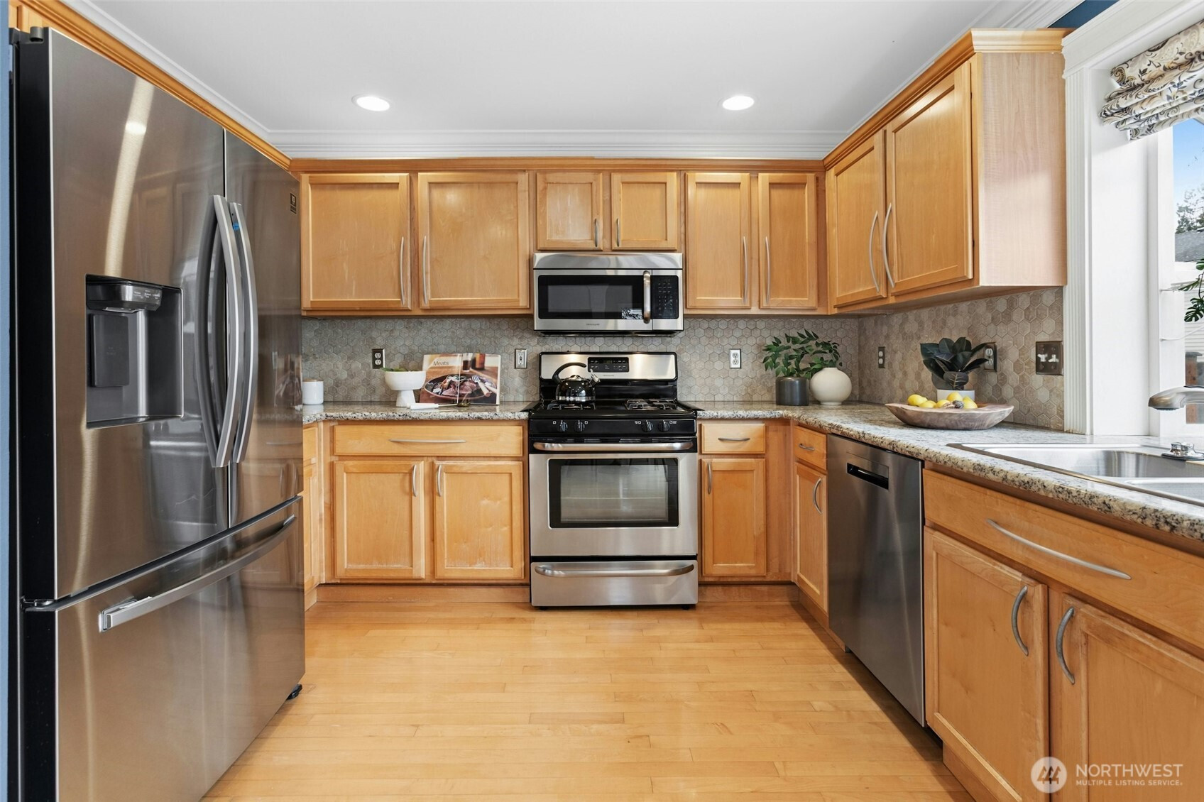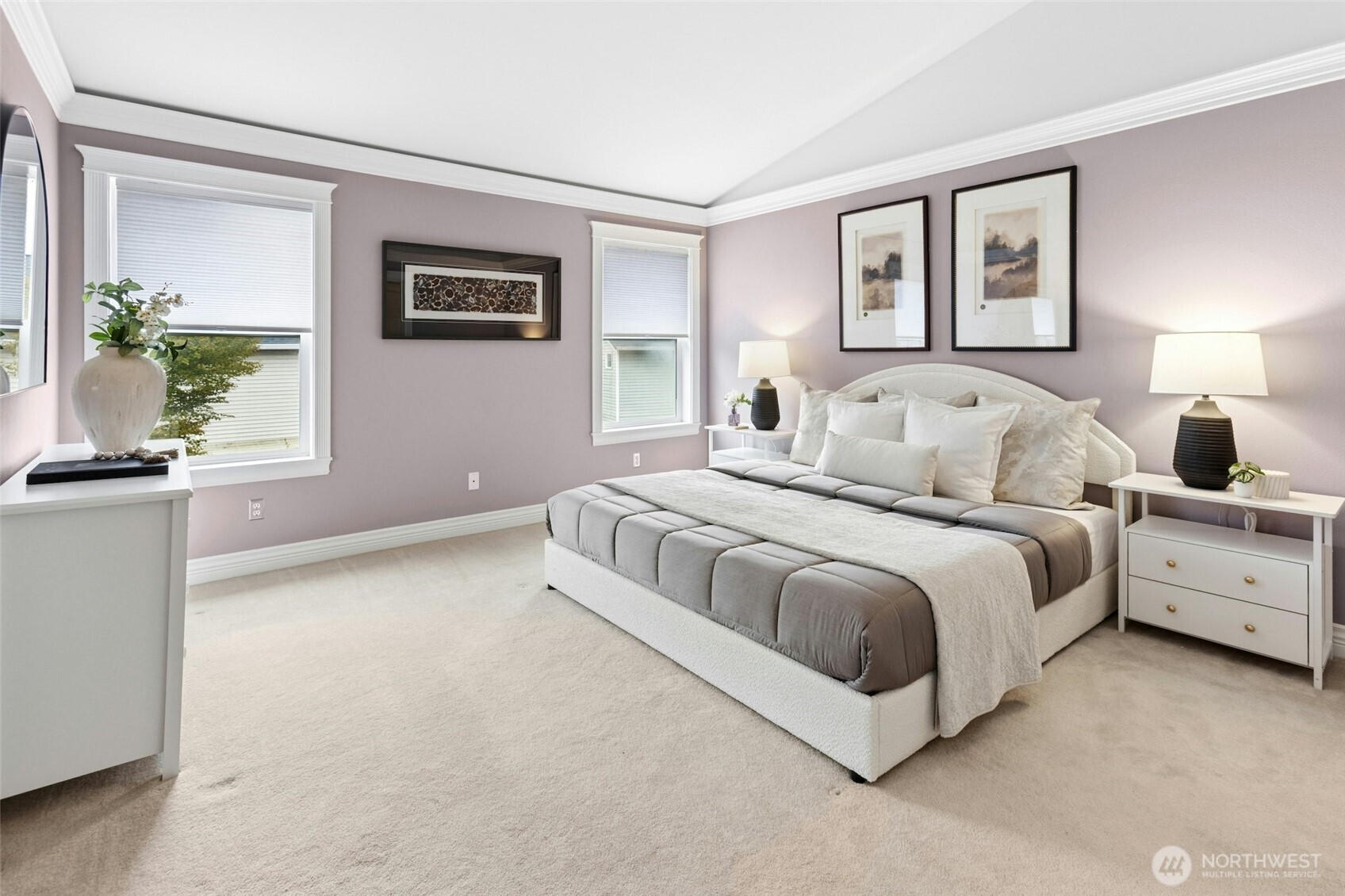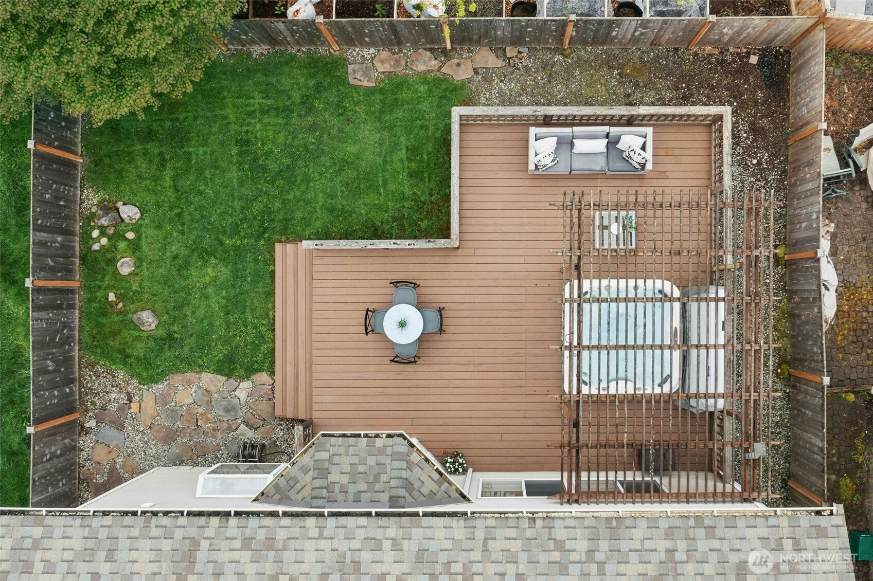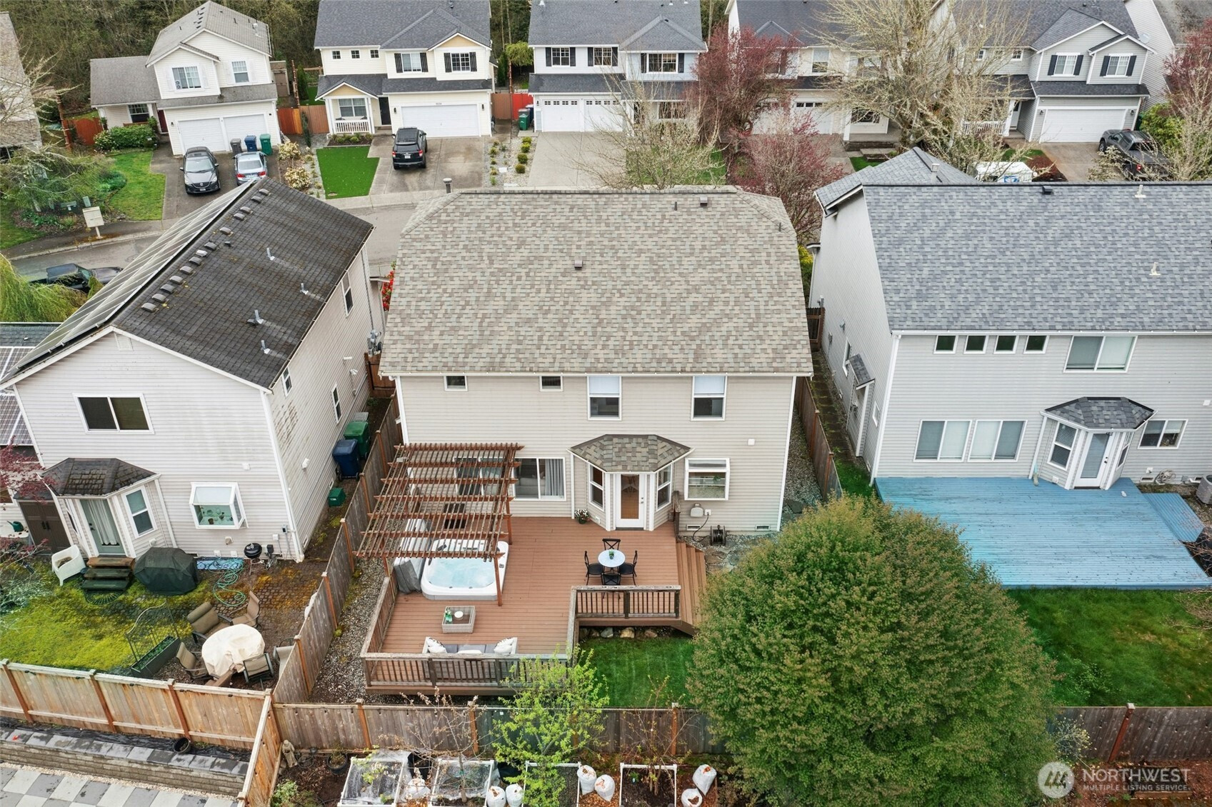 Feel the weight lift off your shoulders as you come home to a sky-high vaulted ceiling and your built-in 6 person Jacuzzi hot tub. The kitchen features stainless steel appliances, granite counters, dedicated pantry, and a charming garden window. This floorplan flows seamlessly from the intimate conversation space to the open concept kitchen and living room offering flexibility & space with custom trim and crown molding throughout. Direct access from the kitchen to the spacious Trex deck, this sun drenched, fully fenced backyard makes it easy to BBQ or to entertain guests. Space for all with 4 bedrooms upstairs, including the primary bedroom featuring a walk-in closet and 5-piece en-suite bathroom. This well-maintained move-in ready home includes a brand-new hot water heater, recently serviced furnace and fireplace, all the appliances and even fresh new smoke detectors. Enjoy the Mill Creek convenience of shopping and restaurants, nearby YMCA, neighborhood parks, and miles of scenic trails. This isn’t just a house, it’s where your best days happen.