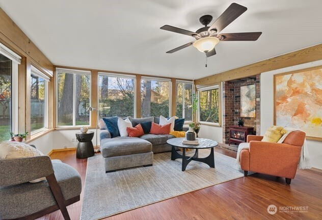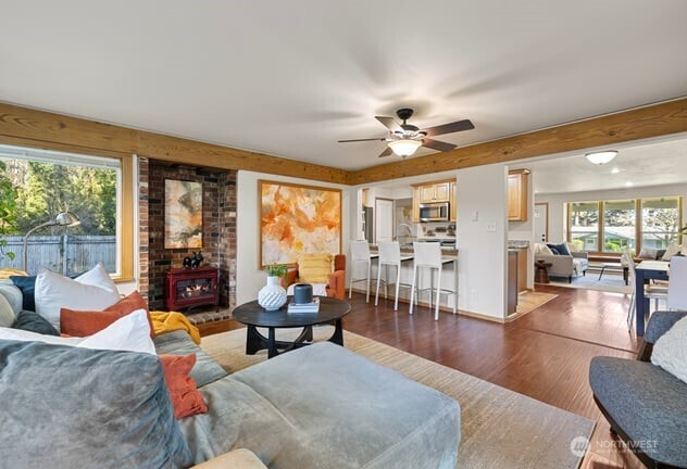 Beautifully updated 3-bedroom, 2-bath rambler nestled in one of Edmonds’ most beloved neighborhoods, just moments from the trails and shoreline of Meadowdale Beach Park. Easy one-floor living with thoughtful upgrades throughout. The heart of the home is a stunning remodeled kitchen featuring modern cabinetry, updated countertops, and stainless appliances — seamlessly flowing into a light-filled extended living room bathed in natural light, perfect for everyday relaxing and entertaining alike. Skylights in the spacious primary suite create a serene, airy retreat, complemented by a beautifully appointed ensuite bath. A second fully updated bathroom serves guests with equal style. Step outside to your own private sanctuary — a large fully fenced yard with a patio ideal for outdoor dining and entertaining, warm hot tub, level yard allowing for garden beds ready for your green thumb, and established fruit trees including apple, pear, and plum that reward you season after season. Then venture beyond the gate to Meadowdale Beach Park’s forested trails, picnic areas, and Puget Sound beach access just moments away. All this, with the convenience of single-level living and move-in ready finishes throughout. New Heat Pump and AC lower your utility costs and keep home cozy in every season. Close to shopping, freeways & lightrail. Welcome home!