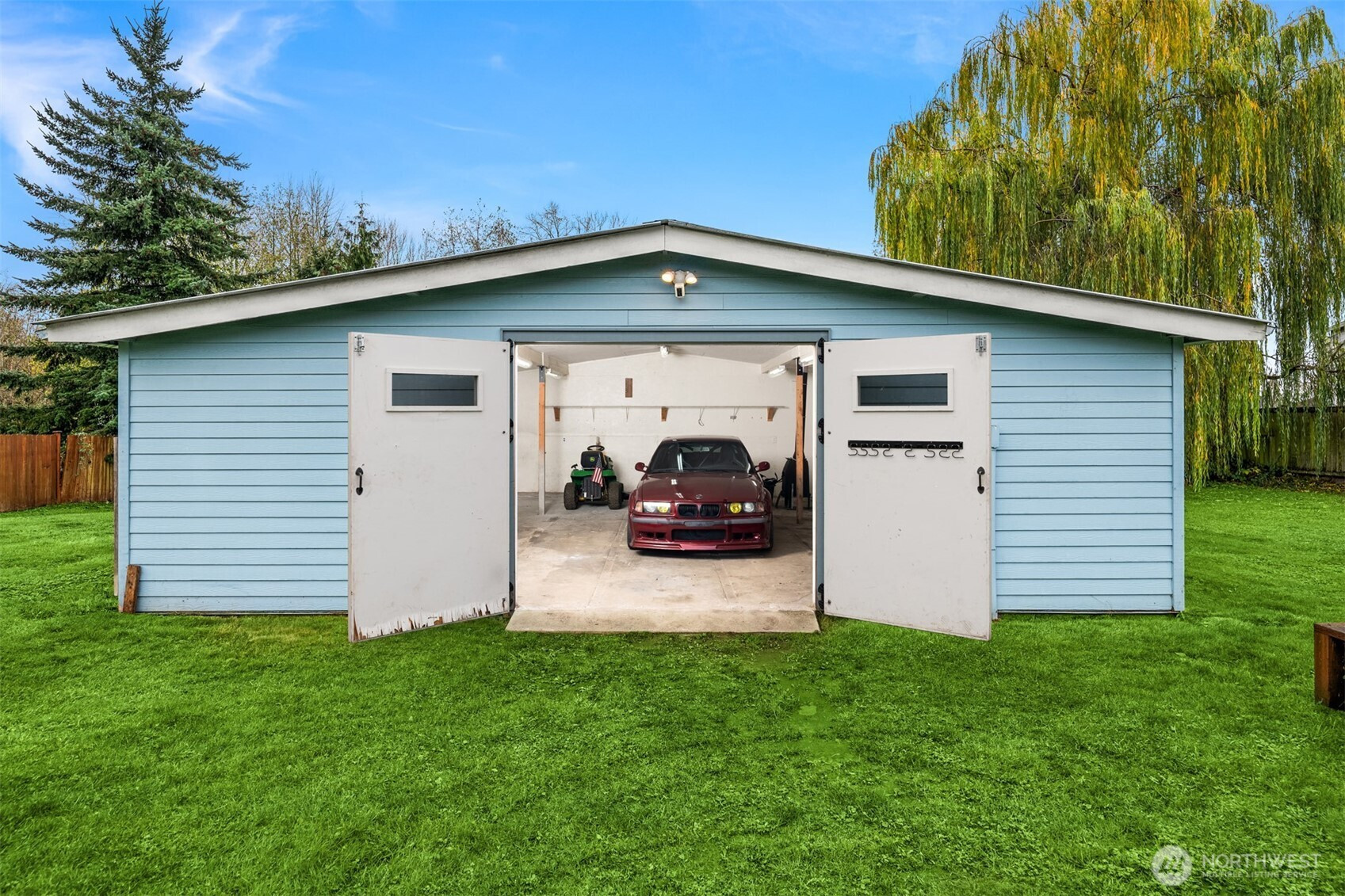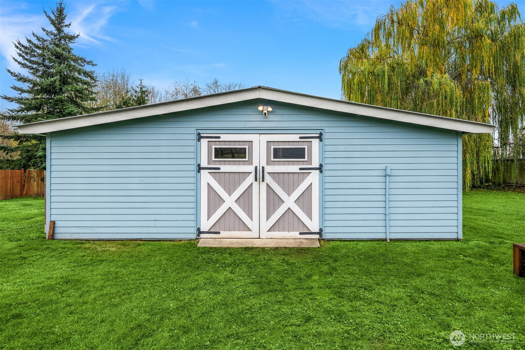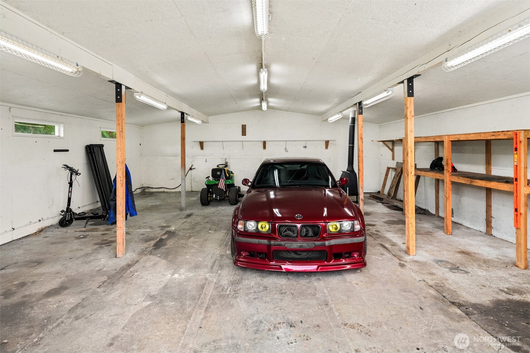 Welcoming rambler with large shop and detached 1 car garage situated on over half an acre in the Cavelero area of Lake Stevens. 1,323 square foot, 3 bed, 1 bath home has updated plumbing, wiring, flooring, windows, foundation, custom concrete countertops, new refrigerator, & water heater. The bathroom was remodeled last year with modern soaking tub and walk-in shower. Huge fully fenced property with gated entrance and opportunities for hobbies or investing in potential development per the current zoning. City of Lake Stevens has this property zoned as R6. Sewer and gas are in the street. Dedicated 220 to the shop. The attic is reinforced and finished for storage. Commuter-friendly location, and close to all that Lake Stevens has to offer.