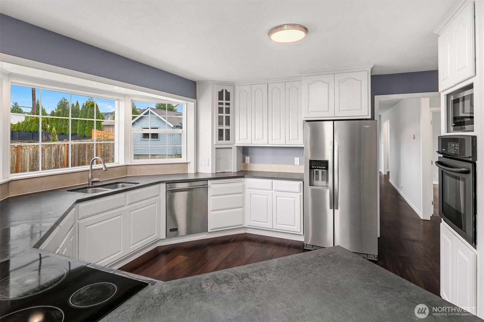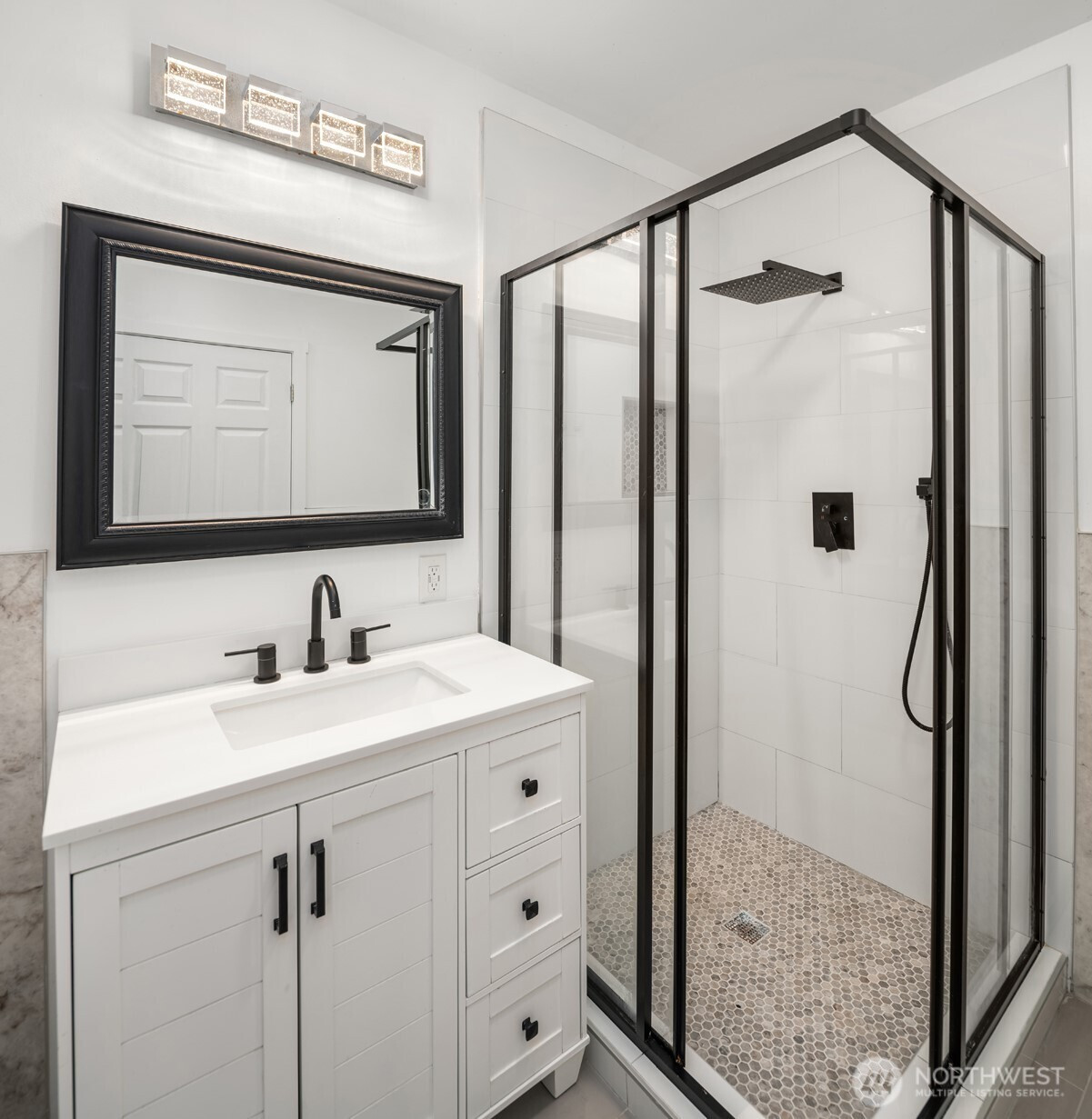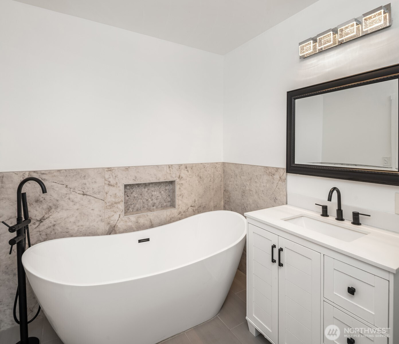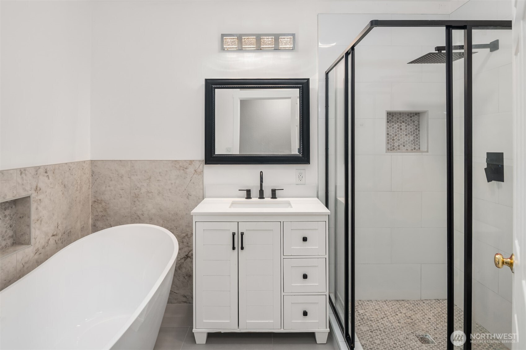Welcoming rambler with large shop and detached 1 car garage situated on over half an acre in the Cavelero area of Lake Stevens. 1,323 square foot, 3 bed, 1 bath home has updated plumbing, wiring, flooring, windows, foundation, custom concrete countertops, new refrigerator, & water heater. The bathroom was remodeled last year with modern soaking tub and walk-in shower. Huge fully fenced property with gated entrance and opportunities for hobbies or investing in potential development per the current zoning. City of Lake Stevens has this property zoned as R6. Sewer and gas are in the street. Dedicated 220 to the shop. The attic is reinforced and finished for storage. Commuter-friendly location, and close to all that Lake Stevens has to offer.