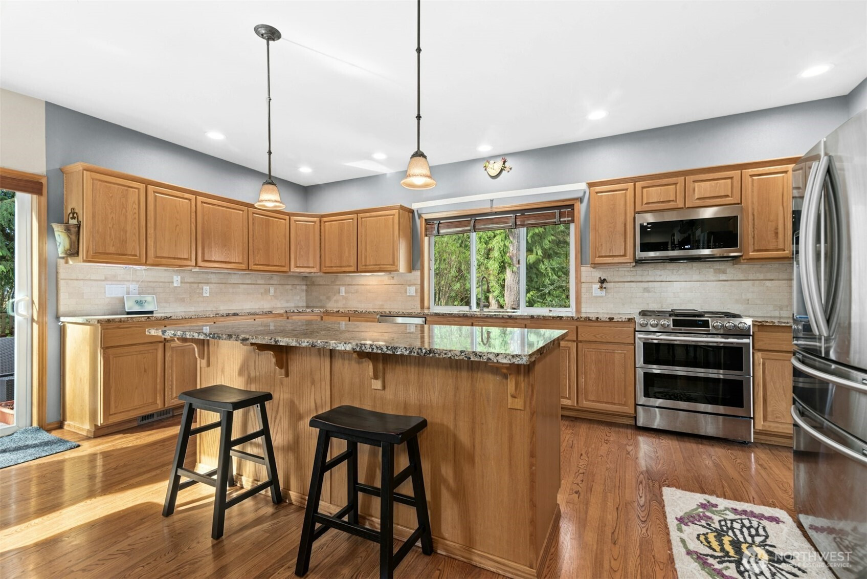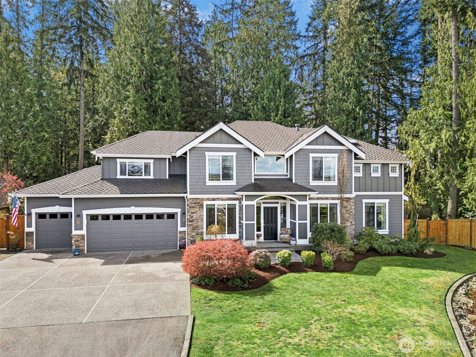 Set on a shy acre, this impeccably maintained home strikes the perfect balance of space, privacy & PNW charm. Framed by mature evergreens & thoughtfully designed landscaping, the setting feels serene and secluded—yet remains just minutes from town. The kitchen flows seamlessly into the family room, forming the true heart of the home—ideal for gathering with friends or enjoying a quiet night by the fire. Features include a large island perfect for casual seating, double ovens, a pantry and abundant cabinetry for exceptional storage. The main level also offers an office behind French doors, the formal living and dining rooms have lovely, coffered ceilings- ready for Holiday's or everyday! . Upstairs, spacious bedrooms provide flexibility for a variety of lifestyles, while the primary suite offers a peaceful retreat overlooking the backyard. The spa-inspired ensuite features 2 walk-in closets, dual vanities & a soaking tub, perfect for unwinding at the end of the day. A generously sized bonus room adds even more versatility, whether for work, play, or fitness. Outdoors, the expansive yard, patio, and gazebo invite you to garden, entertain, or simply relax and take in the natural surroundings.Combining acreage, privacy, and convenient access to Monroe’s shops, dining, and commuter routes, this property delivers a lifestyle that’s increasingly hard to find. Also, the attached three-car garage provides plentiful shelving and a loft for your seasonal goods. All this and much more!