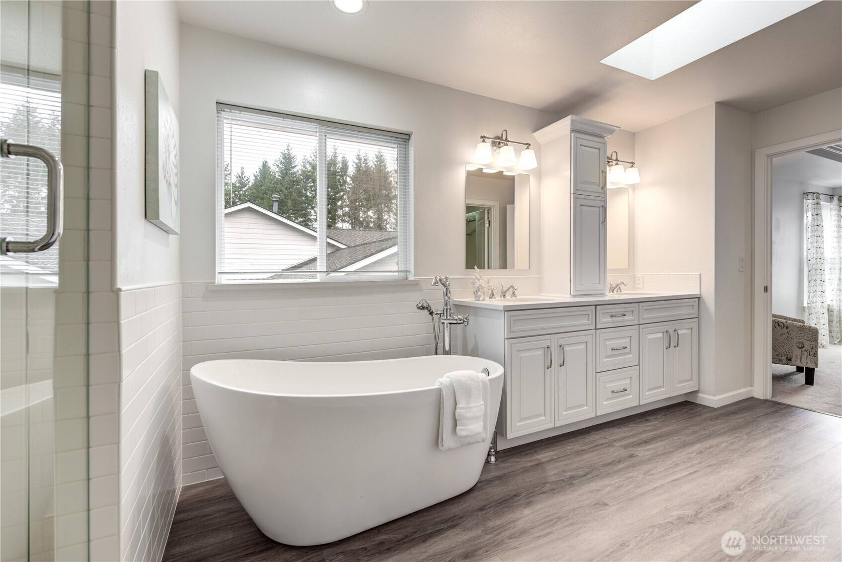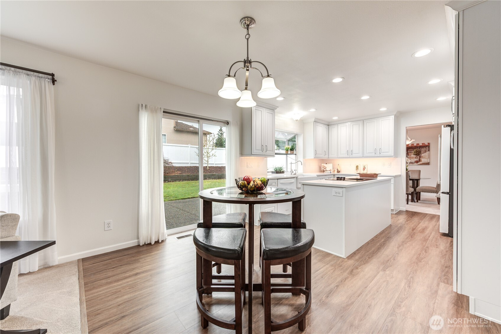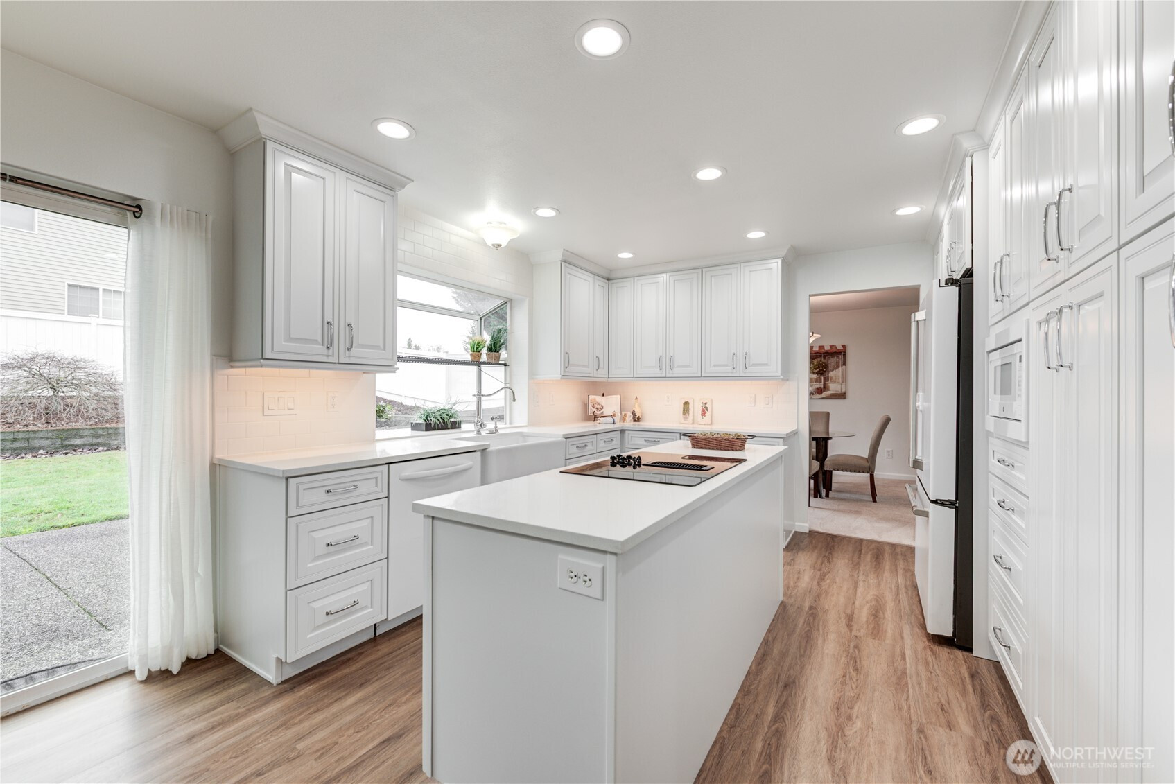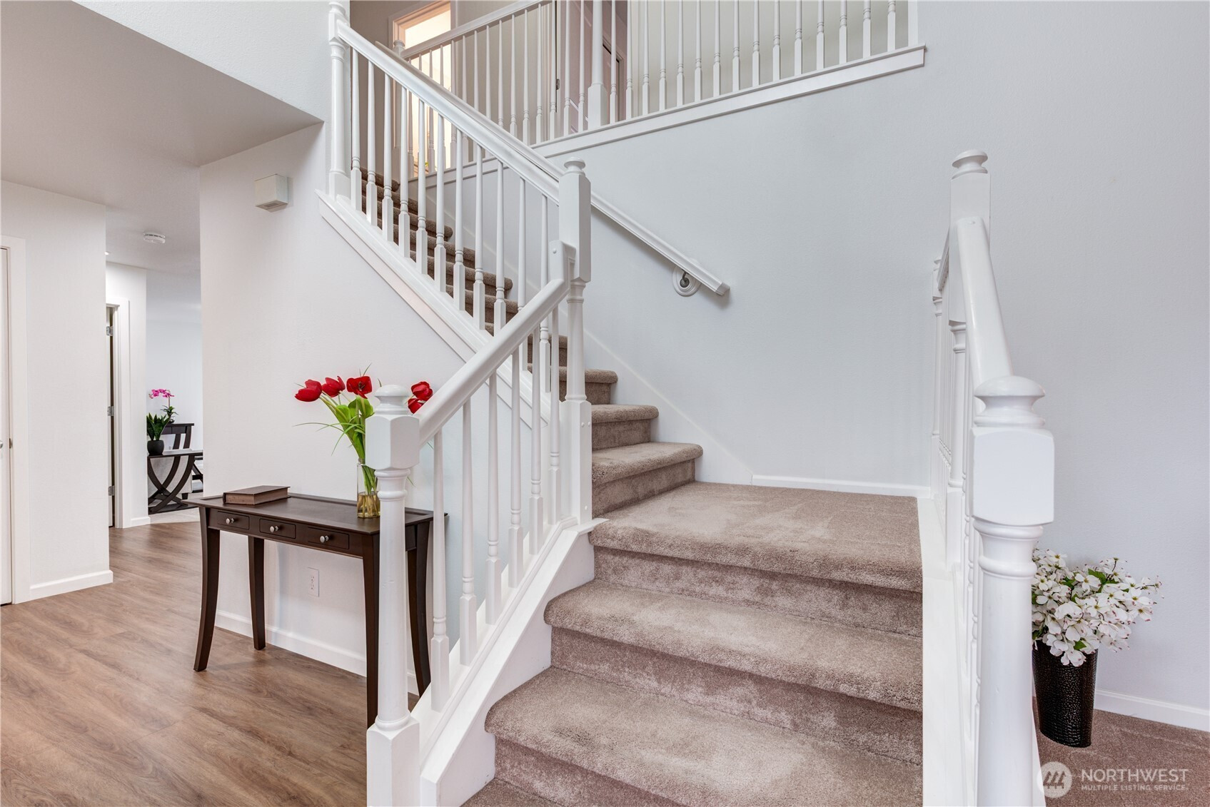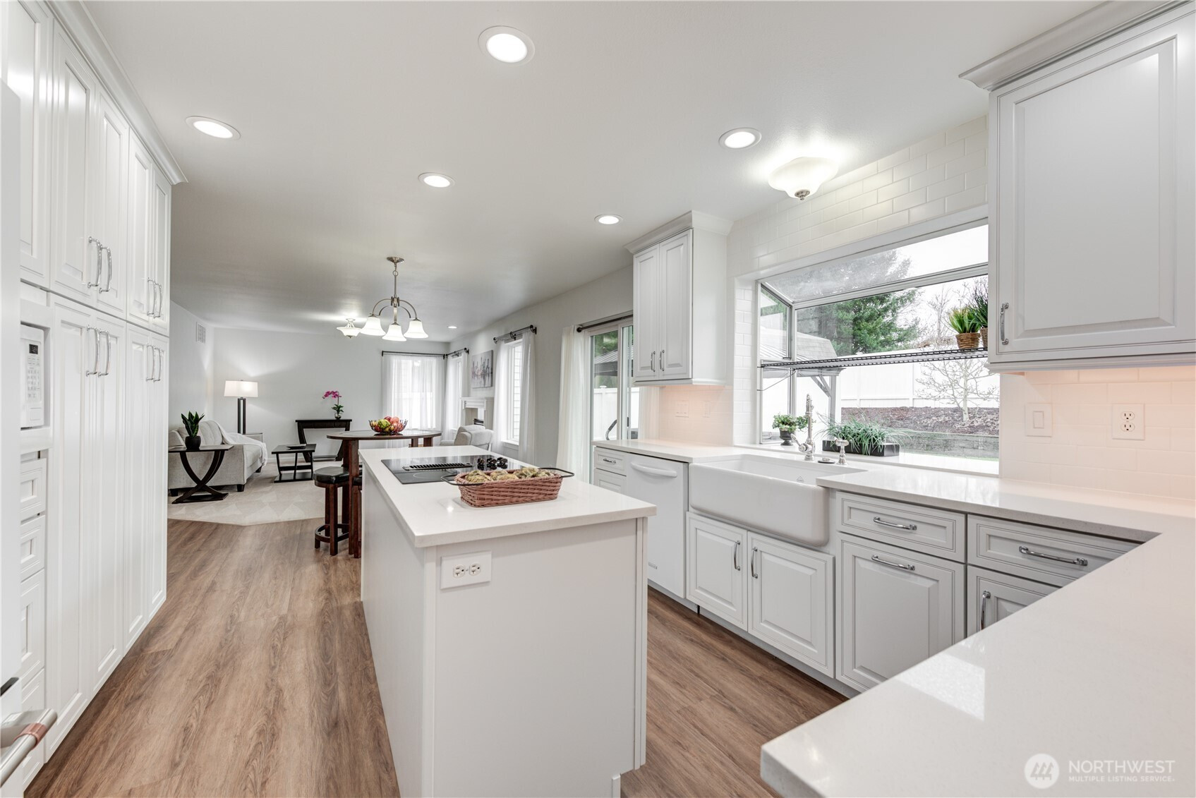 Wonderfully Updated Silver Firs home on a Large Corner Lot. RV parking! 2350 sq ft of living space. 4 bedrooms & 2.5 bathrooms. Open-rail staircase helps keep the home light and airy. Living room and entry with vaulted ceiling. Formal dining room just off the kitchen. Gorgeous remodel on the Chef’s kitchen with updated clean white cabinets, pull out shelving, soft close drawers, GE appliances, double ovens, center island with brand new GE cooktop, quartz counters, undermount lighting, garden window & full backsplash. Family room w/updated gas fireplace & surround. Primary suite w/coffered ceiling, walk-in closet & gorgeous 5-piece bath fully update. All bathrooms have been updated with new cabinets, quartz & LVP flooring. Front door & interior doors have been upgraded. Large yard with new fencing, patio, terraced planting beds & large garden shed. AC & furnace replaced in 2019. 40 yr roof in 2016. Whole house plumbing updated with new Pex piping. Community parks, walking trails, sport & tennis courts. Close to YMCA & Willis Tucker County Park. Great schools!