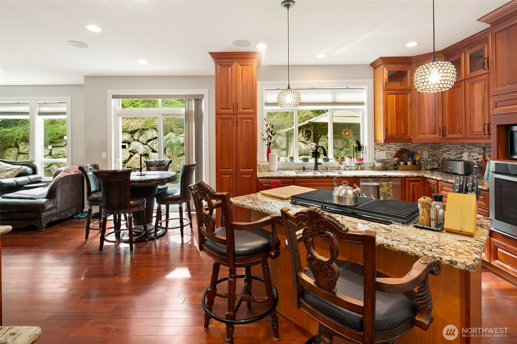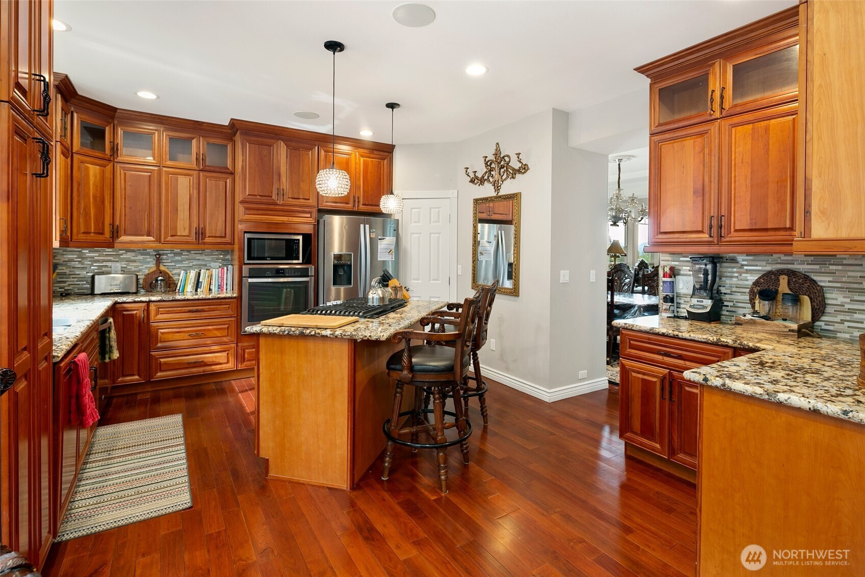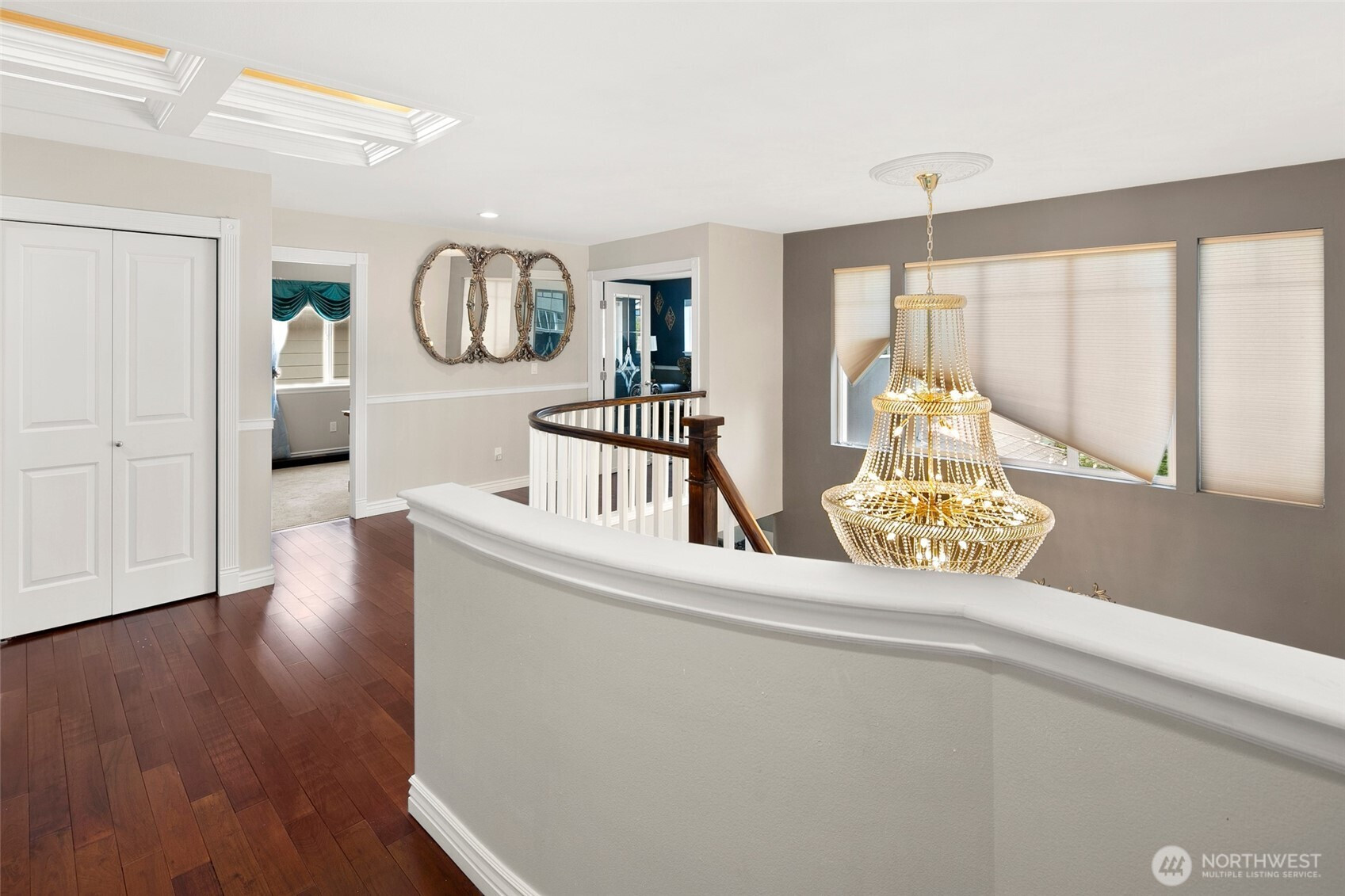 Immaculate 5BR, 3.25BA home in desirable Willow Creek at Cathcart! Updated with fresh landscaping, and a beautiful chandelier—included. Main floor BR with ¾ bath is perfect for guests. Enter through a grand curved staircase and gleaming hardwoods. Spacious kitchen features a curved island, stainless appliances, built-in desk, pantry, and views of the private yard. Den/office upstairs with mountain views. Primary suite offers a sitting room, private deck, 5-piece bath, soaking tub, tile shower, and huge walk-in closet.