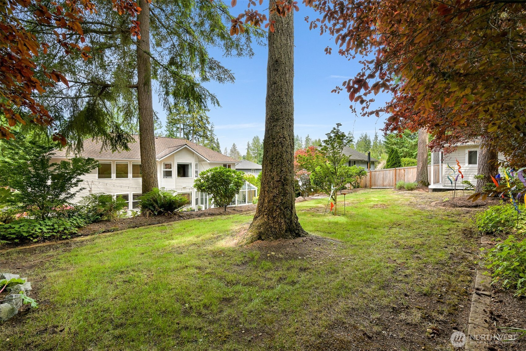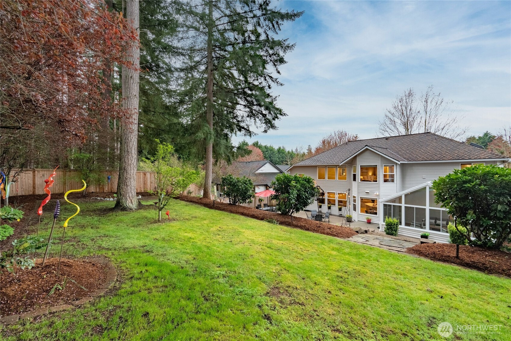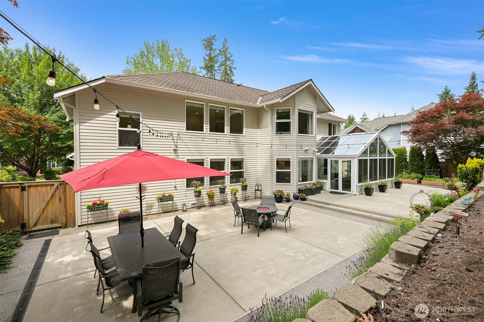 Impeccably maintained and effortlessly elegant, this exceptional 5-bedroom, 2.75 bath home offers a rare dual primary suite design, including a main floor retreat ideal for multi-generational living or hosting in comfort. A beautifully remodeled kitchen serves as the heart of the home, showcasing stunning custom cabinetry, refined finishes, and generous storage, all complemented by soaring vaulted ceilings filled with natural light. A bonus 300 sq ft sunroom extends the living space, artfully blending indoor and outdoor comfort making it an ideal setting for relaxing, enjoying the surrounding scenery, or cultivating a thriving collection of plants year-round. Fresh interior and exterior paint enhance the home’s pristine, move-in-ready condition. Set on a private lot, the property features a 3-car garage with sleek epoxy floors and exceptional storage throughout. Located just a six-minute walk to Mill Creek Town Center, nearby nature preserve, and scenic trails, the home also enjoys access to the renowned Mill Creek Community Association amenities which include over 160 acres of resident-only open space, more than 16 miles of trails, 21 parks, 12 playgrounds, and a serene 120 acre private nature preserve. Moments from Mill Creek Country Club and conveniently located, this home offers an exceptional blend of luxury, community, and walkable lifestyle in one of the area’s most desirable settings.
