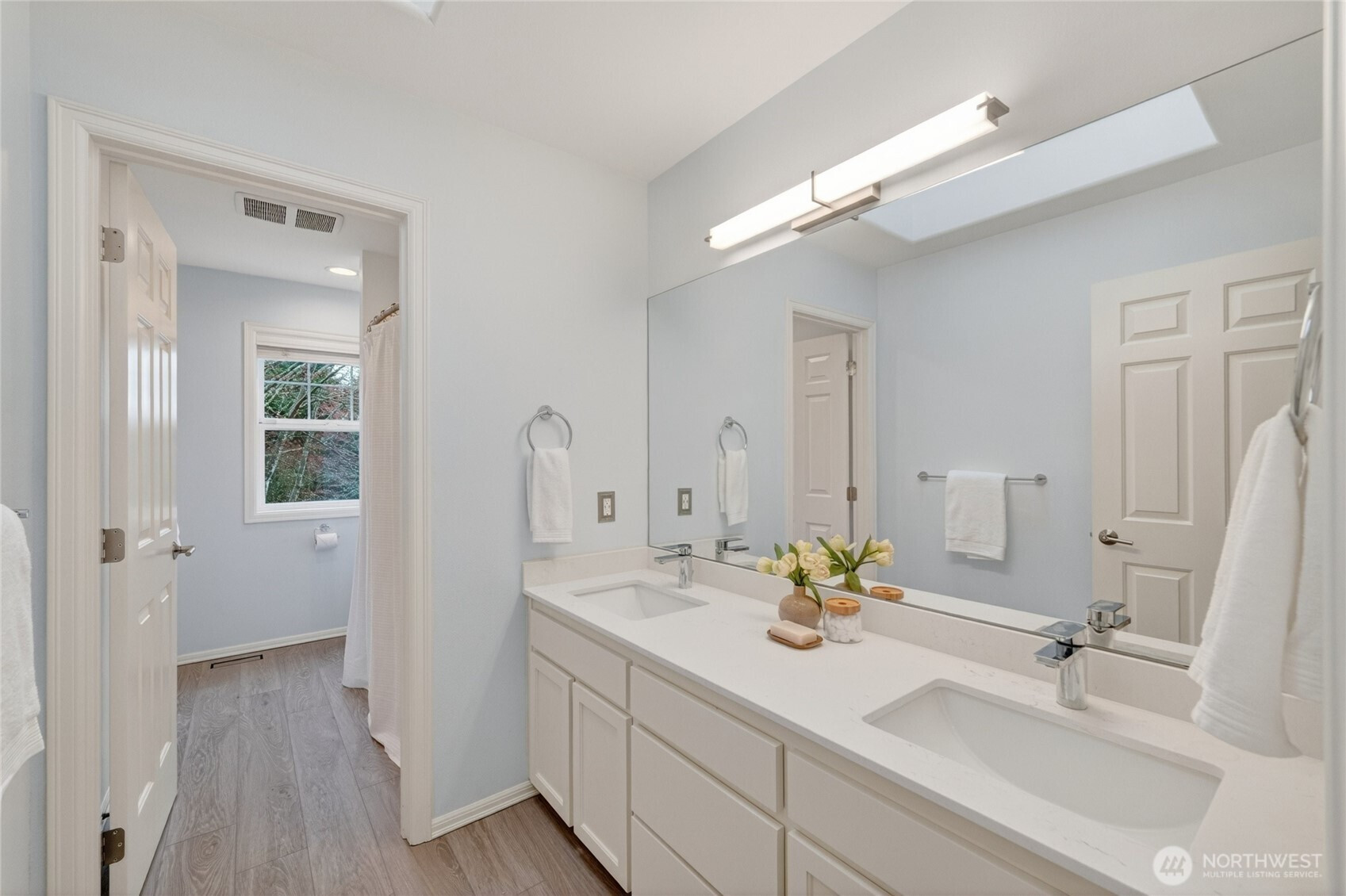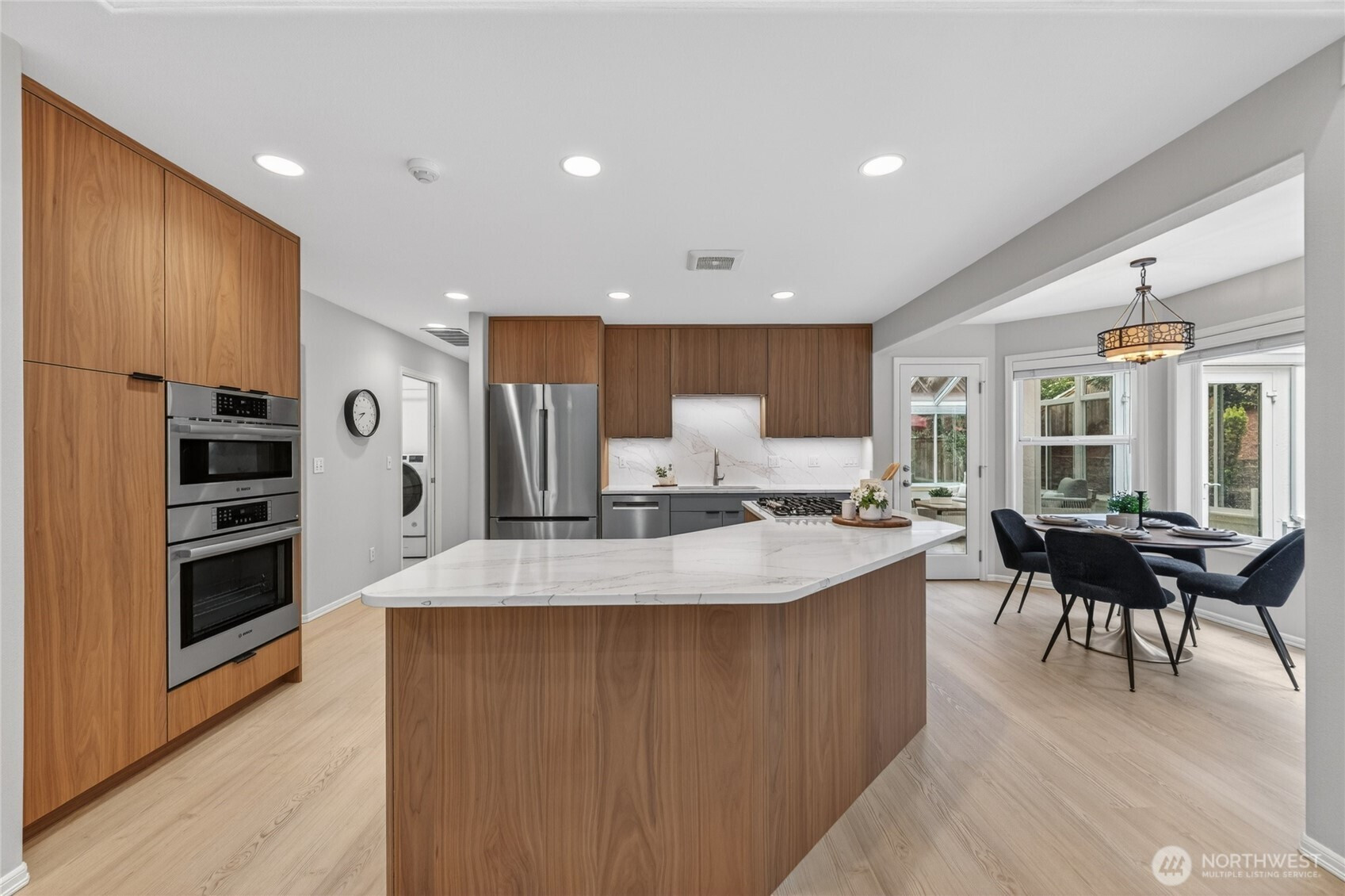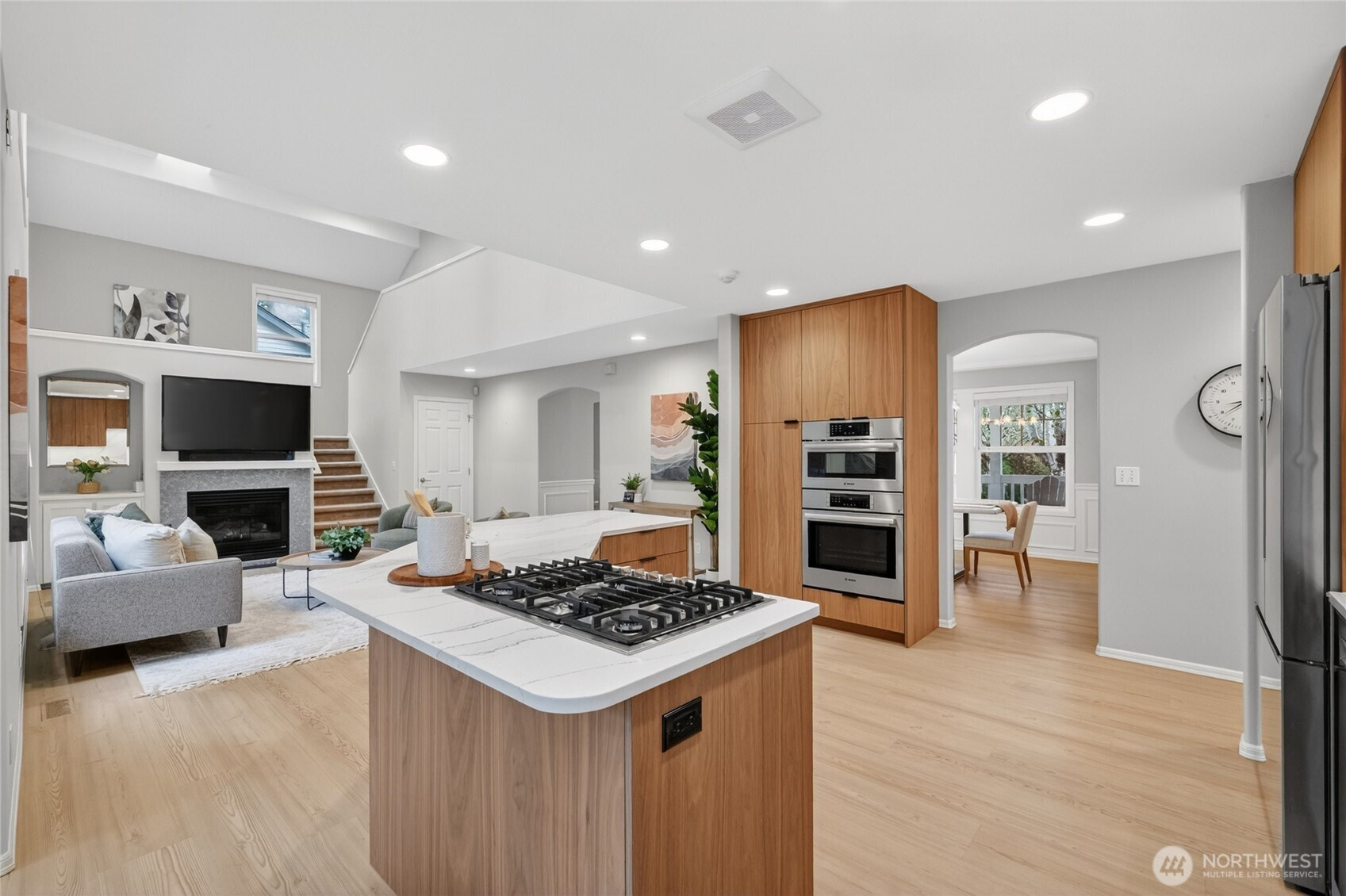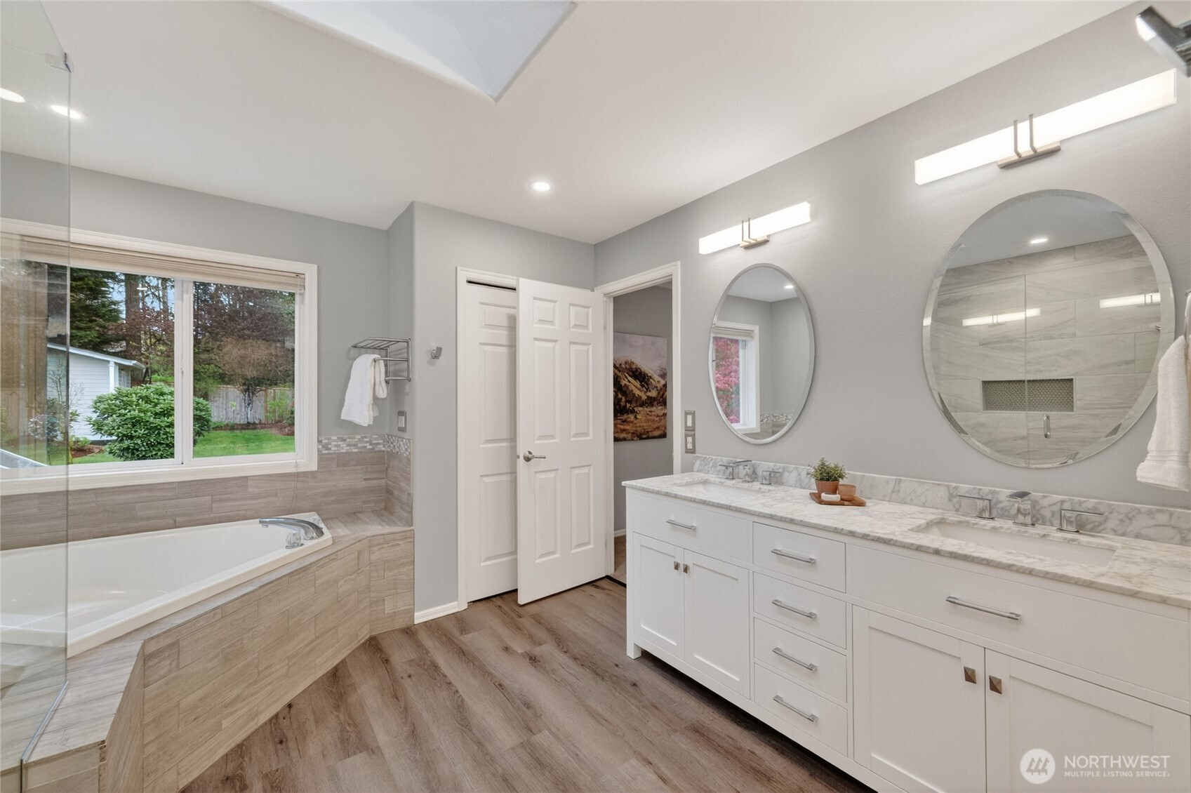 Impeccably maintained and effortlessly elegant, this exceptional 5-bedroom, 2.75 bath home offers a rare dual primary suite design, including a main floor retreat ideal for multi-generational living or hosting in comfort. A beautifully remodeled kitchen serves as the heart of the home, showcasing stunning custom cabinetry, refined finishes, and generous storage, all complemented by soaring vaulted ceilings filled with natural light. A bonus 300 sq ft sunroom extends the living space, artfully blending indoor and outdoor comfort making it an ideal setting for relaxing, enjoying the surrounding scenery, or cultivating a thriving collection of plants year-round. Fresh interior and exterior paint enhance the home’s pristine, move-in-ready condition. Set on a private lot, the property features a 3-car garage with sleek epoxy floors and exceptional storage throughout. Located just a six-minute walk to Mill Creek Town Center, nearby nature preserve, and scenic trails, the home also enjoys access to the renowned Mill Creek Community Association amenities which include over 160 acres of resident-only open space, more than 16 miles of trails, 21 parks, 12 playgrounds, and a serene 120 acre private nature preserve. Moments from Mill Creek Country Club and conveniently located, this home offers an exceptional blend of luxury, community, and walkable lifestyle in one of the area’s most desirable settings.