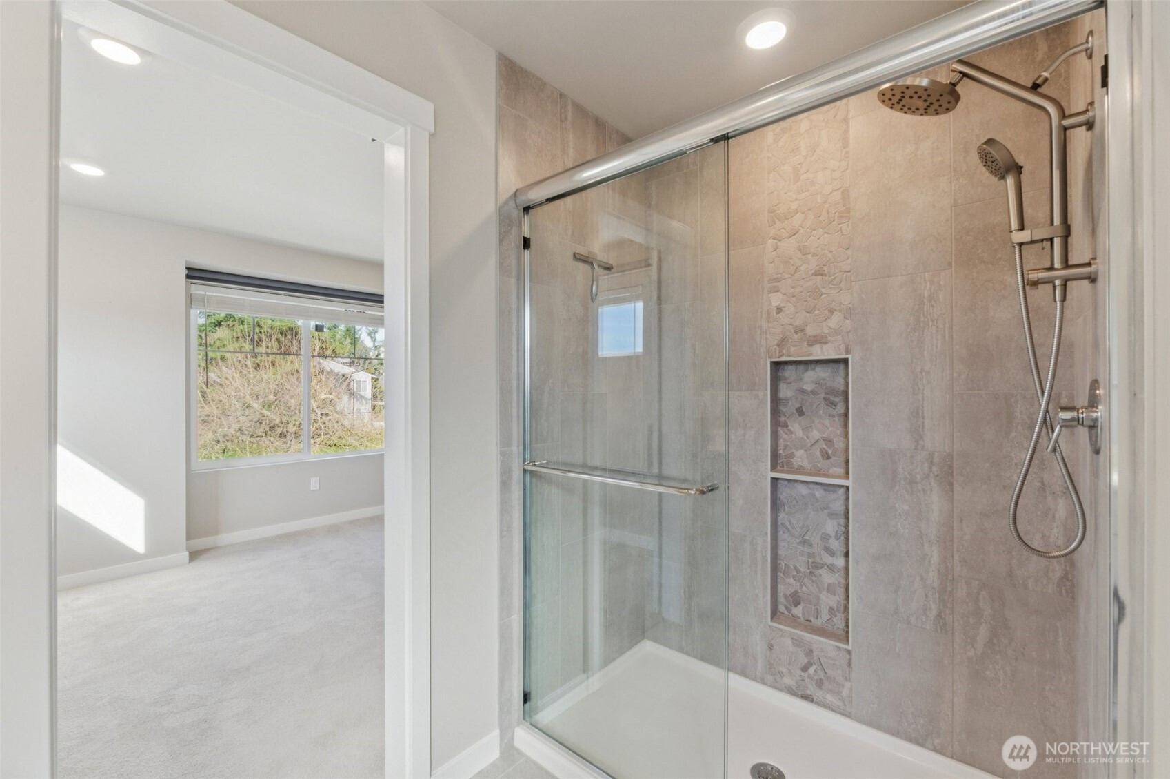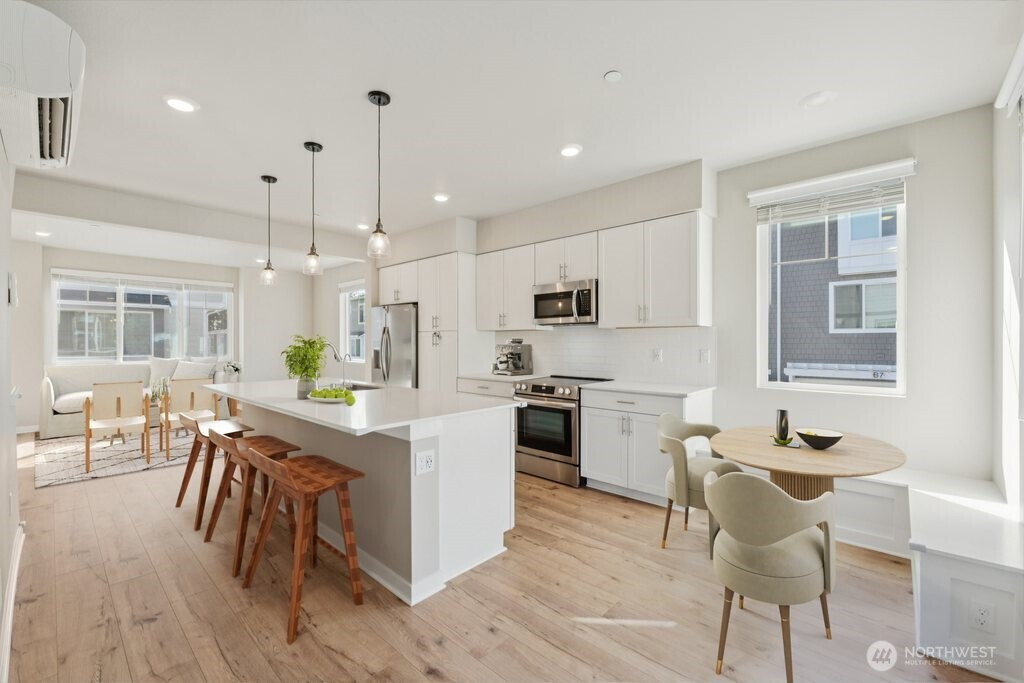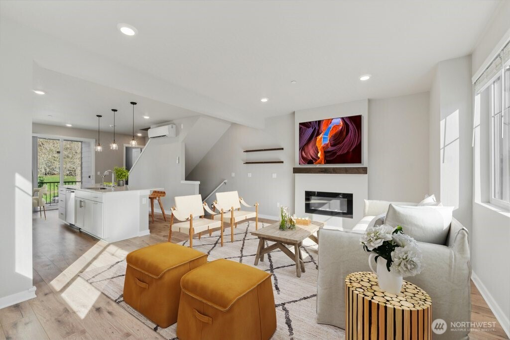 Welcome to this like-new 4 bedroom home on a bright and spacious corner lot! Built in 2024, the home features all the modern amenities you want - maple cabinets with bright quartz countertops, durable and stylish LVP flooring, air-conditioning, electric fireplace, smart hub, large 2-car EV ready garage, and even a big, heated balcony overlooking cherry blossoms! The owners took great care of the home and added custom blinds and black-out shades, a luxurious primary shower system, and contemporary cabinets in the bathrooms. With loads of storage, nearly-new appliances and a healthy HOA, this is a truly turnkey property located near I-5, light rail and shopping. The home even features three bedrooms including primary on the top level as well as a 4th bedroom and bathroom on the lower level for flexible living, office space, multi-generational housing, or even income potential. Priced to sell!