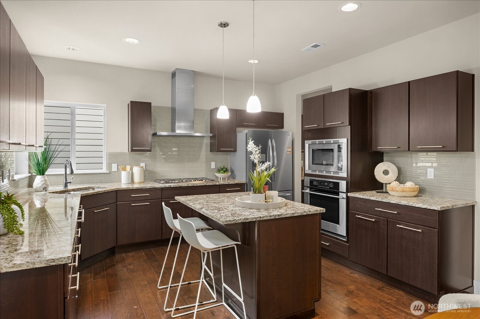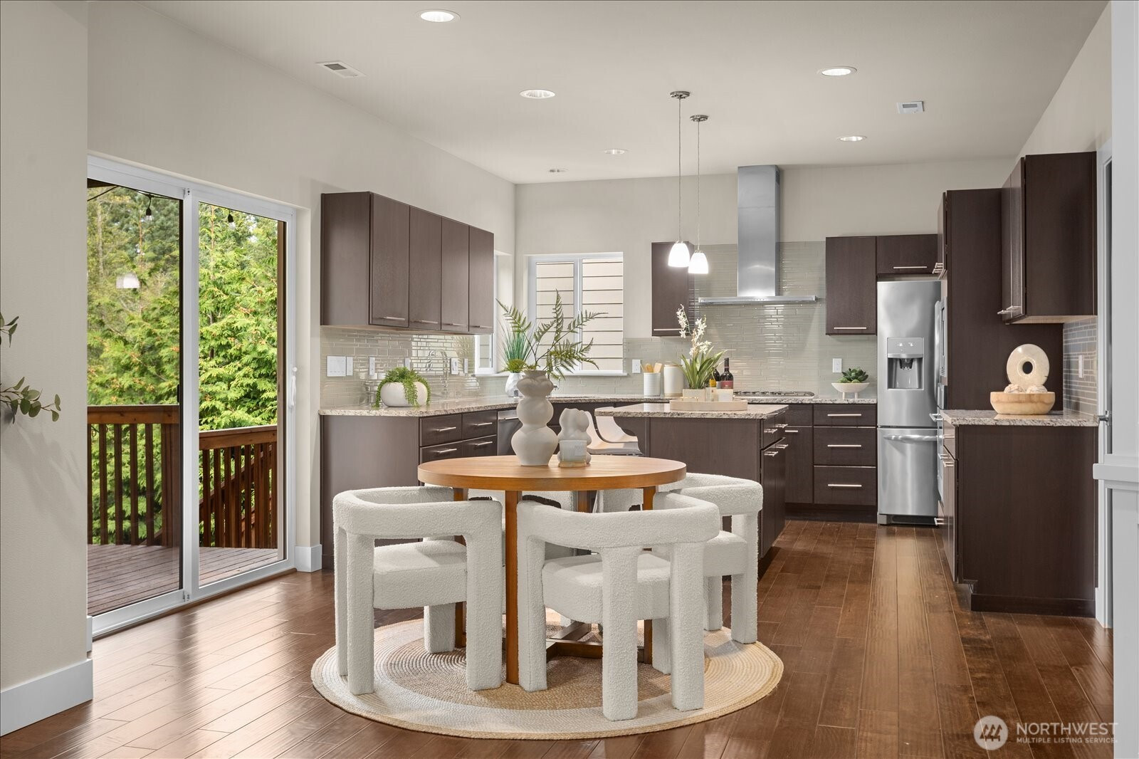 Experience the best of Pacific Northwest living in this stunning home backing to Meadowdale Beach Park. Surrounded by lush greenery, the oversized covered deck with skylights invites year-round relaxation and entertaining. Inside, hardwood floors flow through an open, light-filled layout featuring a spacious great room with a cozy gas fireplace and a chef’s kitchen with premium appliances, butler’s pantry, and granite counters. Retreat to the private primary suite with serene forest views, sitting area, huge walk-in closet, and spa-like bath. A newer heat pump ensures comfort in every season. Just steps from scenic trails to the beach with breathtaking Sound views—this is a rare opportunity you won’t want to miss!