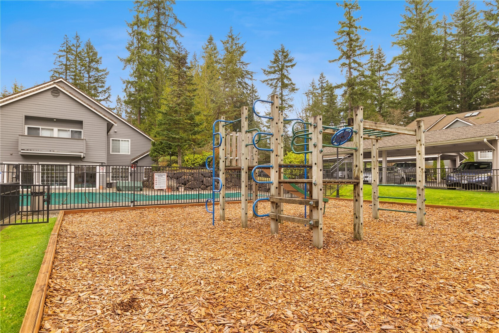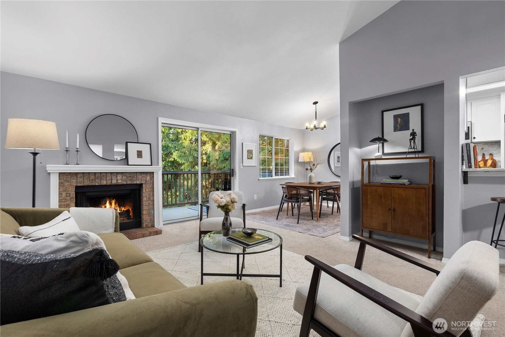Top-floor corner unit in coveted Mill Creek community with resort-style amenities! This spacious 3-bed, 2-bath condo offers vaulted ceilings and a functional layout. Enjoy the updated kitchen and bathrooms, cozy fireplace, and private patio surrounded by peaceful greenery. Generous storage and garage parking included. Community features include pool, sport court, fitness center, clubhouse, and playground. HOA dues cover water, sewer, and garbage. There is no rental cap, making this a great opportunity for homeowners and investors alike. Just a short walk to Mill Creek Golf Course and trails. Pre-inspected and move-in ready!