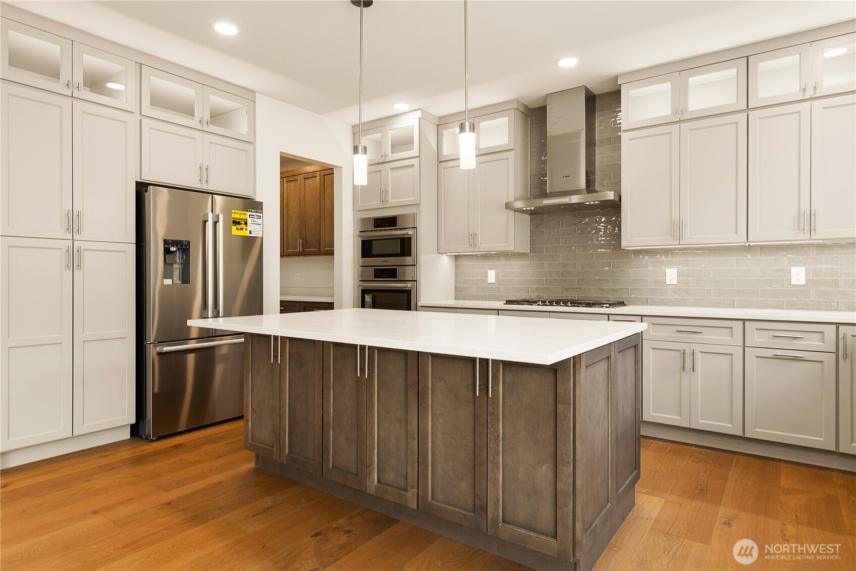 Tucked at the end of a private driveway, this newly built luxury residence blends exceptional craftsmanship with thoughtful design and everyday comfort. An impressive entry welcomes you with soaring ceilings, opening to a sun-filled great room that sets the tone for the home’s airy elegance. Designed to delight every lifestyle, the home features a chef’s kitchen ideal for entertaining—offering abundant storage, a butler’s pantry, walk-in pantry, upscale Bosch stainless steel appliances, and an expansive island with casual seating plus space for a full dining table. Car enthusiasts, hobbyists, or woodworkers will appreciate the oversized 725-square-foot, insulated three-car garage, complete with EV charging and a dedicated utility sink. A main-floor bedroom provides flexibility as a home office or multi-generational guest suite, paired with a full bath for added convenience. Upstairs, retreat to the generous primary suite featuring a walk-in closet and a spa-inspired five-piece bath. A substantially insulated 16’ x 16’ media/family room offers the perfect setting for movie nights or gatherings. Additional bedrooms offer extra closet space and one could be considered a secondary primary w/ensuite bath. This serene luxury home showcases superior construction and thoughtful details throughout and must be experienced in person to be fully appreciated. Built to meet 2021 WSEC-R standards, it delivers enhanced energy efficiency along with enduring quality and comfort.