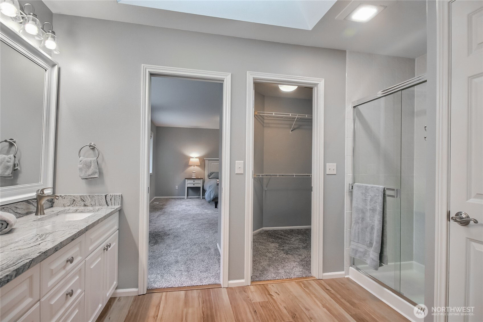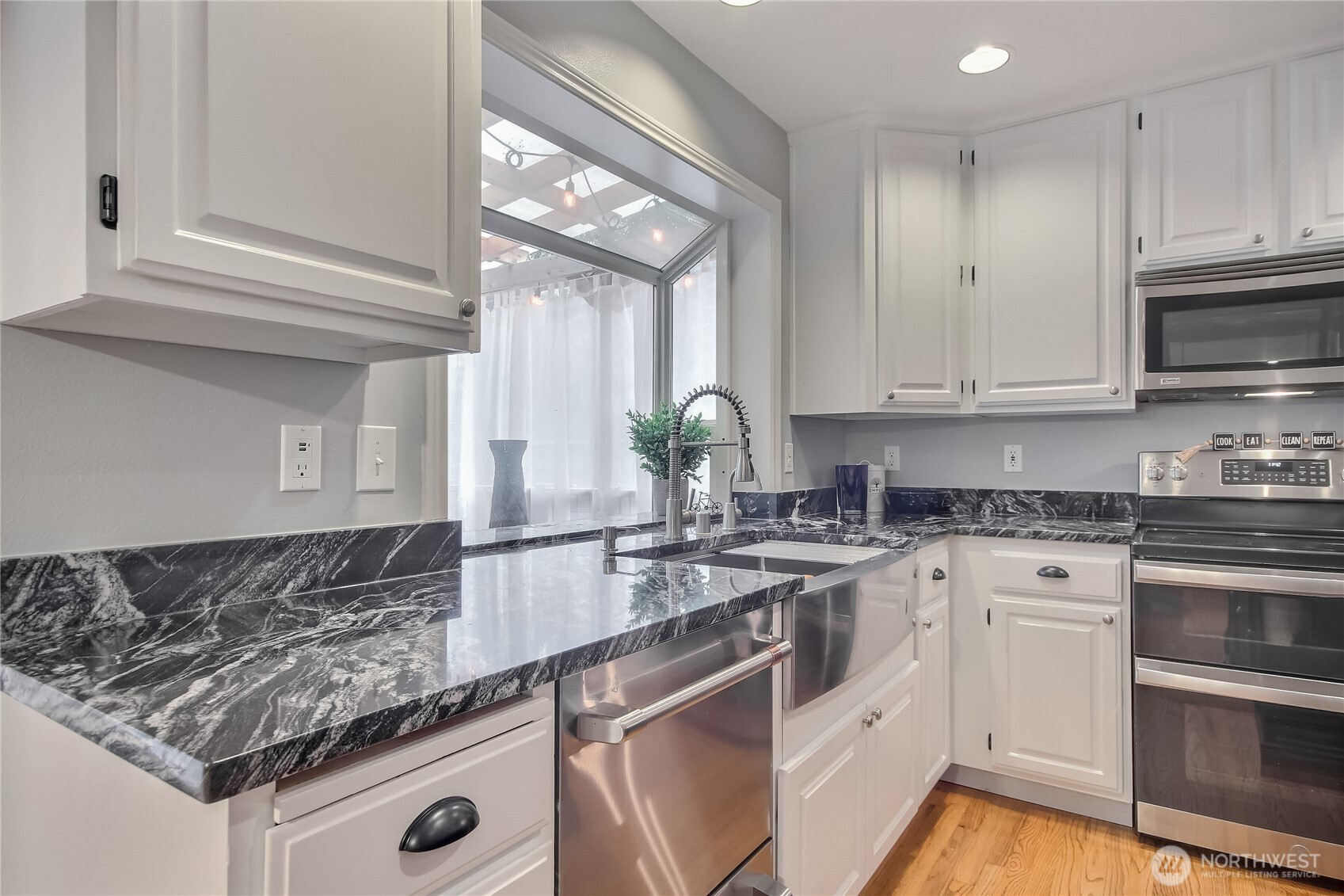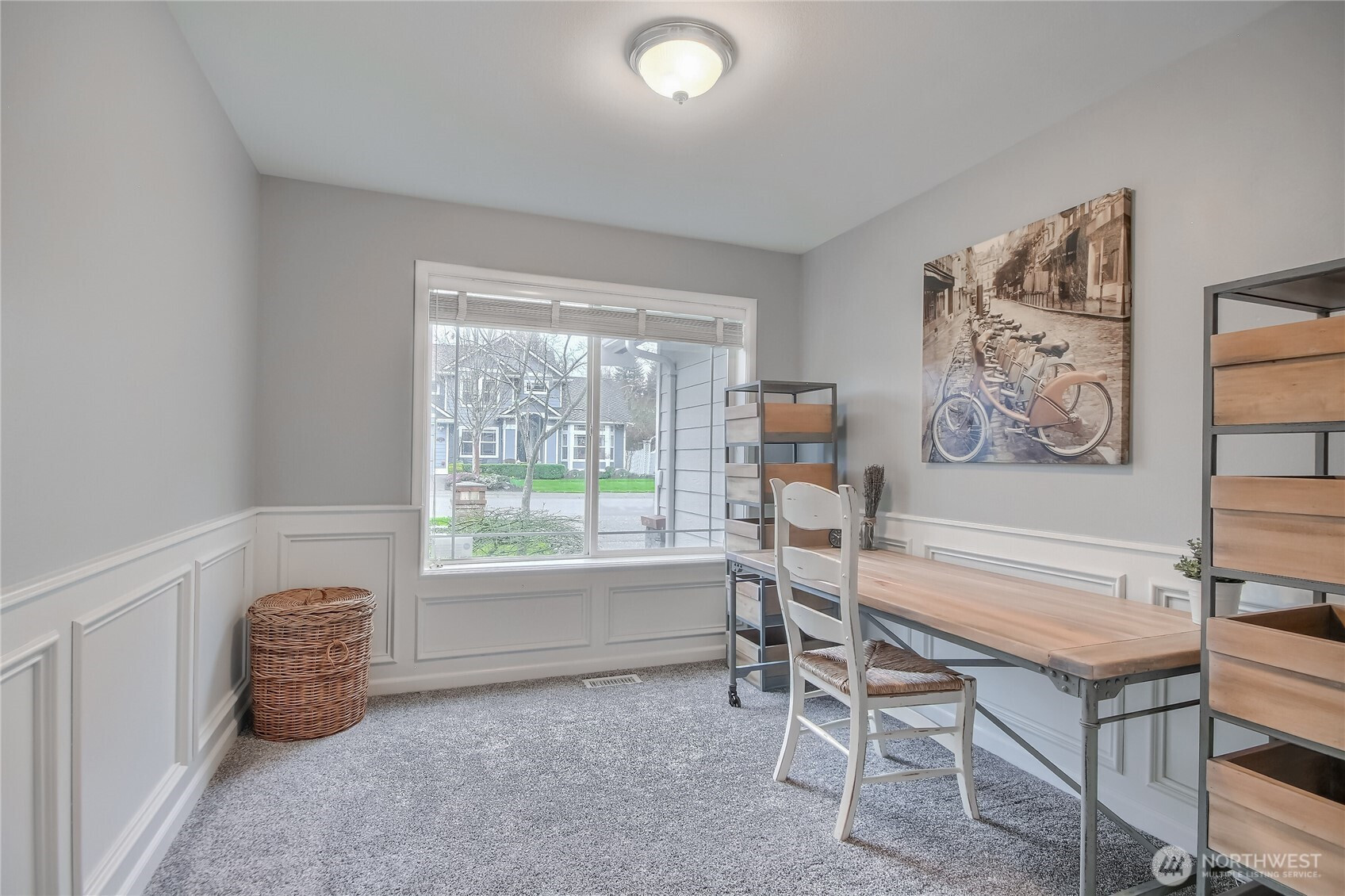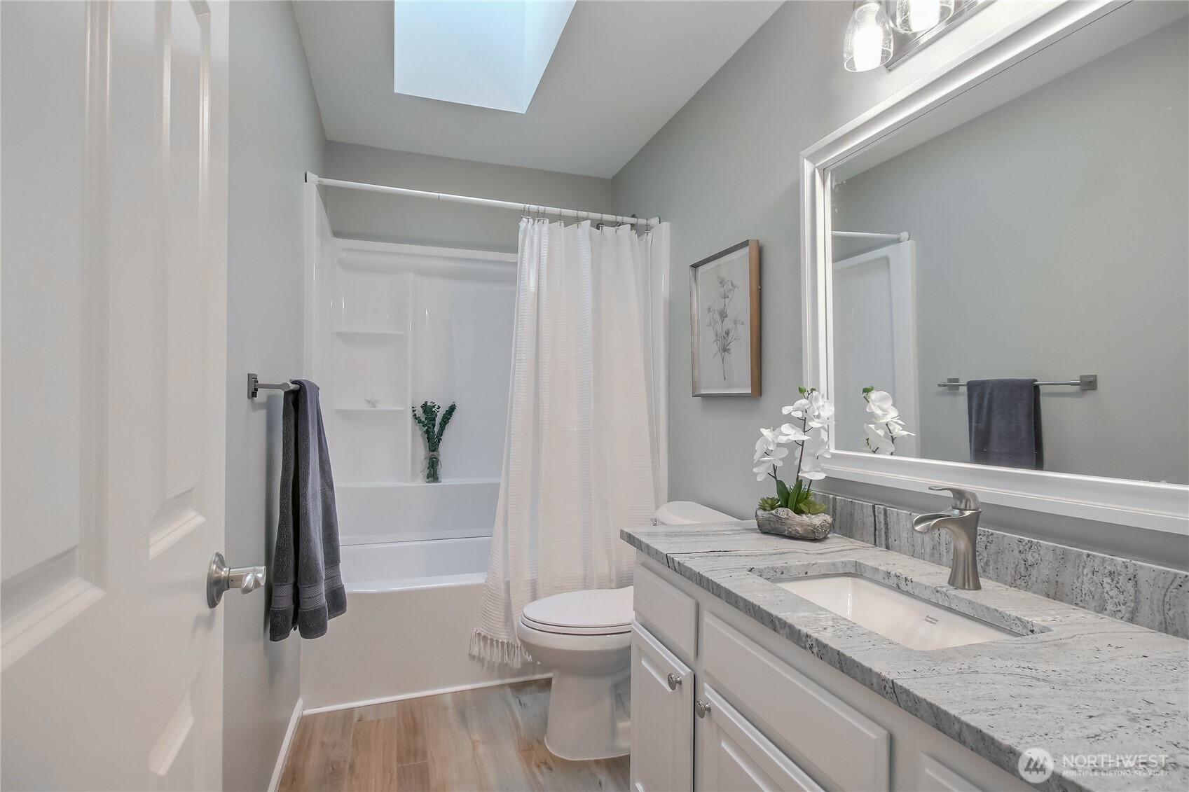 Tucked along a tranquil greenbelt in the coveted Gold Creek community, this refined four-bedroom, two-and-a-half-bath residence offers a rare blend of elegance and ease. Thoughtfully updated, the home showcases a beautifully refreshed kitchen, updated bathrooms, and is complemented by fresh paint & carpeting throughout. Buyer confidence abounds as the home has been pre-inspected and features a newer roof, furnace, central air conditioning, and hot water tank—allowing you to simply settle in and savor the surroundings. The backyard unfolds as a private sanctuary: gather beneath the stars around the fire pit, tend the raised garden beds, or begin the day in quiet reflection on the yoga deck. A gracious covered deck off the back of the home extends the living space, inviting year-round enjoyment in every season. Set on a low-traffic street with a generous three-car garage, this home is as practical as it is poised. Stroll to nearby parks, acclaimed schools, and the many walking trails that define the neighborhood, including the beloved Willis Tucker Park just moments away. This is a home that feels both grounded and elevated—a place where daily life is lived beautifully.