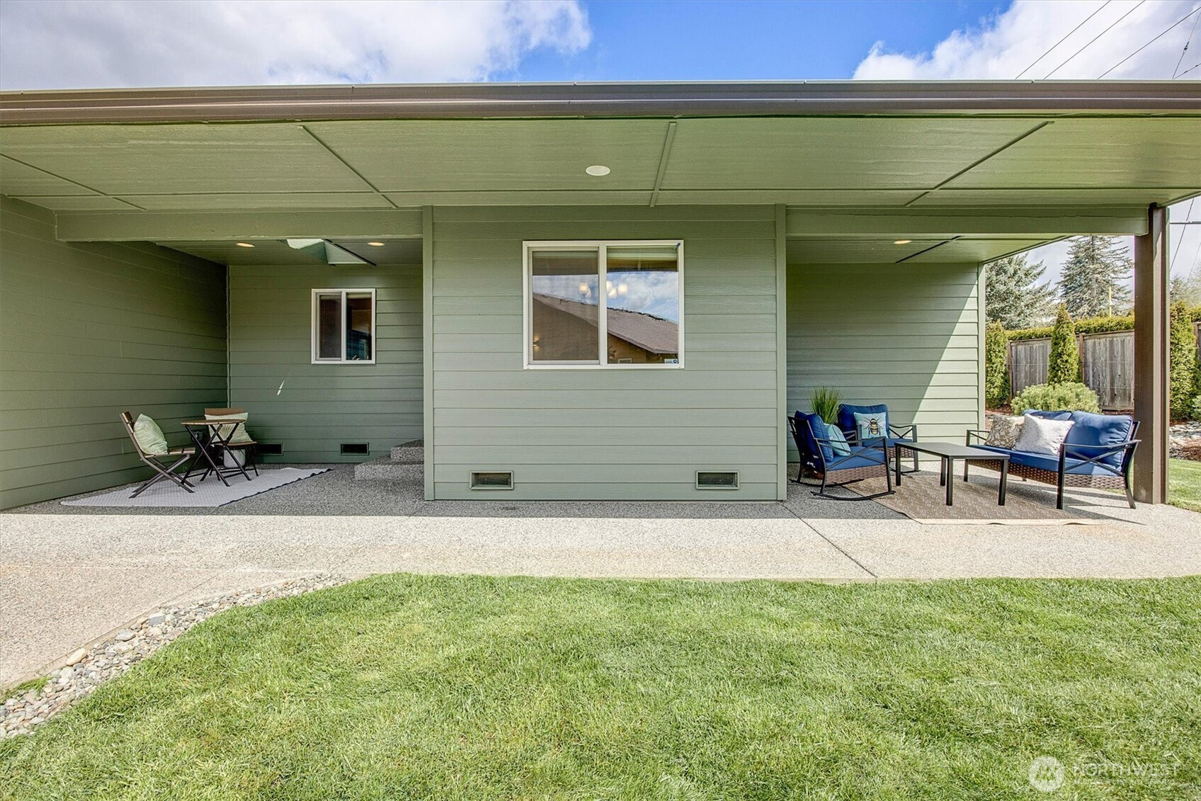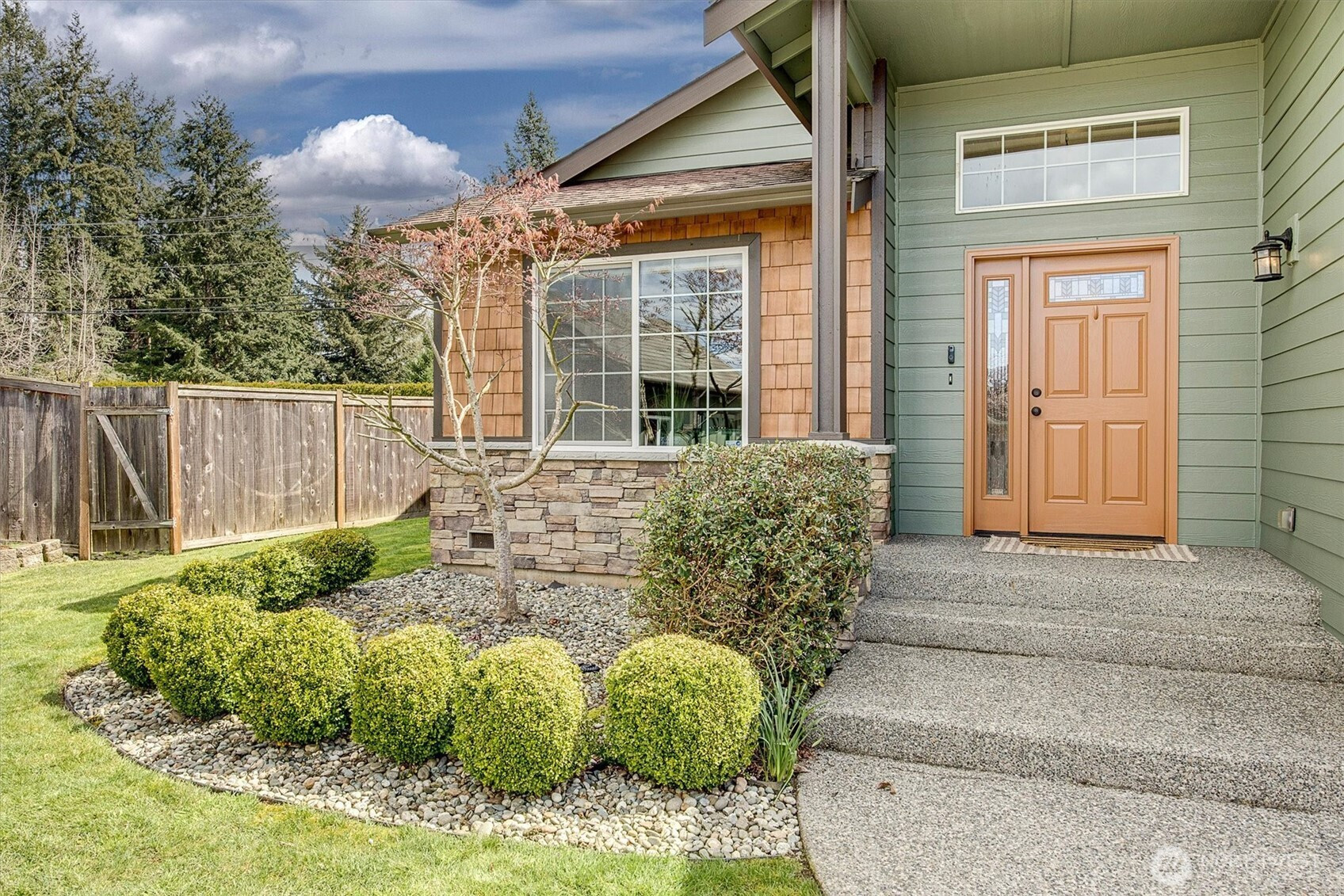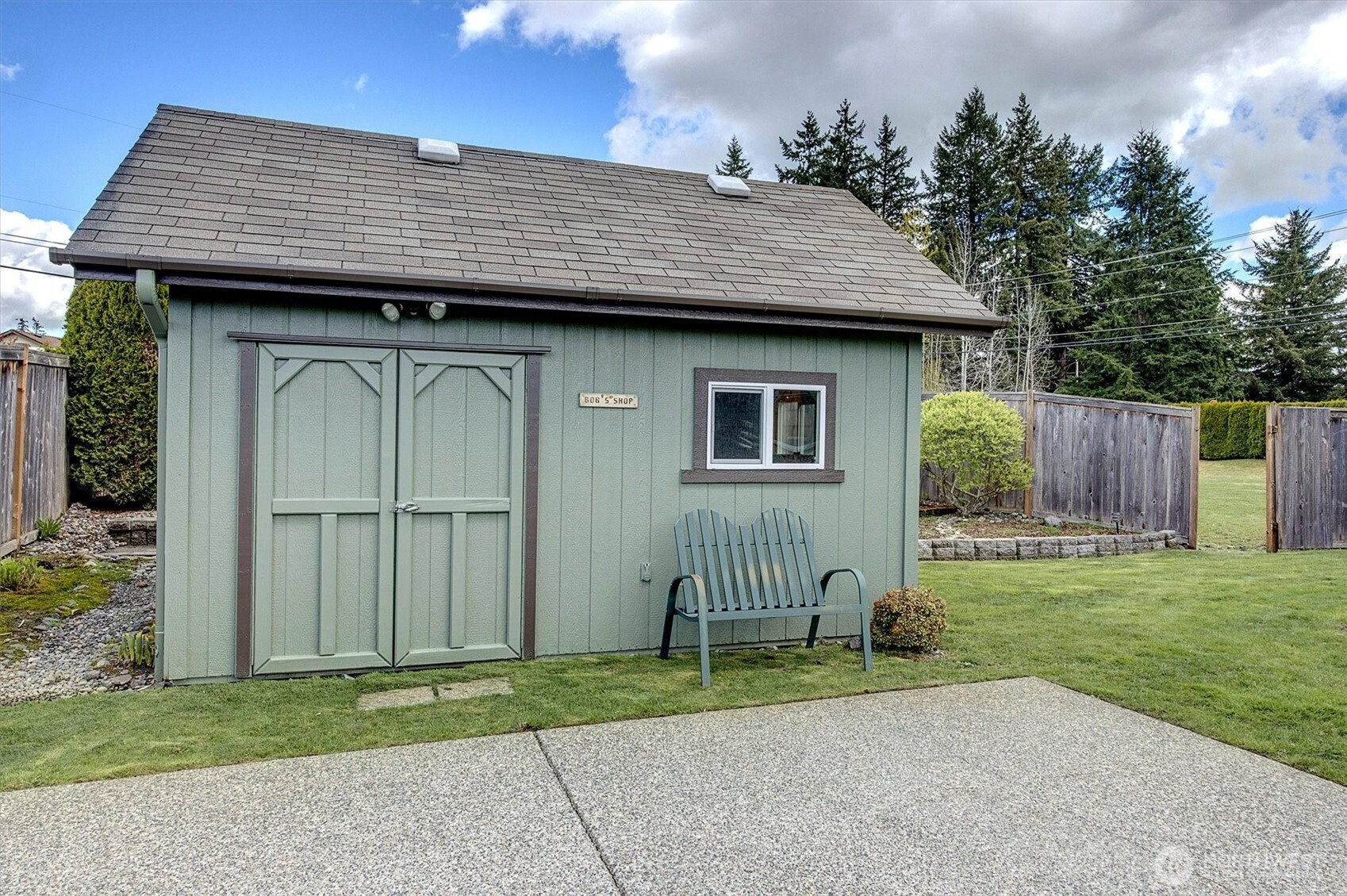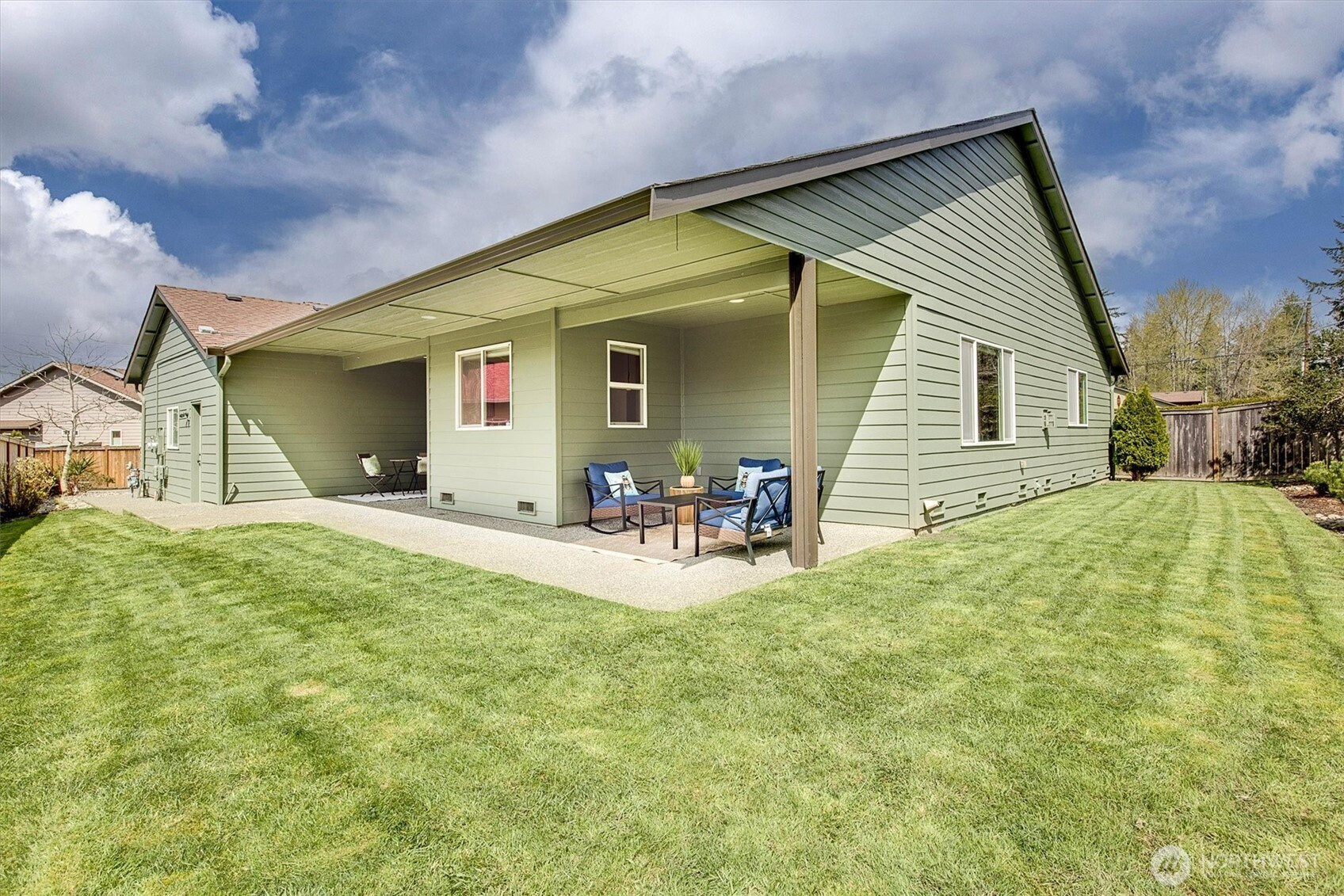 A rare opportunity to own a newer-built, recently updated true single-level rambler that seemlessly blends style and comfort. An open-concept layout enhances both entertaining and everyday living, offering a natural flow between spaces. The gas fireplace creates year-round warmth and ambiance. The kitchen features granite countertops, a spacious center island and a new LG SS appliance suite including a microwave, refridgerator, oven w/air fry & convection options and dishwasher. The primary suite offers a private en-suite bath complete with a soaking tub, Two additional bedrooms are thoughtfully arranged on a single level with no interior stairs for effortless living. Just off the entry, a dedicated office or bonus room adds flexibility. A rare 3-car garage provides abundant parking and storage. Recent updates include fresh interior and exterior paint, along with energy-efficient solar panels, skylights that bring in natural light, and stylish updated sconce lighting throughout the hallways. This home is ideally positioned adjacent to a private spacious community lawn, perfect for large gatherings and entertainment. A spacious workshop and an additional storage shed. Covered outdoor areas provide the perfect setting for BBQ's, as well as a firepit for summer nights or year-round enjoyment. Just minutes from Mill Creek shopping and amenities. EZ access to I-5 & I-405 ensures seamless commuting and connectivity!