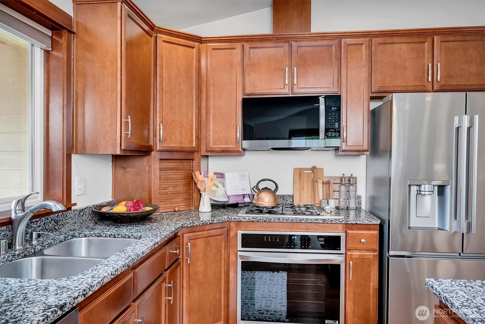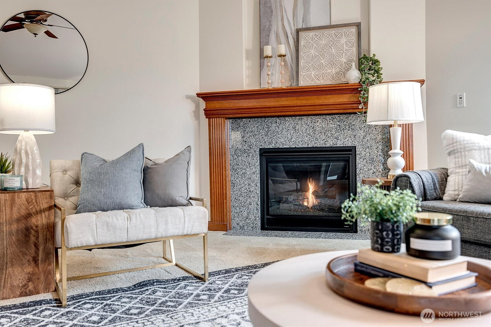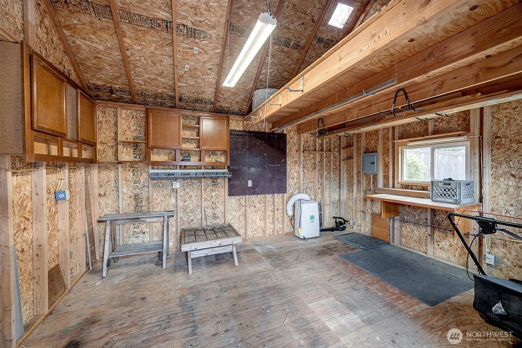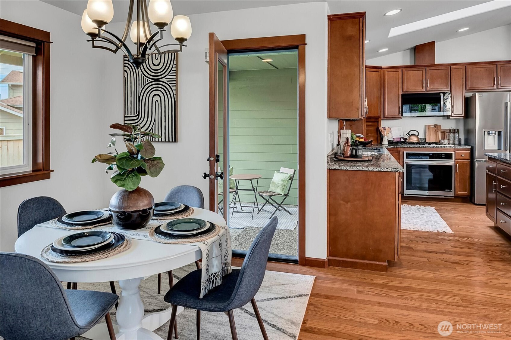 A rare opportunity to own a newer-built, recently updated true single-level rambler that seemlessly blends style and comfort. An open-concept layout enhances both entertaining and everyday living, offering a natural flow between spaces. The gas fireplace creates year-round warmth and ambiance. The kitchen features granite countertops, a spacious center island and a new LG SS appliance suite including a microwave, refridgerator, oven w/air fry & convection options and dishwasher. The primary suite offers a private en-suite bath complete with a soaking tub, Two additional bedrooms are thoughtfully arranged on a single level with no interior stairs for effortless living. Just off the entry, a dedicated office or bonus room adds flexibility. A rare 3-car garage provides abundant parking and storage. Recent updates include fresh interior and exterior paint, along with energy-efficient solar panels, skylights that bring in natural light, and stylish updated sconce lighting throughout the hallways. This home is ideally positioned adjacent to a private spacious community lawn, perfect for large gatherings and entertainment. A spacious workshop and an additional storage shed. Covered outdoor areas provide the perfect setting for BBQ's, as well as a firepit for summer nights or year-round enjoyment. Just minutes from Mill Creek shopping and amenities. EZ access to I-5 & I-405 ensures seamless commuting and connectivity!