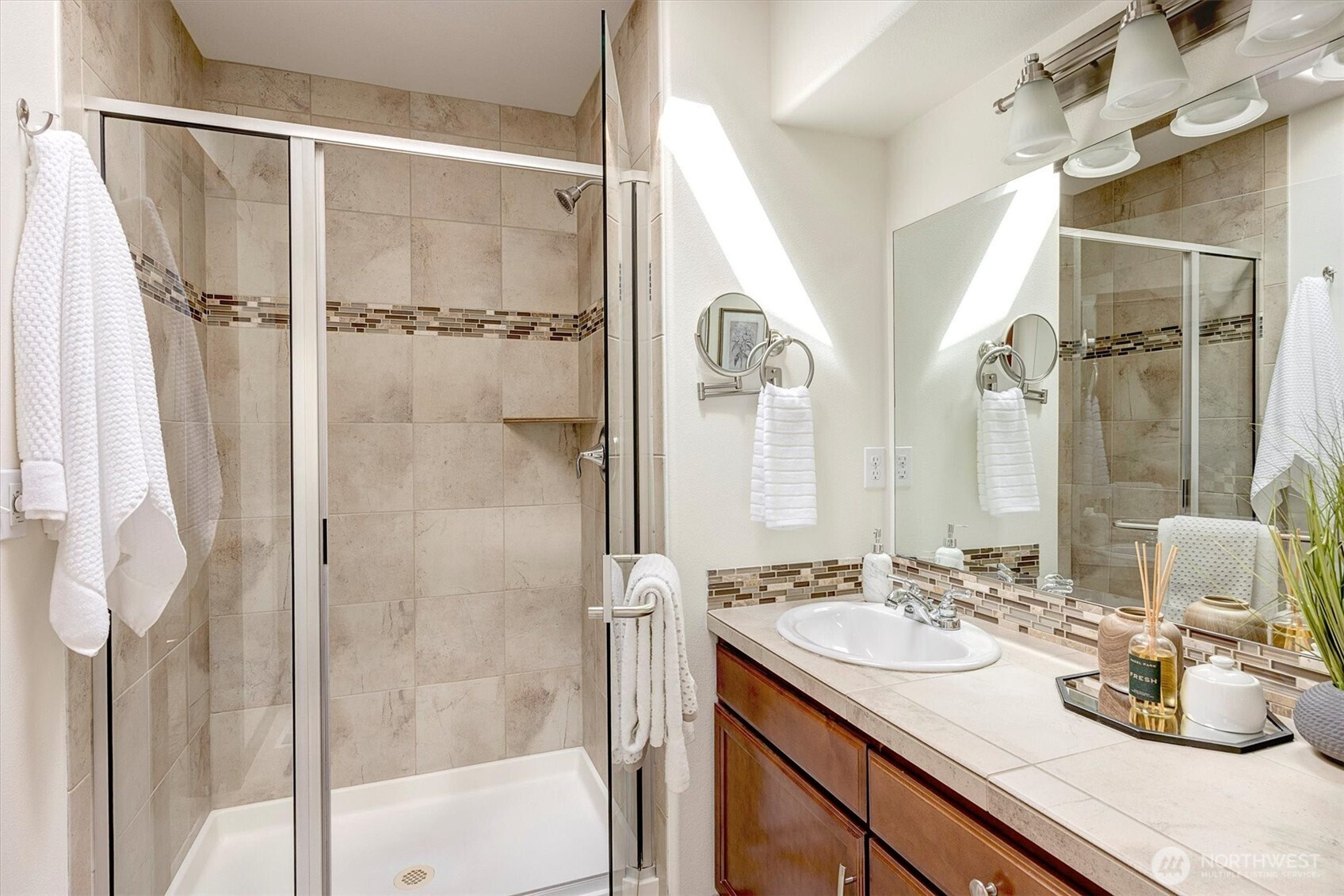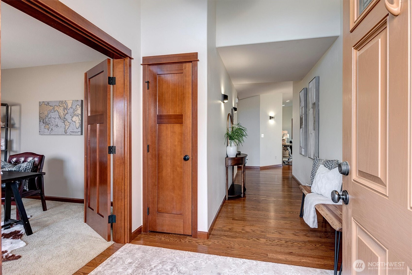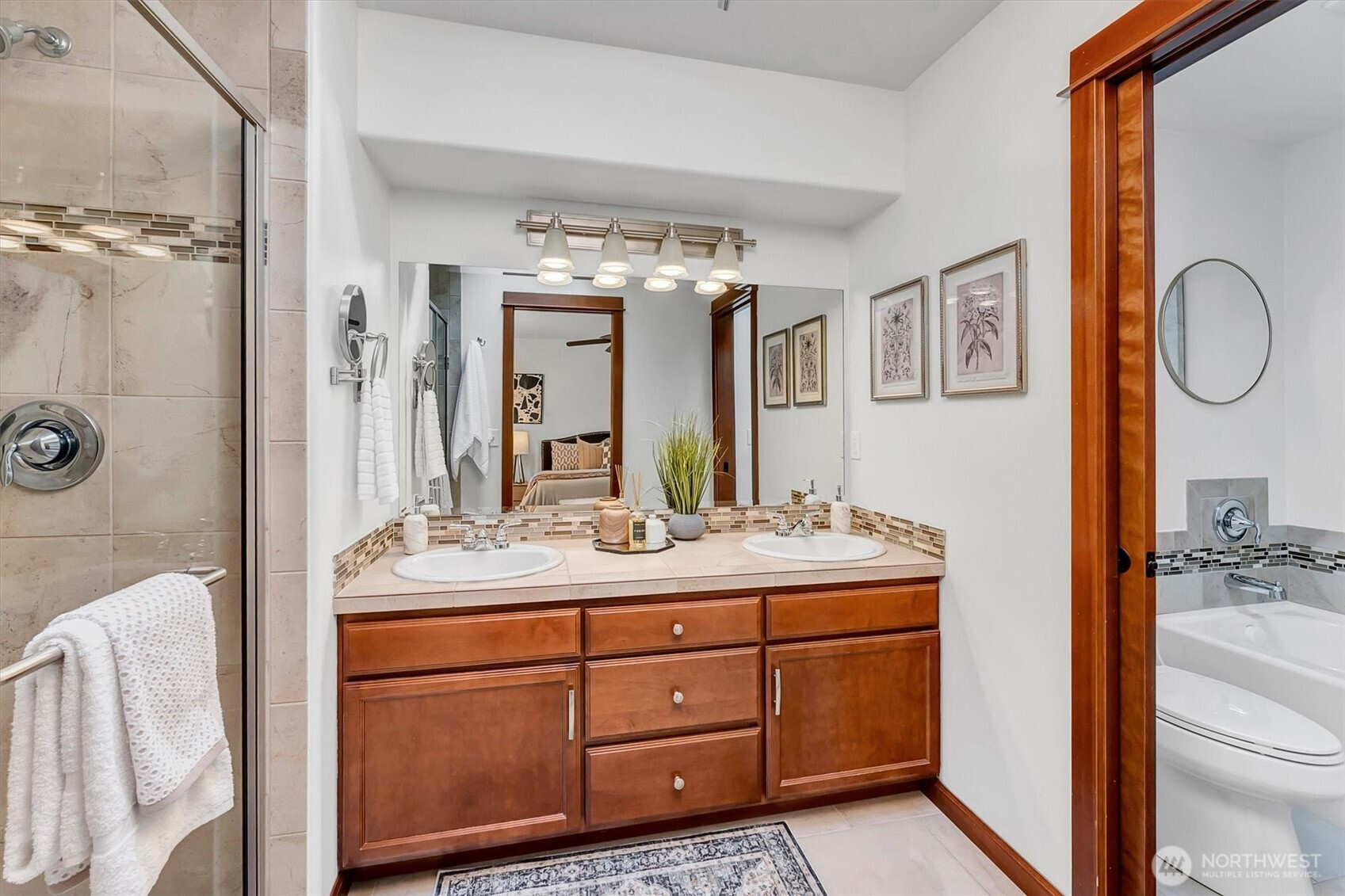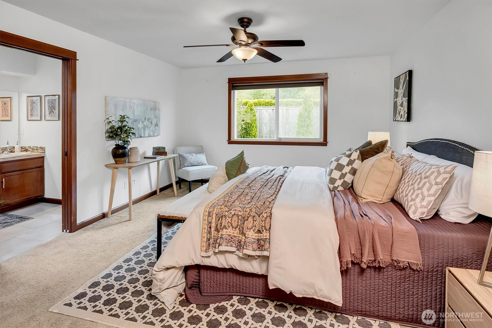 A rare opportunity to own a newer-built, recently updated true single-level rambler that seemlessly blends style and comfort. An open-concept layout enhances both entertaining and everyday living, offering a natural flow between spaces. The gas fireplace creates year-round warmth and ambiance. The kitchen features granite countertops, a spacious center island and a new LG SS appliance suite including a microwave, refridgerator, oven w/air fry & convection options and dishwasher. The primary suite offers a private en-suite bath complete with a soaking tub, Two additional bedrooms are thoughtfully arranged on a single level with no interior stairs for effortless living. Just off the entry, a dedicated office or bonus room adds flexibility. A rare 3-car garage provides abundant parking and storage. Recent updates include fresh interior and exterior paint, along with energy-efficient solar panels, skylights that bring in natural light, and stylish updated sconce lighting throughout the hallways. This home is ideally positioned adjacent to a private spacious community lawn, perfect for large gatherings and entertainment. A spacious workshop and an additional storage shed. Covered outdoor areas provide the perfect setting for BBQ's, as well as a firepit for summer nights or year-round enjoyment. Just minutes from Mill Creek shopping and amenities. EZ access to I-5 & I-405 ensures seamless commuting and connectivity!