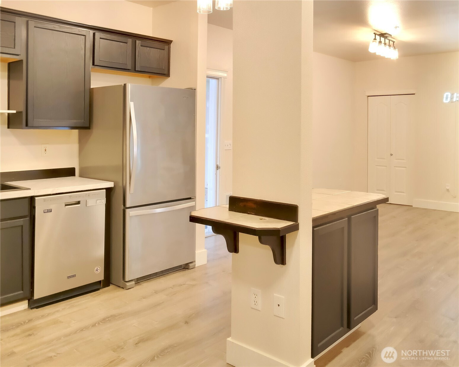 Welcome to this beautifully maintained end- unit, true level entry condo located just blocks away from the Ash Way Park & Ride and future light rail station. It features 3 generously sized bedrooms, 1.75 baths, and an attached 2-car garage plus 2 outside with 1,201 sq ft. The cozy living room, complemented by updated laminated flooring throughout the kitchen, dining, entry and hallway, created a warm and cohesive ambiance and slider access to a large private, covered patio and fenced backyard. Easy access to I-5 in both directions and close to Alderwood Mall, shops, parks, and restaurants.