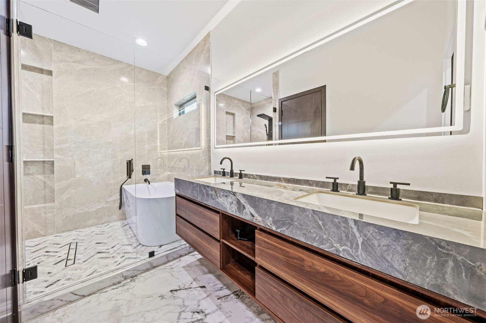 Brand new luxury home in Lynnwood's most sought after new community is here! Sitting atop Martha Lake this is 1 of only 9 ultra luxury homes tucked inside this private, gated enclave in the heart of Lynnwood. Designed for modern luxury living, it features, oak hardwood floors, triple-pane windows, and a grand vaulted entry. Indulge in spa-inspired comforts with smart toilets and a luxury smart shower, enhanced by acoustic wall panels and designer lighting throughout. Experience privacy, elegance, and innovation—just minutes from everywhere. Take advantage of introductory builder pricing and builder incentives. Only 9 of these luxury homes will ever exist, secure your legacy today! Welcome home to Martha Lake Estates