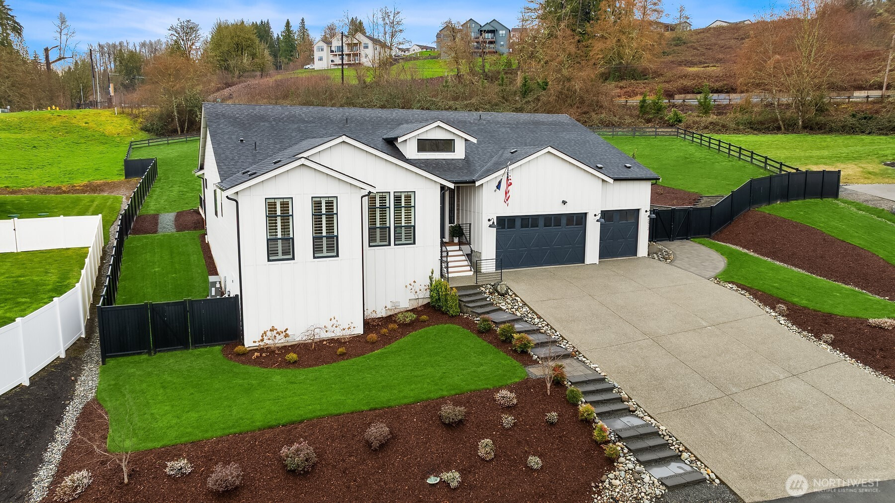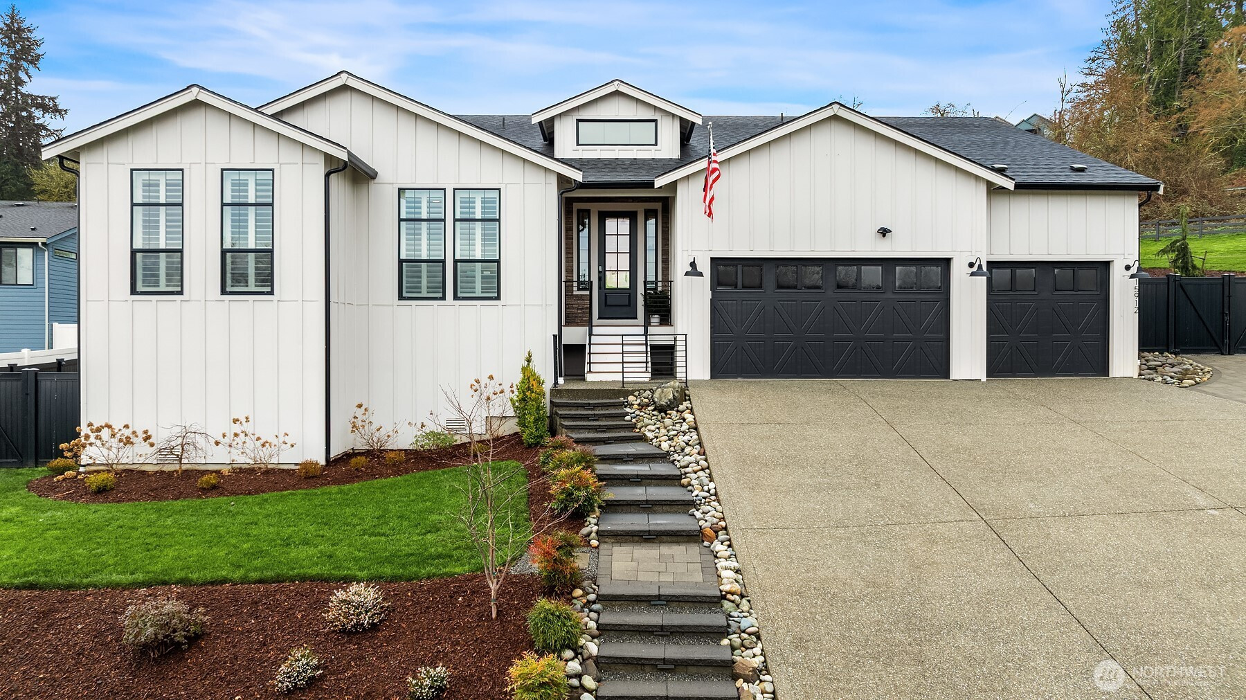 Immaculate rambler loaded w/custom upgrades in the coveted Valley Vista Estates community! Meticulously crafted just 2 years ago, this pristine turn-key home epitomizes luxury single level living. Formal entry opens to reveal a large great rm w/soaring ceilings & huge picture windows illuminating a sundrenched interior. The open concept floorplan features dedicated living & dining spaces, extra-large chef’s kitchen w/extended counters, massive island & designer appliance package. This captivating home offers 3BRs + den/office including a sumptuous primary suite featuring a luxurious 5-piece bath & dual walk-in closets. Extensive upgrades to this striking residence include new engineered hardwood floors, custom built-ins, stylish light fixtures, designer window treatments & home gym. Expertly sited on a shy acre lot w/a fully fenced backyard, this exceptional property provides a huge, expanded entertainment deck perfect for hosting endless summer BBQs. Offering a truly one-of-a-kind lifestyle in a boutique gated neighborhood, this idyllic home is located directly across from the community waterfront trail, providing direct access to private riverfront w/rare sandy beach & swimming hole. Fish, kayak or cool off in the river this summer just steps from your front door! Incredible location perfect for outdoor enthusiasts with unrivaled access to quintessential PNW recreation & easy commutes to the Redmond tech corridor, Bellevue, Woodinville wine country & historic DT Snohomish.