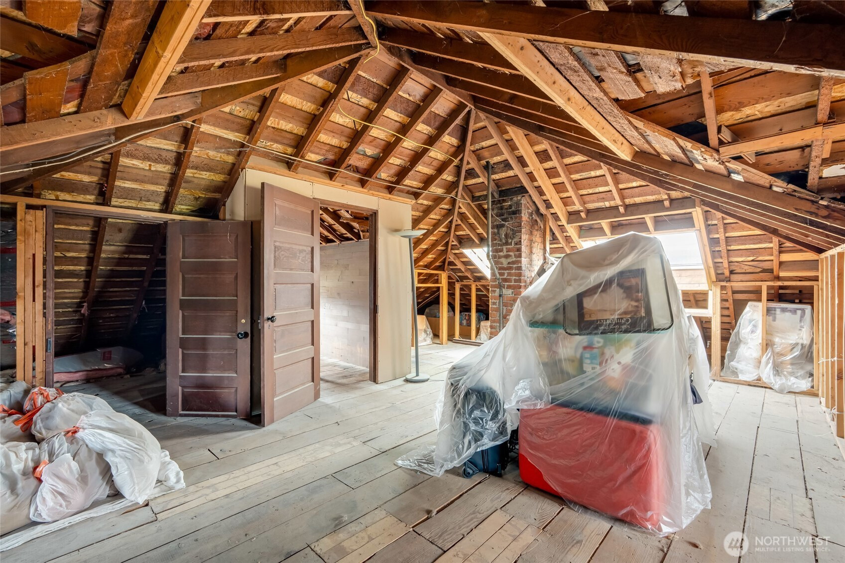 Welcome to this Historic North Everett home, perched on a large corner lot with sweeping views of the Puget Sound, Olympic Mountains, and Jetty Island. This home blends timeless craftsmanship and modern updates. A large front porch and a Dutch front door lead into a grand entryway and staircase. The oversized living room opens to the dining room with large picture windows and a fireplace. Updated kitchen, with top-end appliances and an eating nook, flows to a deck overlooking the backyard & views. There is also a powder room on the first floor, perfect for guests. Upstairs is a spacious corner primary suite with western and northern water views, double closets, an en-suite bath, & deck. Three other oversized bedrooms are upstairs and feature abundant natural light. A third set of stairs leads to an unfinished third floor full of potential to be a master suite with breathtaking views, a playroom, an art studio, or many other things. The basement also provides amazing storage and expansion opportunities. A detached 2-car garage guarantees private parking. Nearby the new Waterfront with numerous shops and restaurants, Grand Avenue Park & Downtown Everett.