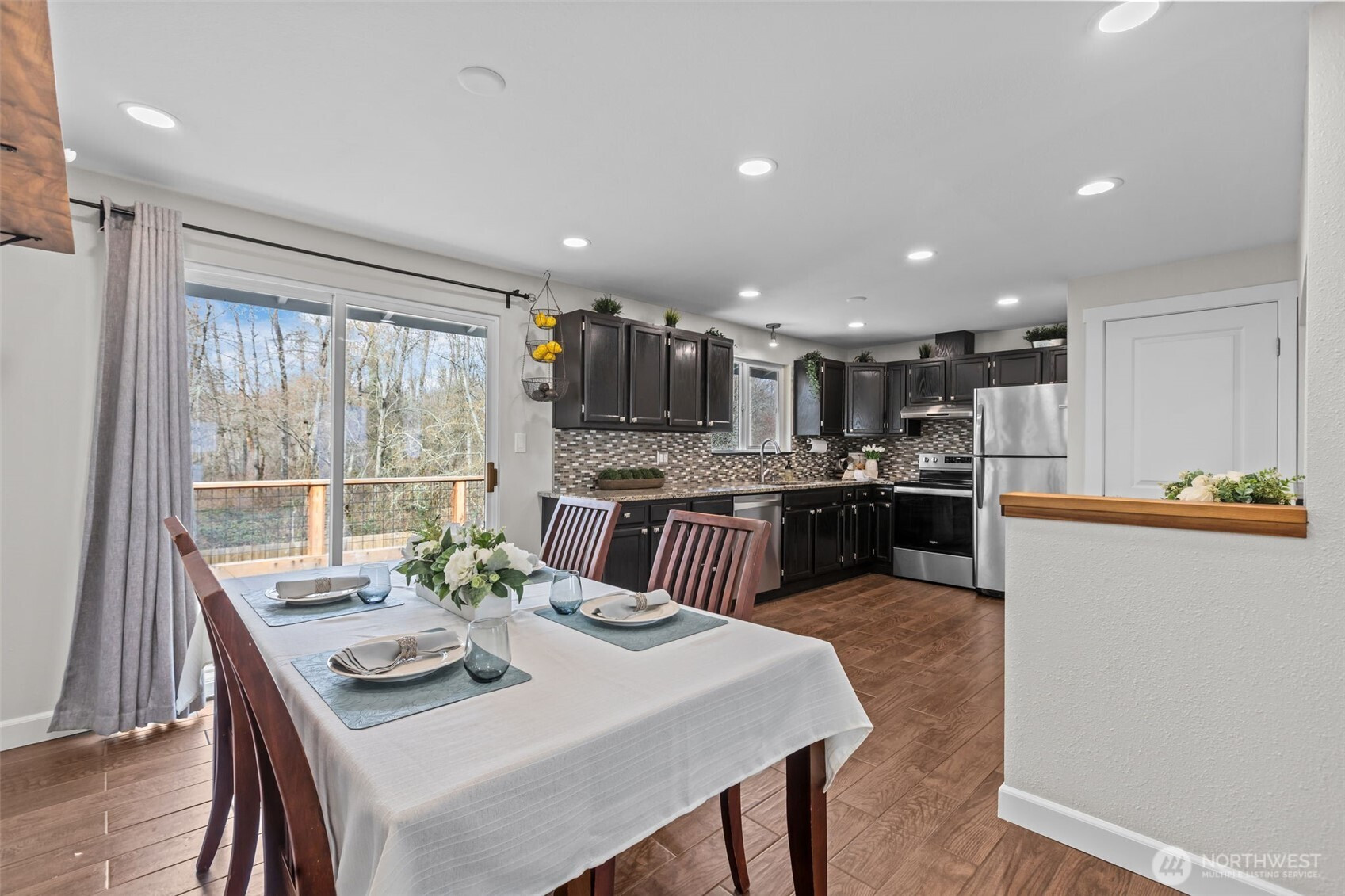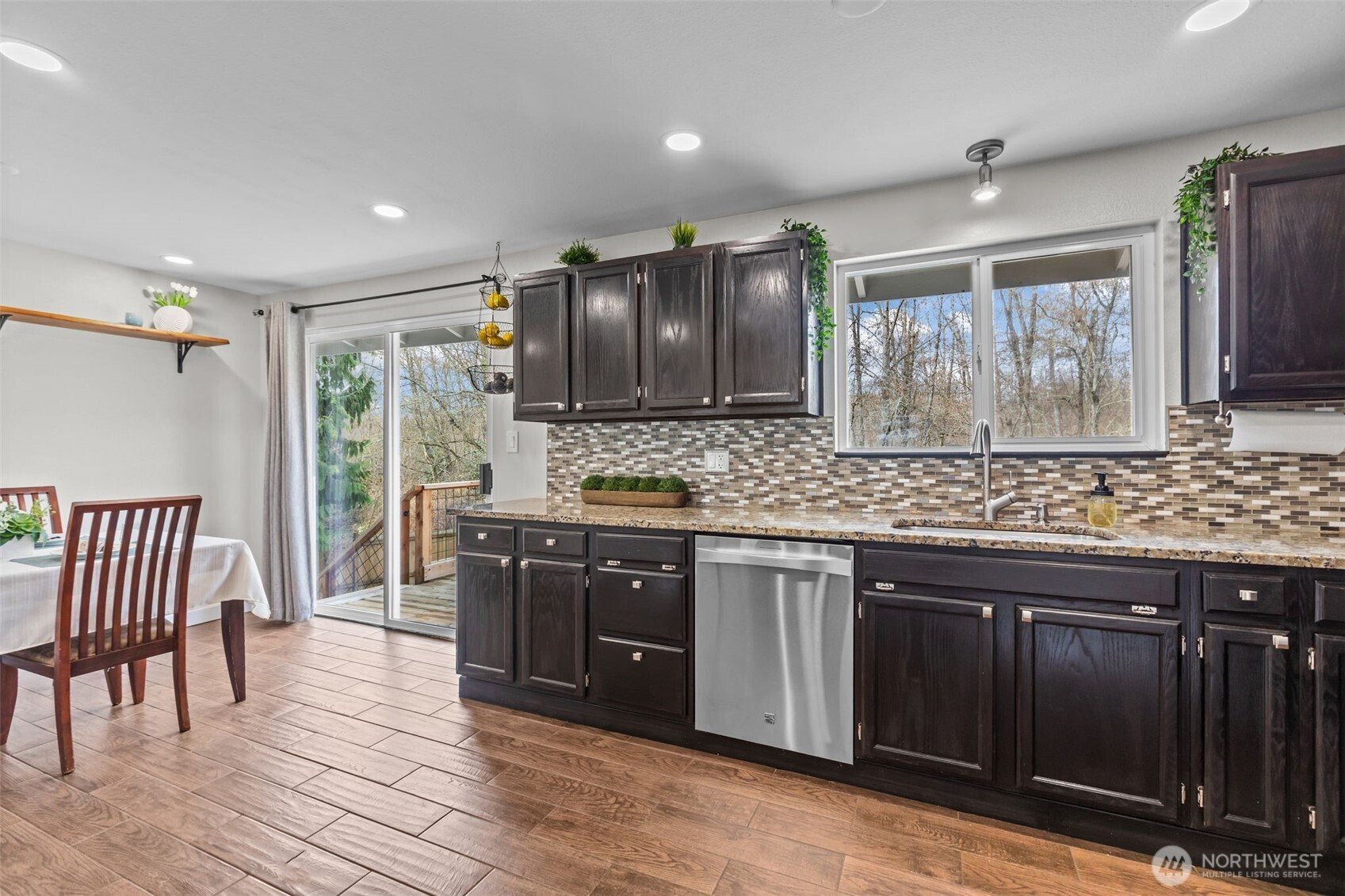 (503) 893-8874Tucked away on a quiet dead-end street in a desirable Lynnwood location, this beautifully updated home offers the perfect blend of comfort, flexibility, and privacy. Thoughtfully refreshed throughout, the home features bright, inviting interiors with updated flooring, modern finishes, and a remodeled primary bath designed for everyday ease. The upper level showcases a warm and functional living space with granite countertops and seamless flow for both daily living and entertaining. The lower level offers versatile space ideal for guests or multi-generational living, featuring a spacious family room with wet bar and a large bonus room with potential for additional bedroom or office (buyer to verify). Step outside to a generous lot backing to greenbelt—creating a peaceful Pacific Northwest setting with added privacy and no direct rear neighbors, fully fenced yard, a detached shop and additional storage provides flexibility for hobbies, workspace, or organization. Ideally located just minutes to I-5, Alderwood Mall, Ash Way Park & Ride, this home offers exceptional convenience for commuting while maintaining a quiet residential feel. Highlights include: updated flooring and interior finishes, new outlets and switches, new recessed lighting throughout upper living area, remodeled main bath with heated floors, new heat pump with A/C, new water heater, roof replaced in 2022, new front door 2024, updated interior doors and trim, and a spacious lot with RV parking.
