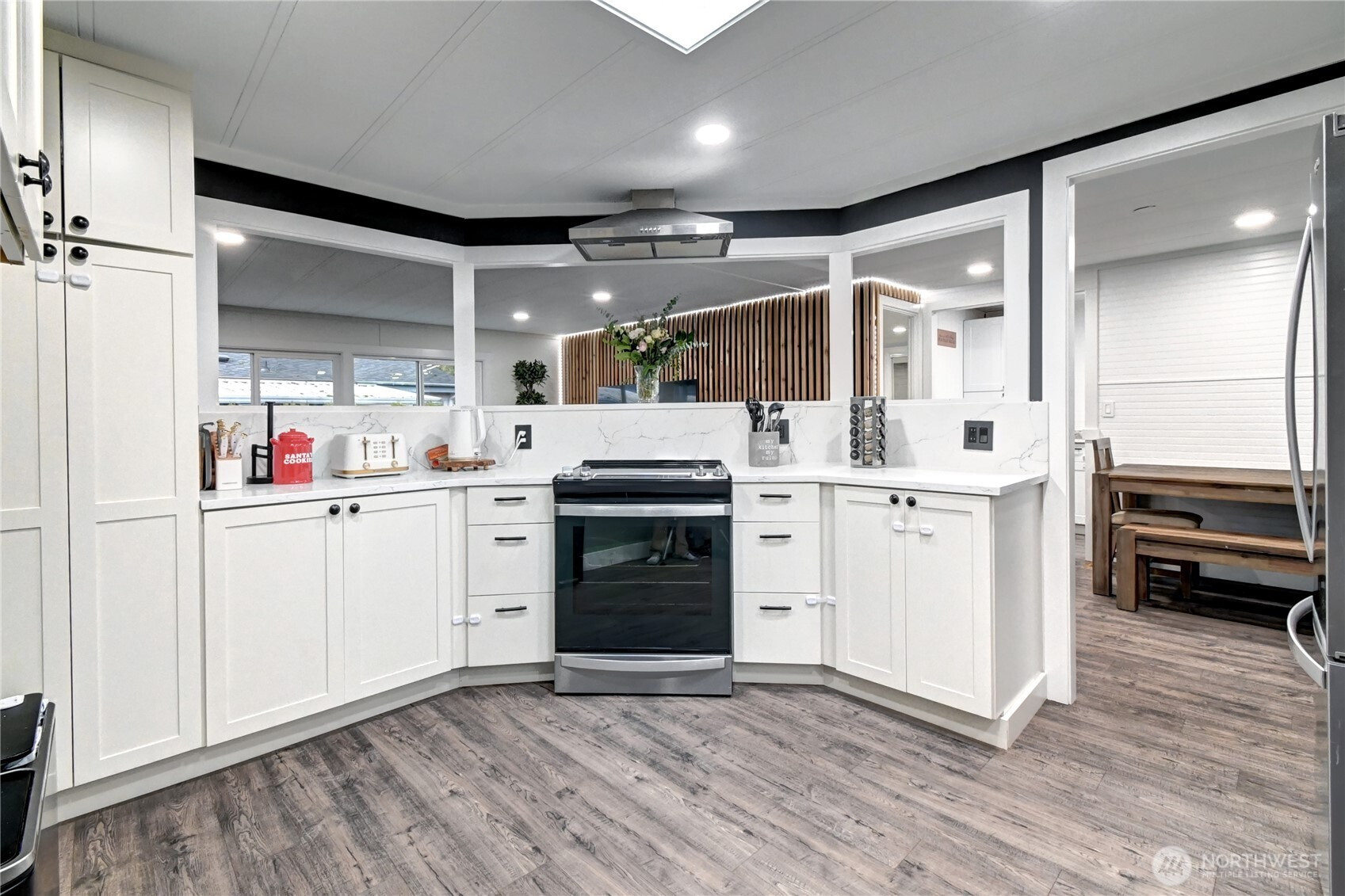Don't miss this standout opportunity to get into Twin Creeks and the coveted Northshore School District. Tastefully remodeled and renovated throughout, this 4 total beds, 3 bath residence includes a detached DADU w/ own bathroom for flexible living. The layout is open, offering true separation of space and everyday convenience. The interior showcases modern finishes throughout, like LVP flooring, newer base/door trim, newer paint, stainless steel appliances and quartz countertops in the kitchen, and more. Natural light pours in through the skylight, enhancing the open and inviting atmosphere. The deck provides an excellent area for relaxing or entertaining, and the dedicated storage space is valuable. Parking is easy with a covered carport, and expenses are simplified with W/S/G included in the space rent. If you’ve been waiting for a clean, turnkey home with an exceptional layout and strong value, this is it. Minutes from schools, shopping, and freeway.