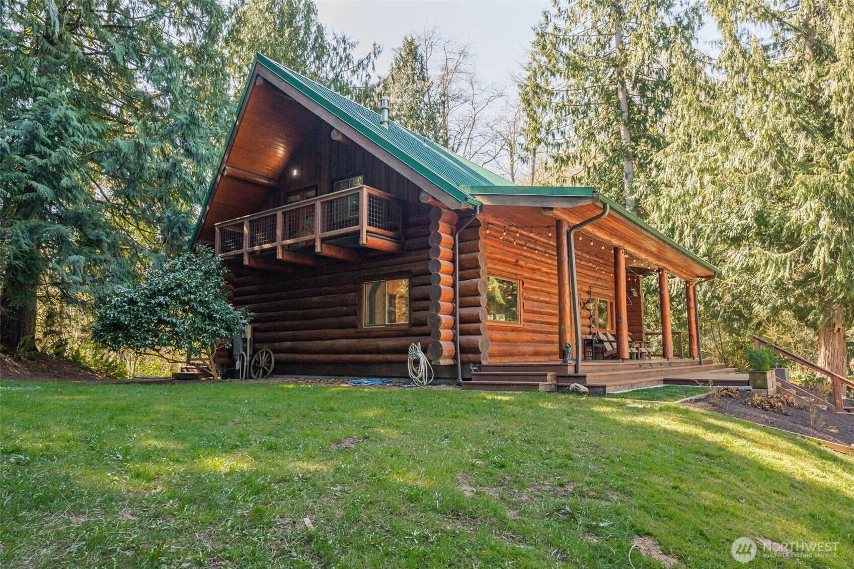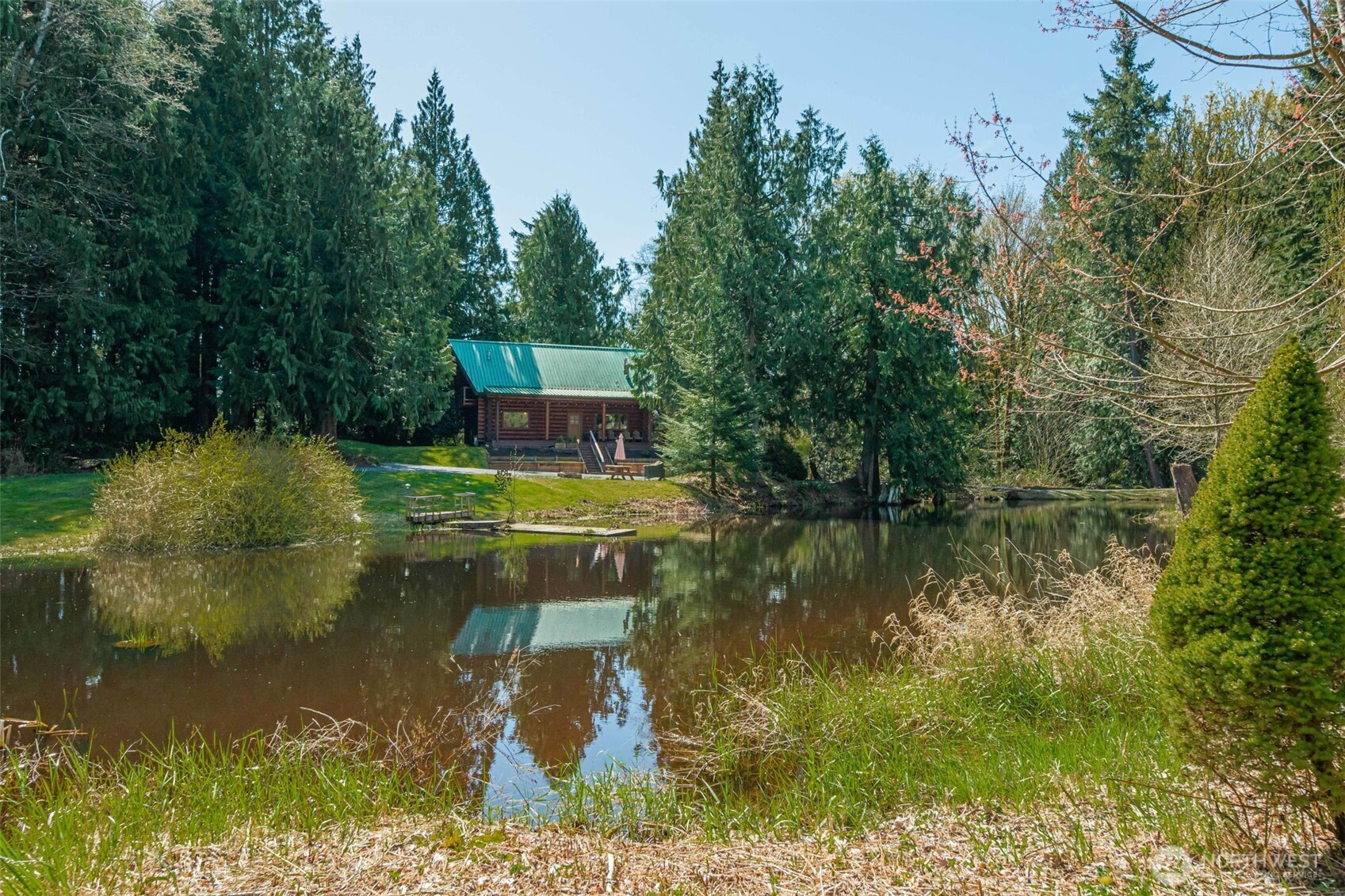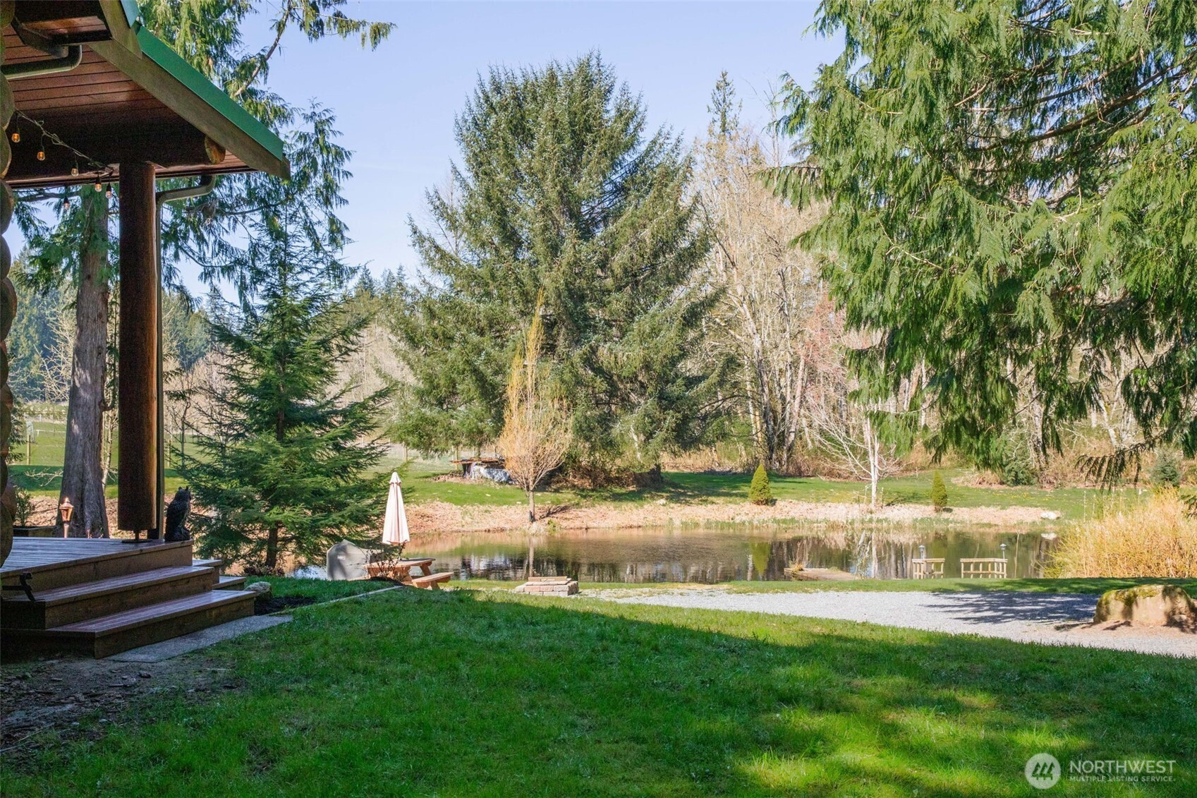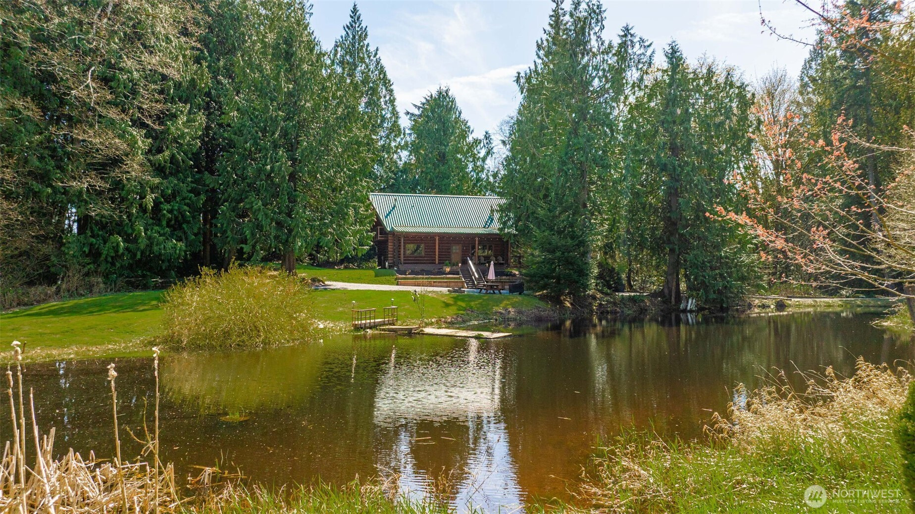 Every detail of this setting feels intentional with views from your covered front porch of your own private pond, to the open pasture on 10.5 acres seamlessly woven into the natural landscape, that surround this one-of-a-kind, 2,700+ sq ft custom-built log home. This thoughtful layout was crafted by Smokey Point Log Homes using hand-peeled Douglas fir logs. The main level showcases great room-style living with soaring vaulted ceilings, a stunning river rock surround wood stove, updated kitchen with heated tile floors at the work zones and 1 bedroom. Upstairs loft leads to an oversized owner’s suite with two private decks that overlooks the property. The daylight basement offers a spacious family room, mini kitchenette, and a second river rock surround wood stove. Ideal for gatherings, extended living or a second owners suite. If nature is your definition of perfection, whether as a get away private retreat, full-time residence, or potential Airbnb, this is a must-see property. Surround yourself by nature yet be conveniently located to all amenities and seamless I-5 Access.