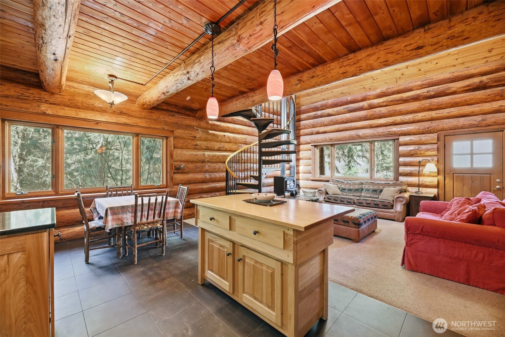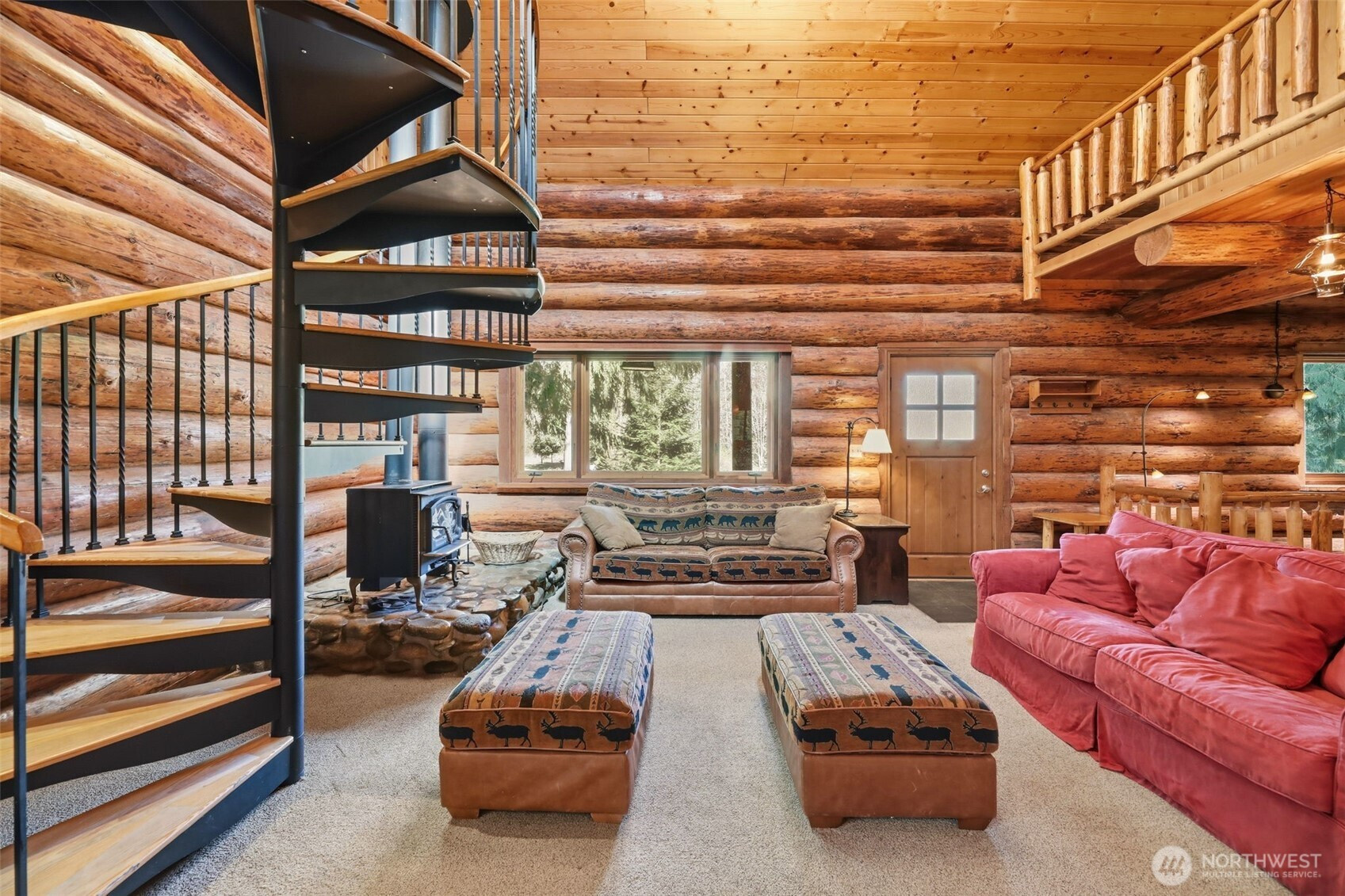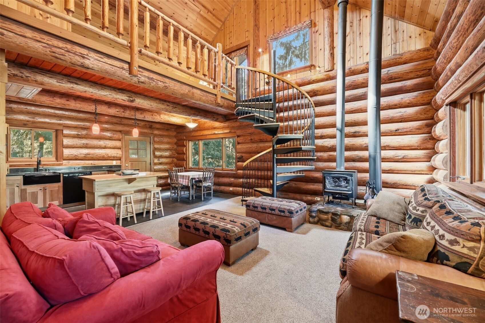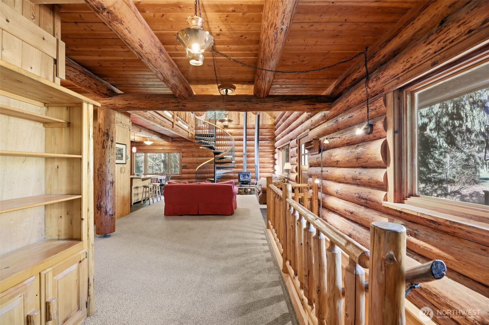 Every detail of this setting feels intentional with views from your covered front porch of your own private pond, to the open pasture on 10.5 acres seamlessly woven into the natural landscape, that surround this one-of-a-kind, 2,700+ sq ft custom-built log home. This thoughtful layout was crafted by Smokey Point Log Homes using hand-peeled Douglas fir logs. The main level showcases great room-style living with soaring vaulted ceilings, a stunning river rock surround wood stove, updated kitchen with heated tile floors at the work zones and 1 bedroom. Upstairs loft leads to an oversized owner’s suite with two private decks that overlooks the property. The daylight basement offers a spacious family room, mini kitchenette, and a second river rock surround wood stove. Ideal for gatherings, extended living or a second owners suite. If nature is your definition of perfection, whether as a get away private retreat, full-time residence, or potential Airbnb, this is a must-see property. Surround yourself by nature yet be conveniently located to all amenities and seamless I-5 Access.
