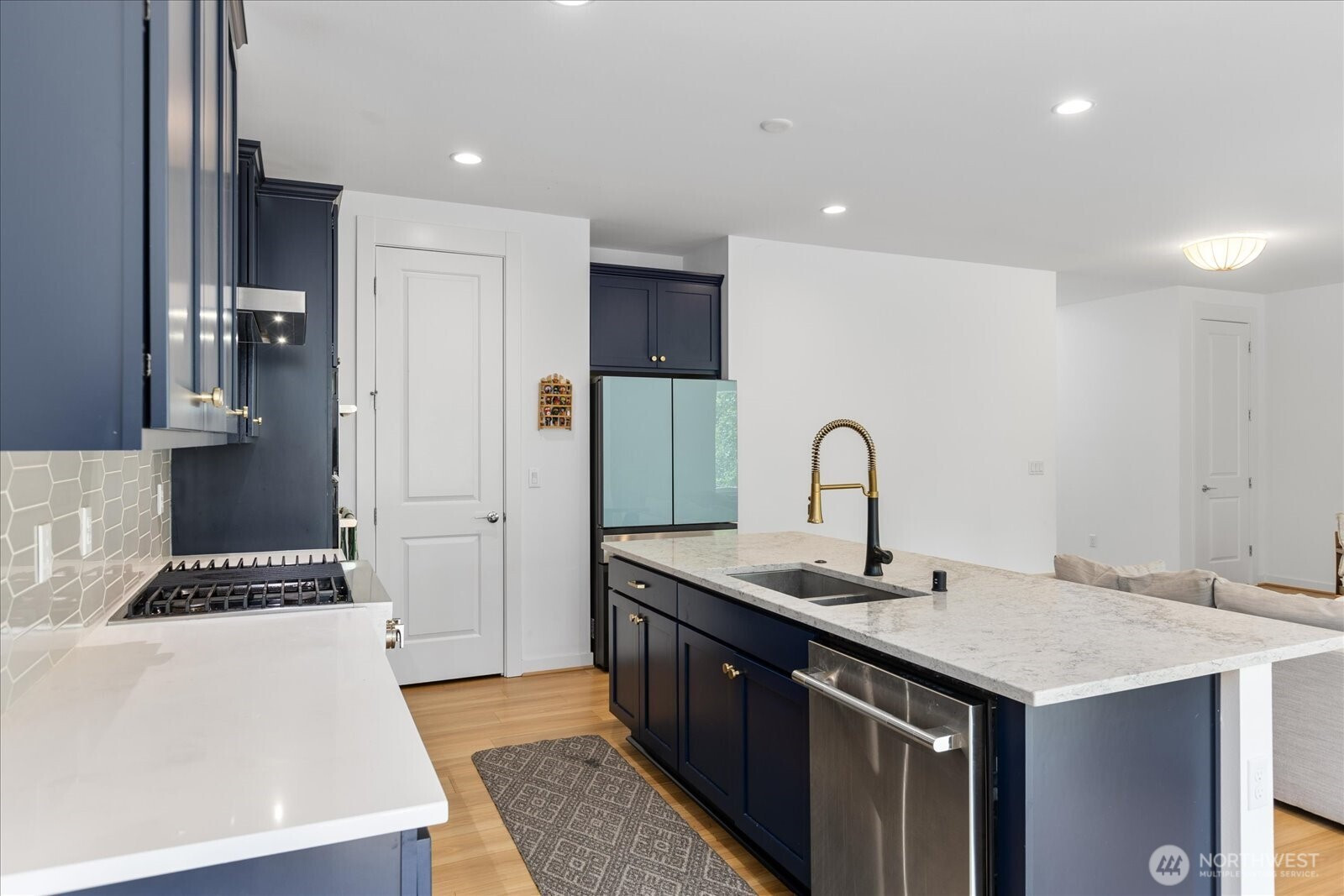 East facing Toll Brothers home packed with upgrades! Luxury, style & space meet here! Spacious layout offers 4 beds/3 baths, den & main-floor guest suite with 3/4 bath. Open & airy with extra tall doors & ceilings. Gourmet kitchen boasts high-end stainless appliances, gas range, huge island, quartz counters, upgraded soft close cabinetry & walk-in pantry, a chef's dream! Great room & dining area open directly to backyard. The covered patio is perfect for entertaining or relaxing, offering year round enjoyment! Luxurious primary suite boasts massive walk-in closet & spa-inspired bath with rain shower. Low maintenance yard, AC, CAT 6 wiring, and tons of storage! EV charging & wifi opener in the 2 car garage. Community amenities include a play space and visitor parking, low HOA dues. A quick commute to Boeing! Close to Costco, shopping, dining and commuter routes. Lake Stevens School District. Come experience all that Lake Stevens has to offer! Quality & design, this home checks all the boxes! Move in ready!