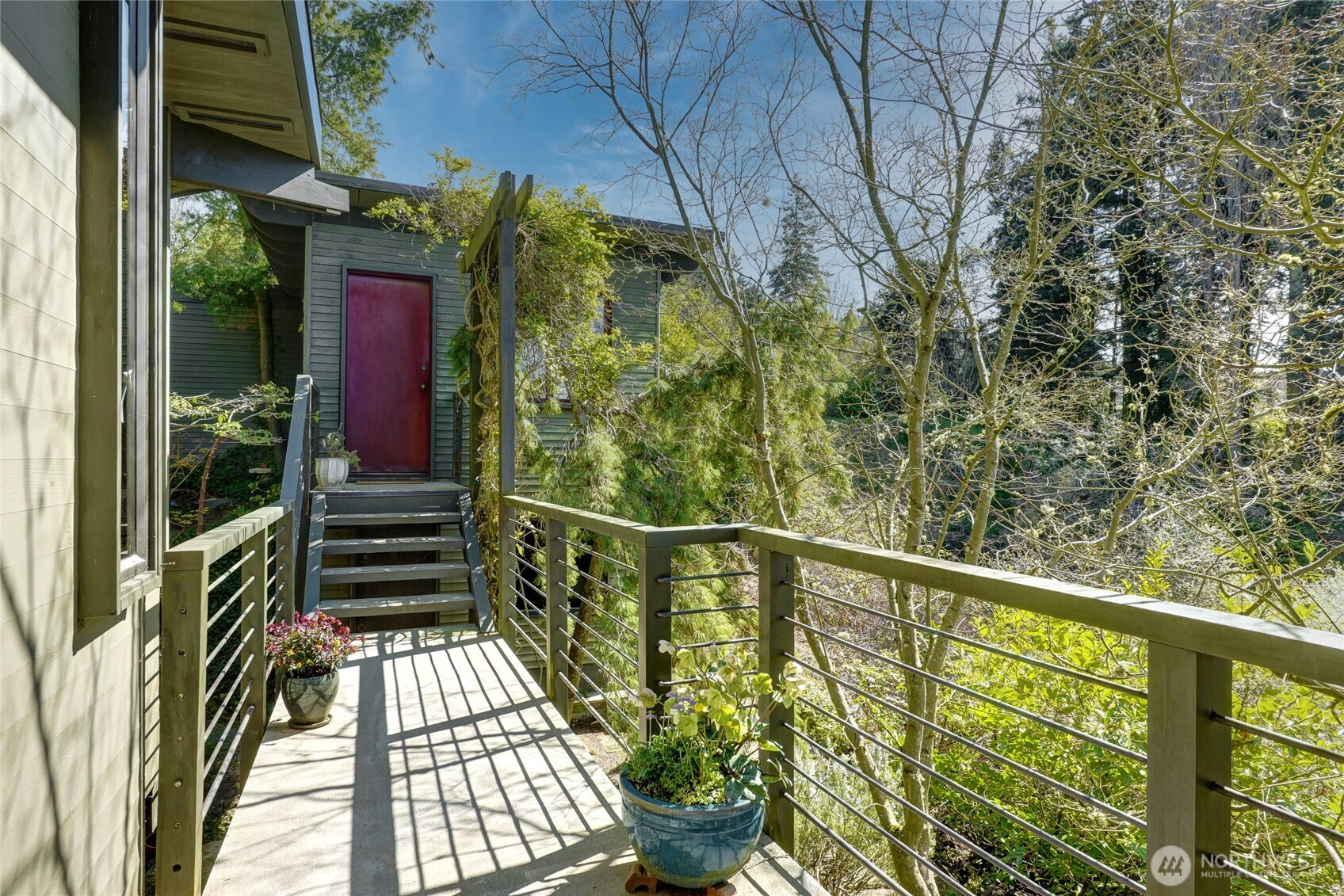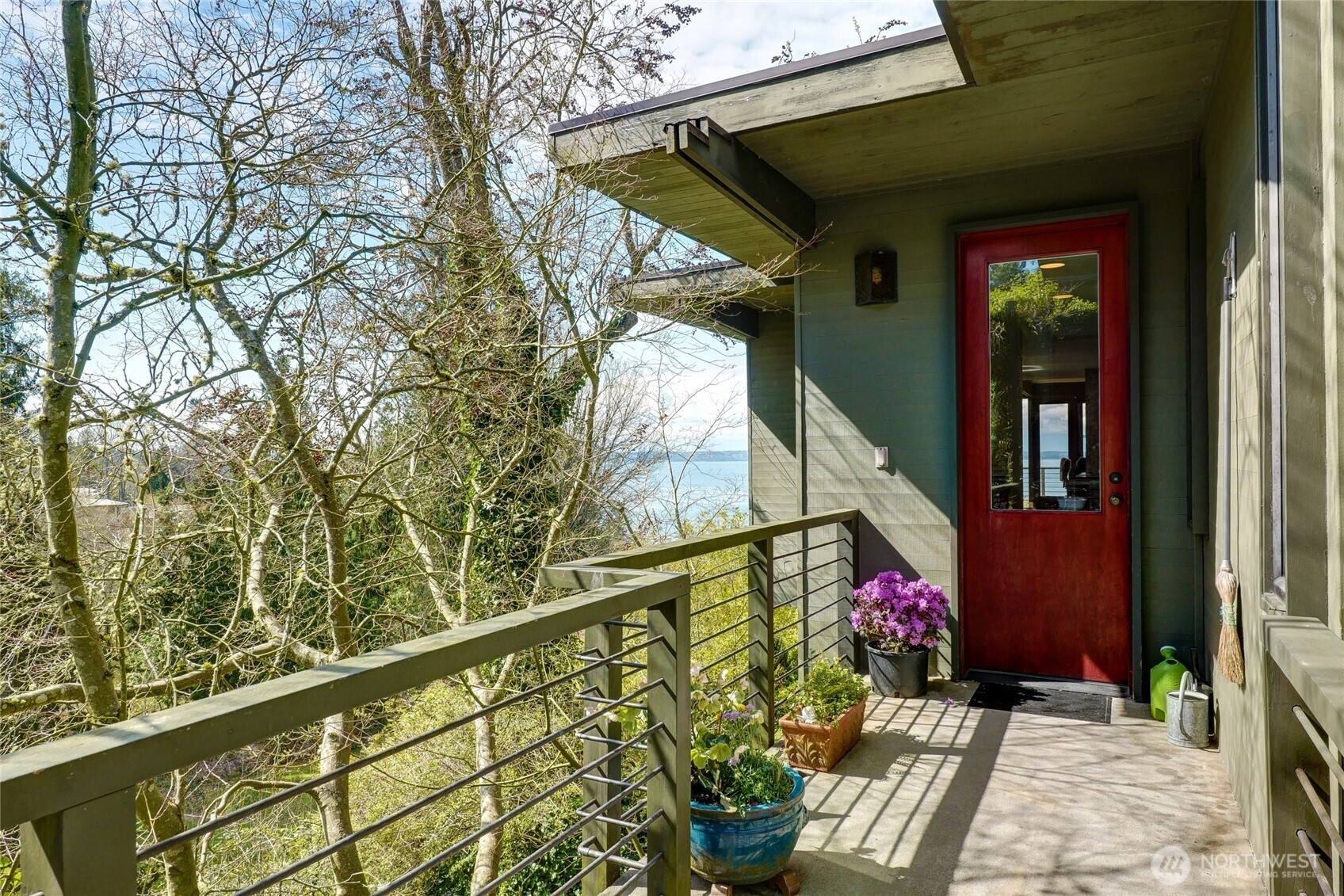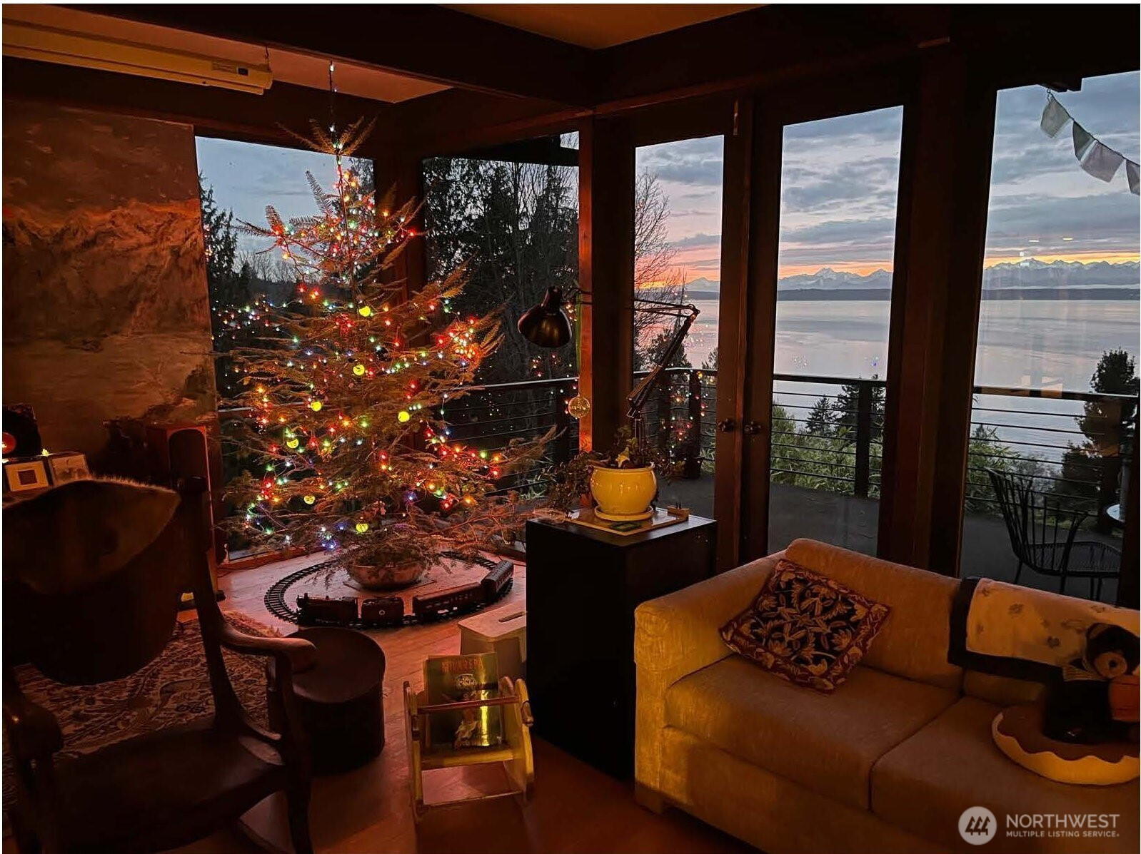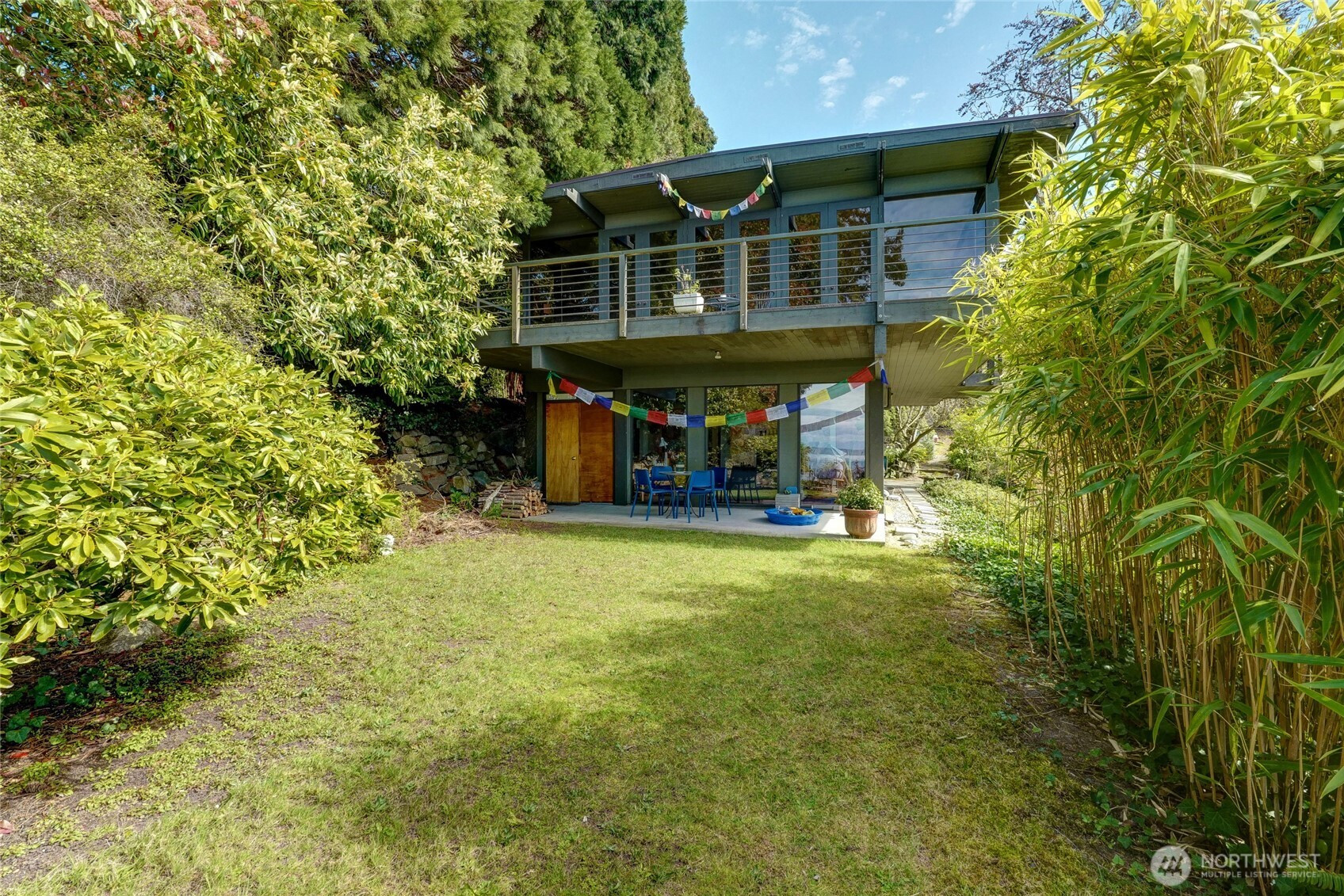 Greenness is a private four lot residential park ~ 20 miles north of Seattle on Puget Sound’s coast. It’s centrally located and when traffic’s light ~ 30 minutes to downtowns Seattle, Bellevue, or Everett. Lot I is Greenness’ most favored and includes the top, west, and south slopes of its own coastal promontory rising up from a vibrant wildlife refuge stretching along the steep coastal bluff with unobstructed solar access and spectacular panoramic views of the Olympic Mountains and Peninsula, Whidbey Island, and Admiralty Inlet. Its house was conceived, designed, and largely built in 1962 by Grace LaRose, a very brave, artistic, and determined woman. Like many other Northwest artists, architects, and design thinkers, Grace was drawn to the time’s most contemporary international design style from Germany and Japan with its more open, functional, flexible, and minimalistic floor plans and expansive view windows interconnecting interior and exterior spaces that became so popular throughout the world. Perfectly aligning and recessing the house’s steel reinforced concrete daylight basement into the site’s slopes, Grace provided unobstructed solar access to heat the earth sheltered thermal mass below. With an advanced custom fireplace and 4’ overhangs to block summer’s sun, it could be the Northwest’s first resource conserving earth sheltered passively solar heated house. Since purchasing the estate 31 years ago, the owners have made several improvements and have plans for more.