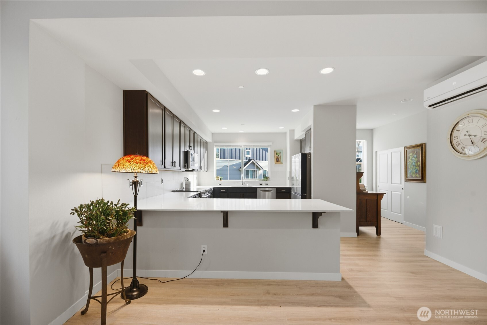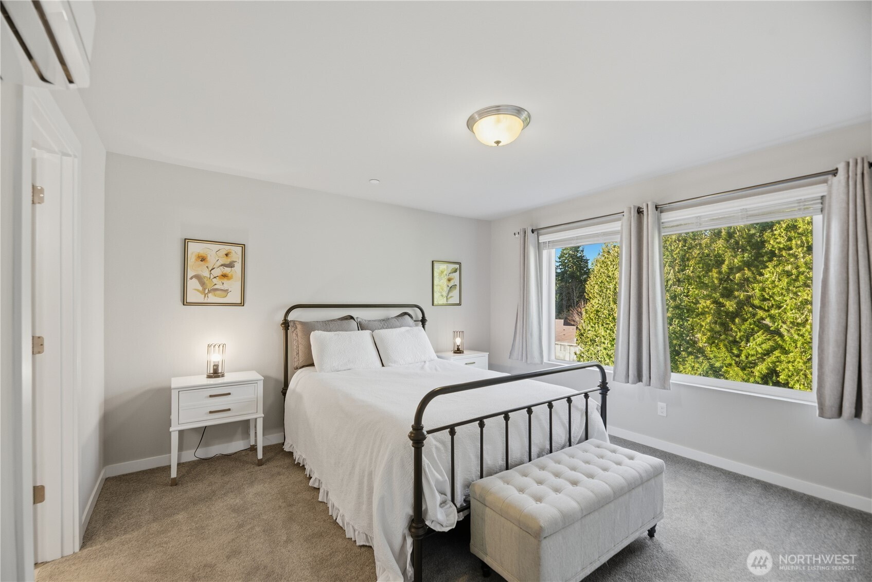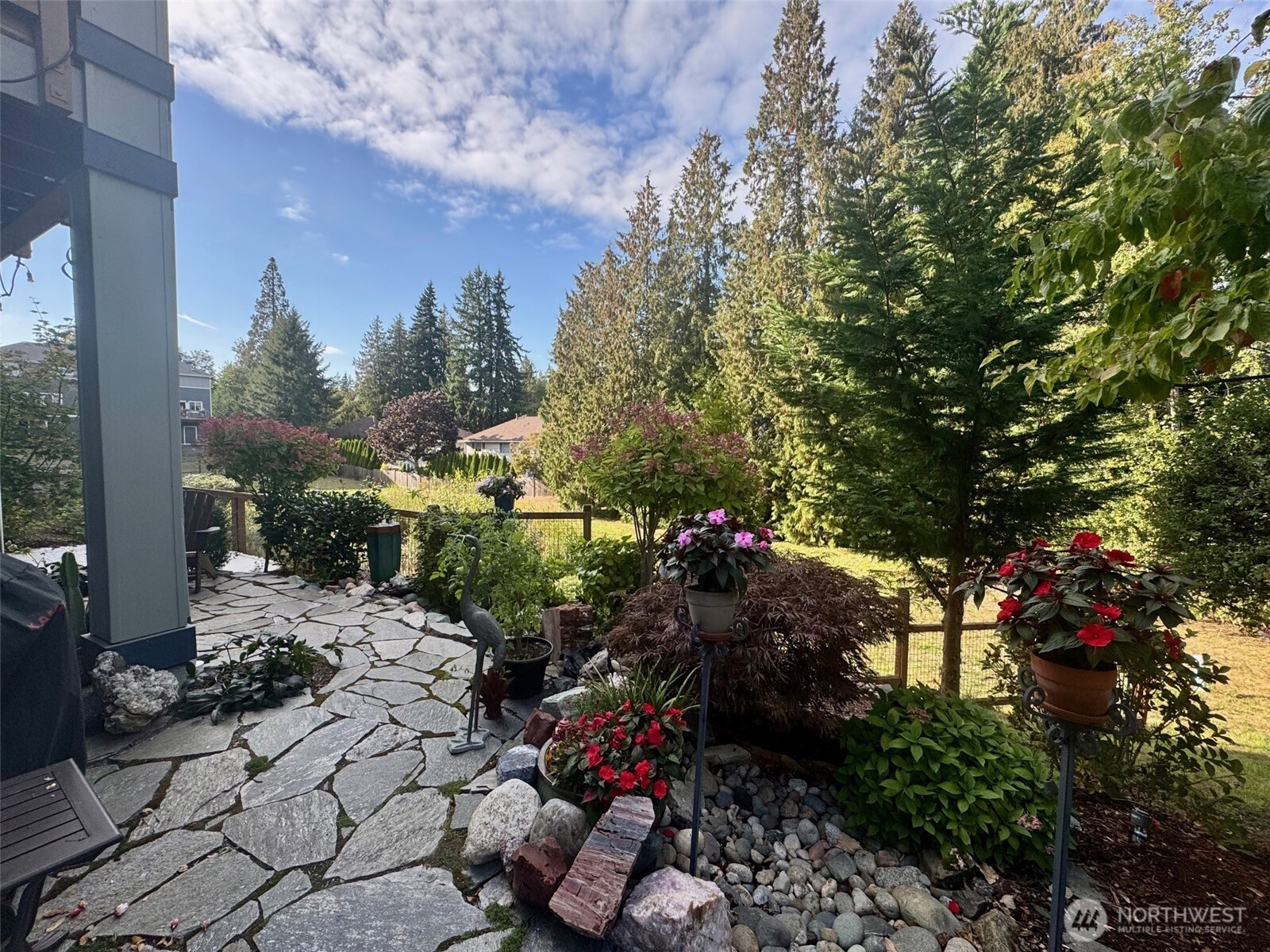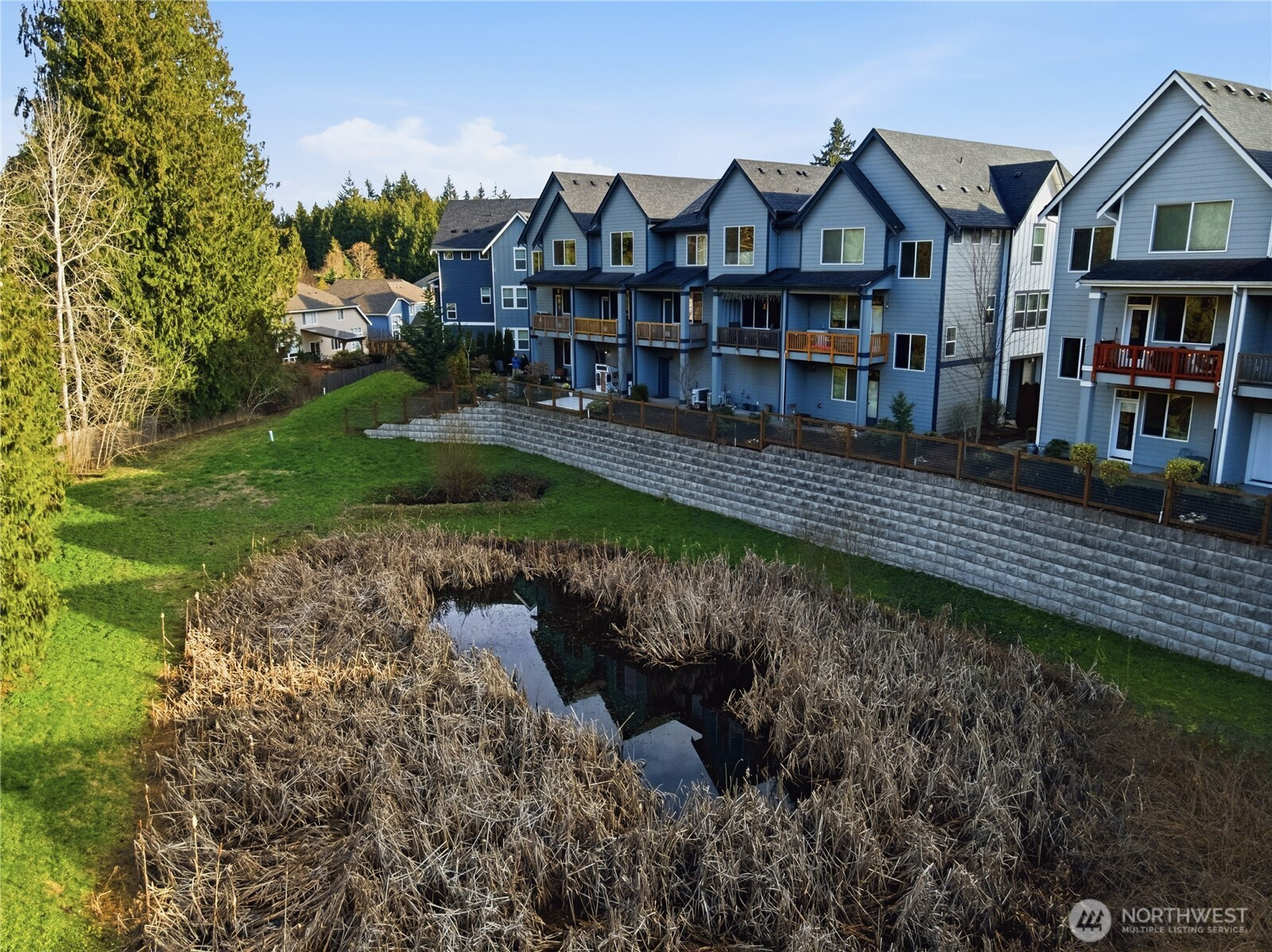 Discover one of the most desirable and rarely available floorplans in the Ponds community. This sun-filled corner residence offers 4 bedrooms, 3.25 baths, and 2,539 sq ft of beautifully updated living space—combining flexibility, function, and thoughtful upgrades throughout. Fresh interior paint, brand-new Shaw carpet with premium pad, and durable luxury vinyl plank flooring create a crisp, modern feel. The entry level features a private bedroom with custom Murphy bed, and full bath — ideal for guests, multi-generational living, or a dedicated office setup. Main living level is designed for both comfort and entertaining. Open-concept kitchen features newer appliances, quartz countertops, induction cooktop, pantry, and an oversized island that flows seamlessly into the dining area and spacious great room. Abundant windows frame peaceful greenspace views and fill the home with natural light. Primary suite offers a serene retreat, Elfa closet systems maximize organization, and spacious bathroom. Outdoor living truly sets this home apart. Enjoy a stunning side and backyard retreat w/ custom flagstone pavers, curated plantings, and tranquil greenspace views — a rare and private setting within the community. Over 70k in seller upgrades! Additional features: Oversized 2-car garage w/ EV charger, Large-capacity hot water tank, No rental cap Located just moments from scenic trails, the pond, and less than a mile to Mill Creek Town Center with convenient access to I-5 and I-405.
