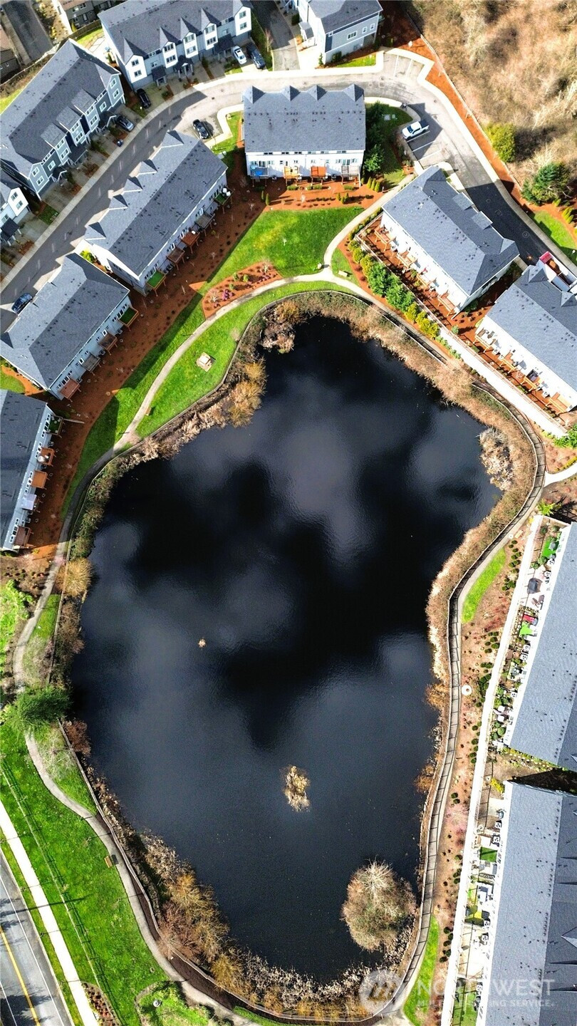 Welcome to The Ponds — a peaceful, beautifully maintained community where modern comfort meets everyday convenience. This immaculate, like-new residence offers 2 bedrooms, 2.5 baths, and 1,413 square feet of thoughtfully designed living space, plus a private deck with sweeping water view! Step inside to a bright, open main floor built for both daily living and effortless entertaining. The chef’s kitchen truly shines with stainless steel appliances, a generous pantry, premium quartz countertops, and an oversized island with seating — the perfect hub for gathering. Expansive windows flood the living area with natural light, while year-round central A/C ensures comfort in every season. Upstairs, both spacious bedrooms feature their own full bathrooms, offering privacy and flexibility ideal for guests, roommates, or a home office setup. An energy-efficient washer and dryer are conveniently located on the same level. The oversized 2-car garage provides exceptional storage and workspace potential, plus an additional patio area for outdoor enjoyment. Enjoy immediate access to nearby nature trails and parks, while remaining minutes from vibrant town centers, major commuter routes, and transit options. Not a condo. No rental cap.