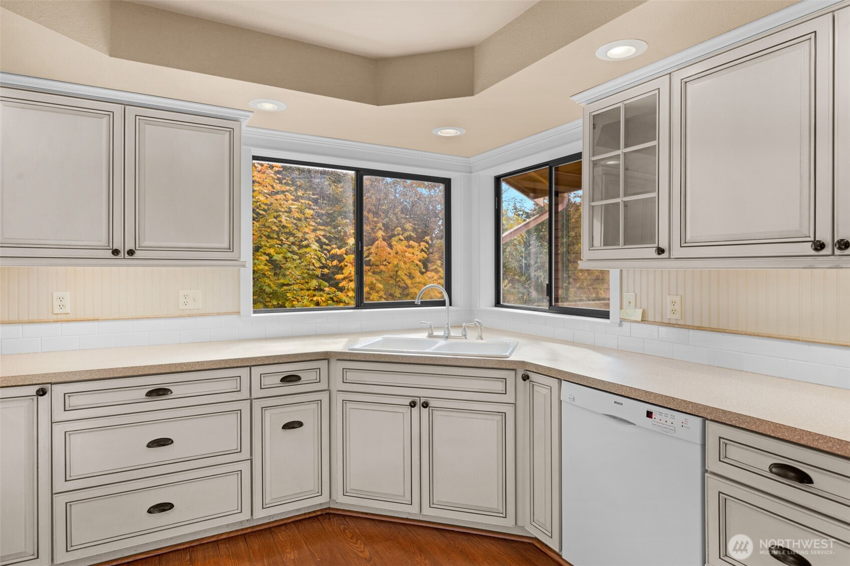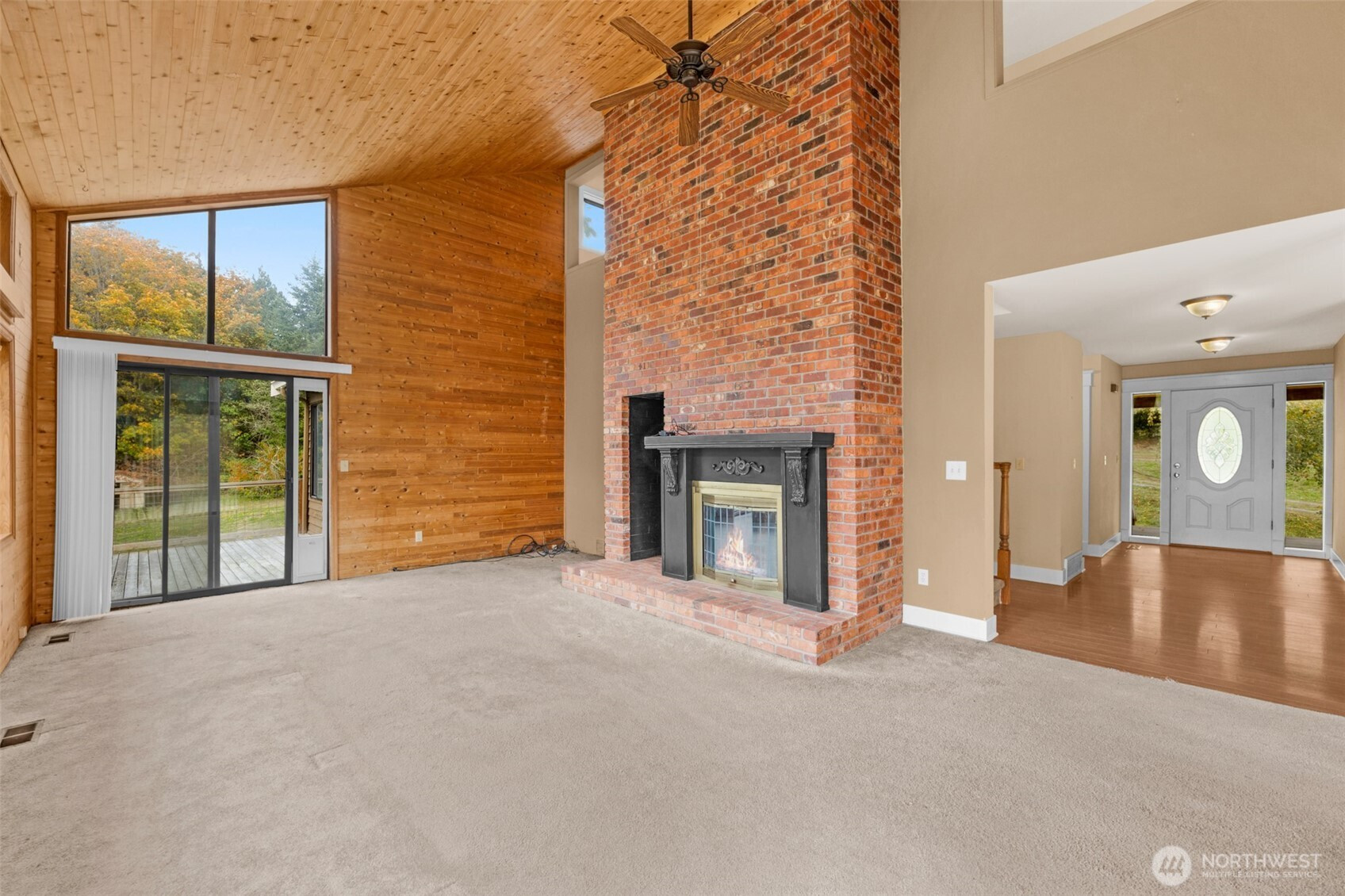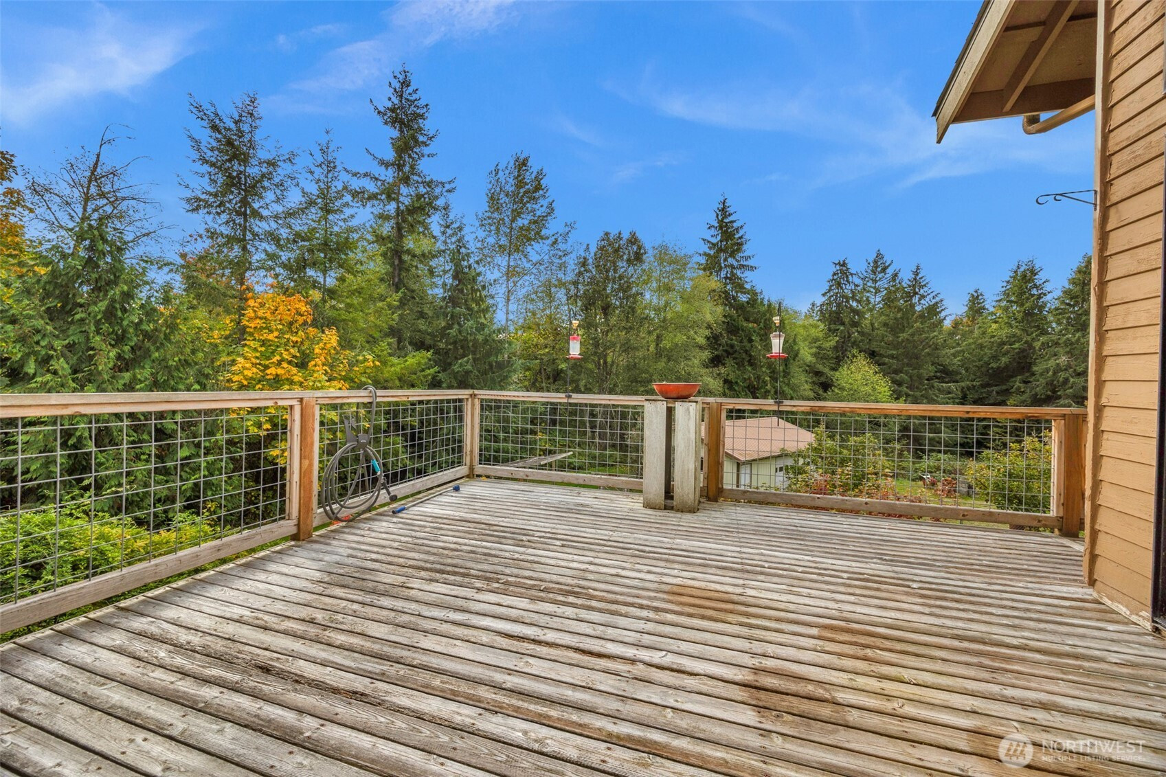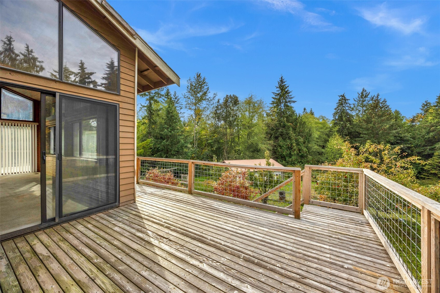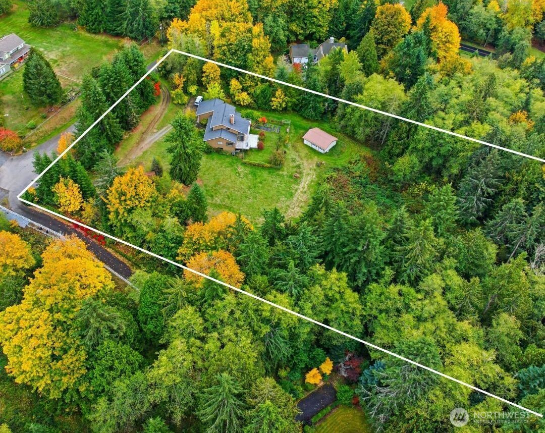 Peaceful living on just shy of 5 private acres in prestigious Kayak Estates. This 4000 sqft home offers 4-beds, 4 baths multiple living areas and great room with soaring ceilings and walls of windows that fill the space with natural light. Updated Kitchen offers plenty of storage, custom cabinetry & views of the surrounding trees. French doors open to a huge deck perfect for entertaining. Basement w/ separate entrance and kitchen offers potential for a mother-in-law suite or rental. Detached 24x30 garage, chicken coop, little barn, fruit trees, marketable timber & endless possibility for gardening, hobbies, or projects in multiple outbuildings. Just needs a little updating. Its the largest home on acreage with a detached shop on the market!